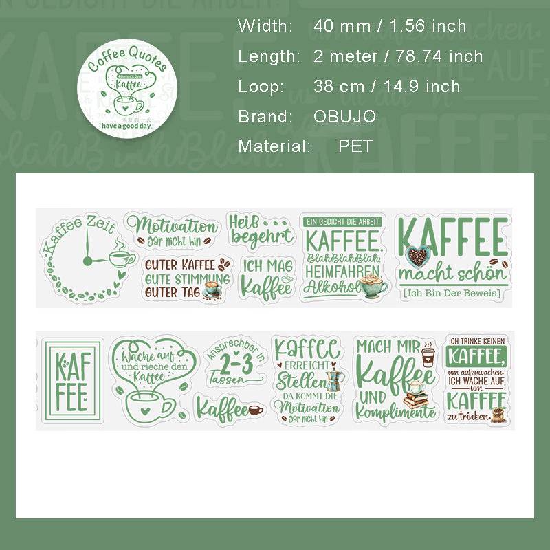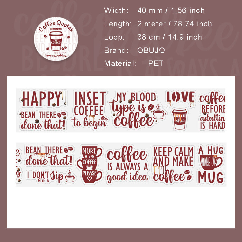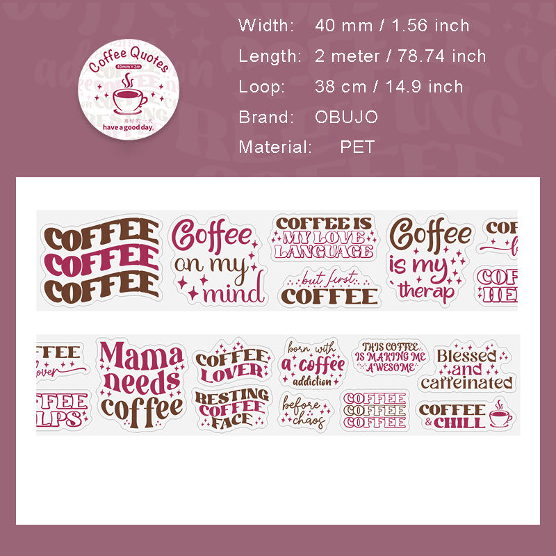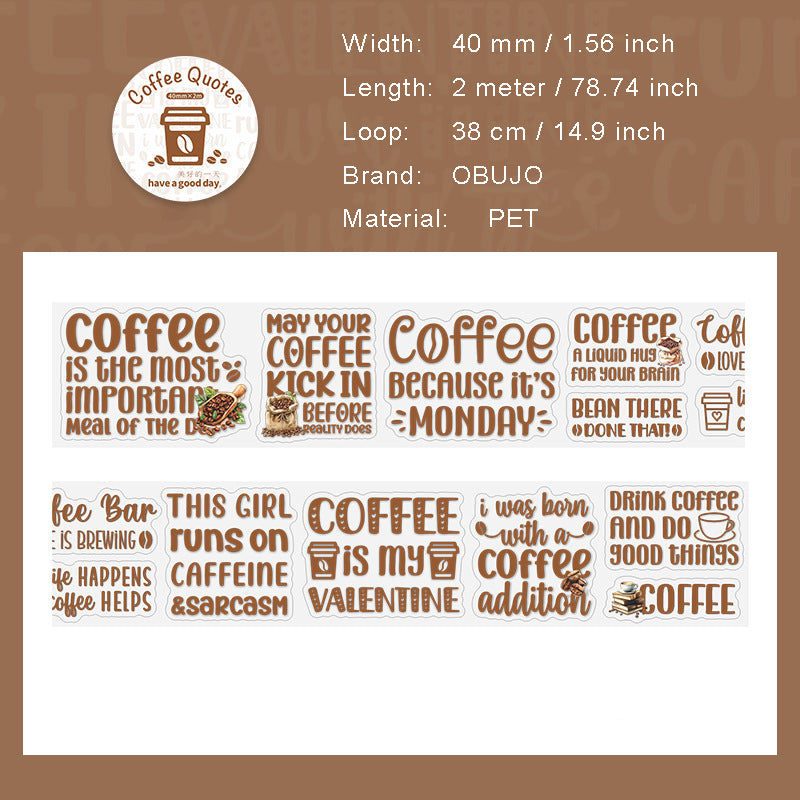 1 Roll Coffee Theme PET Stickers Tape KFYL