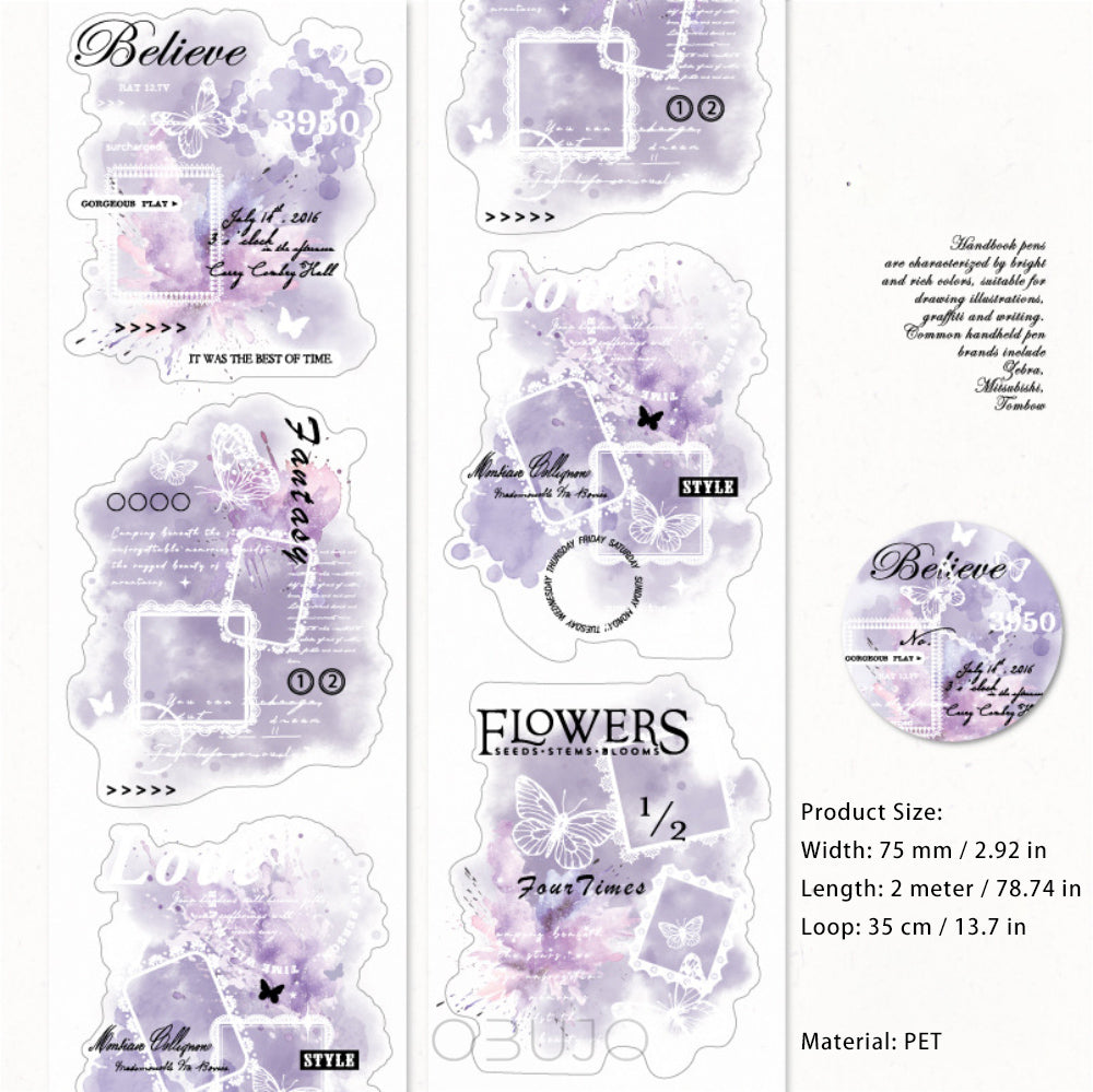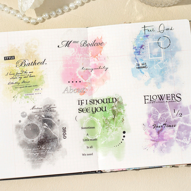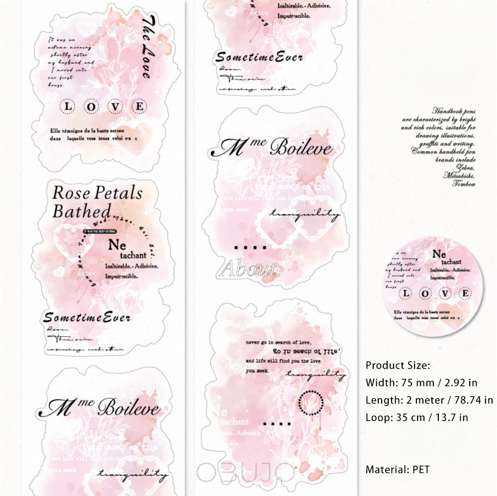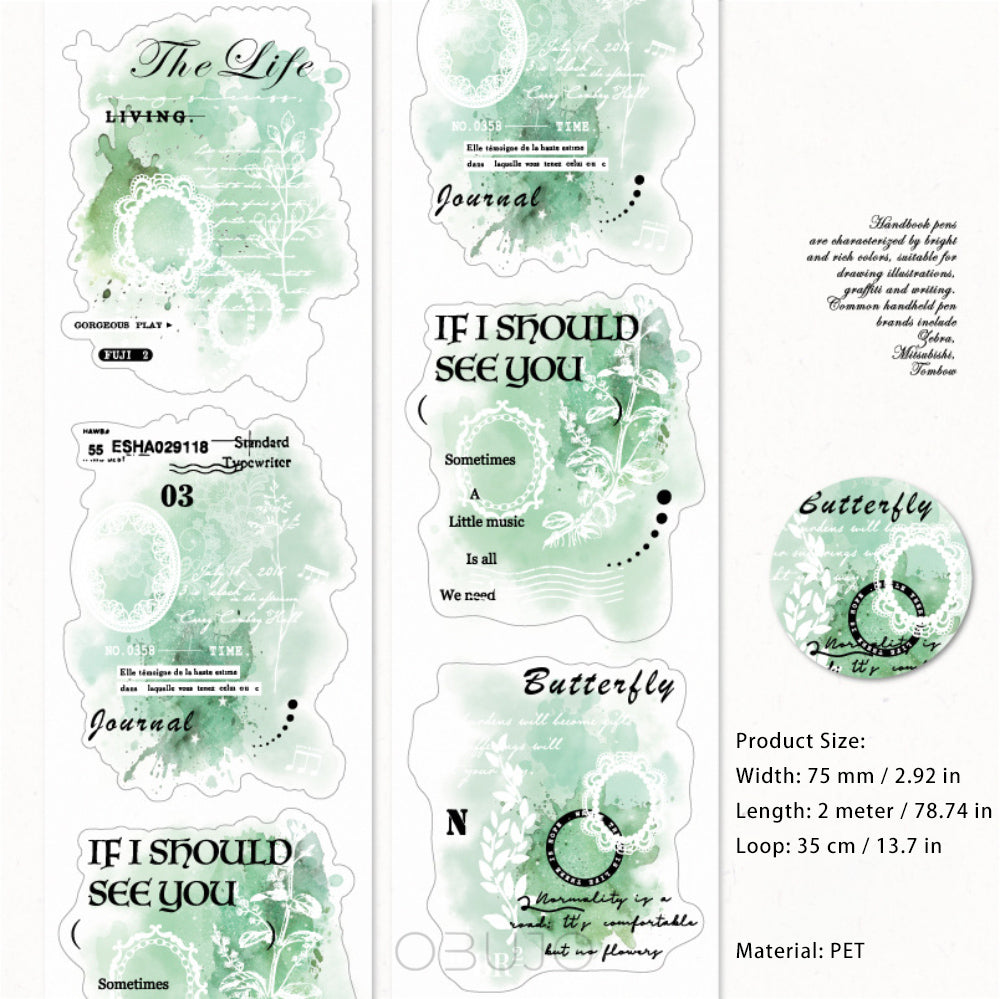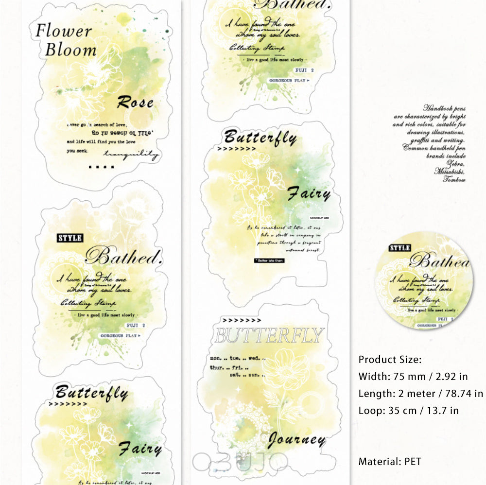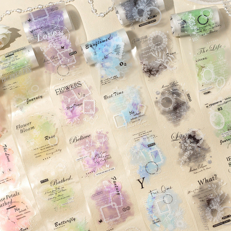 1 Roll Die-cut Watercolor PET Stickres Tape RSBLM