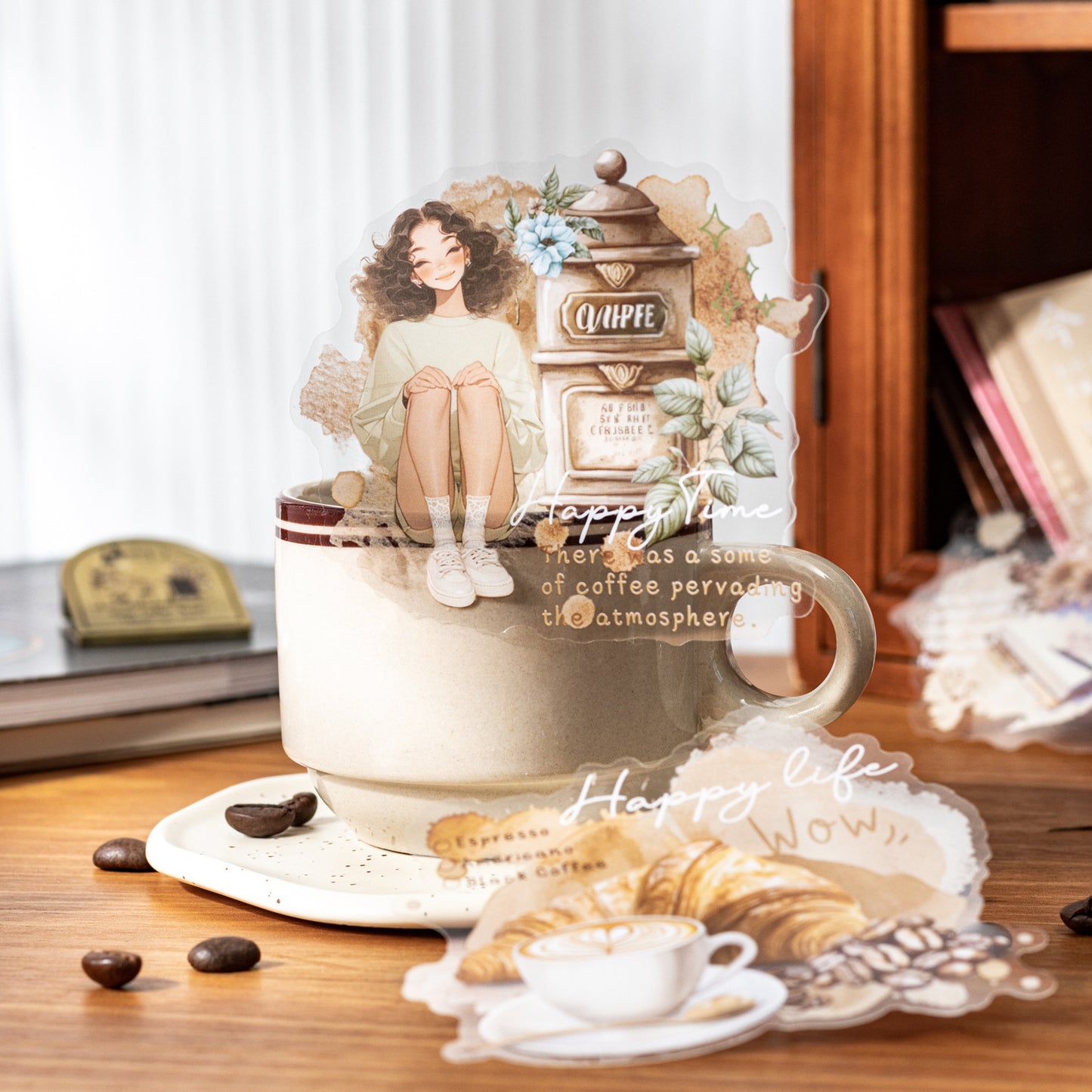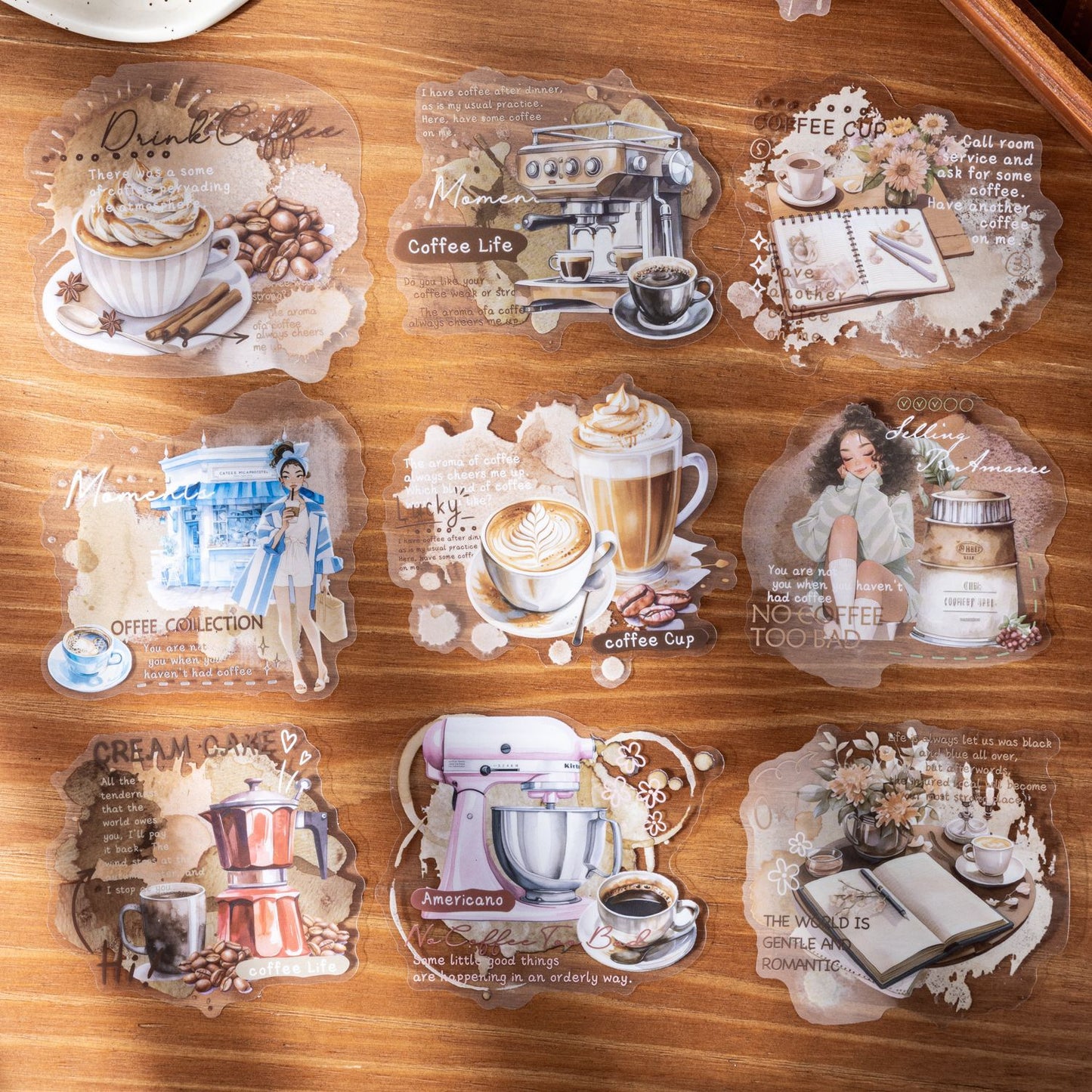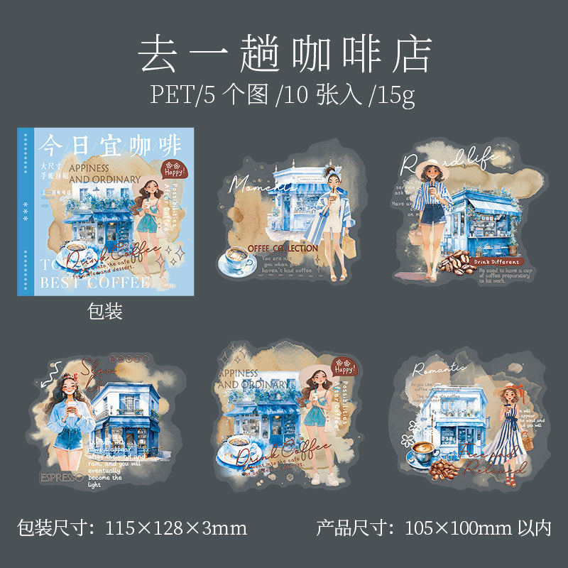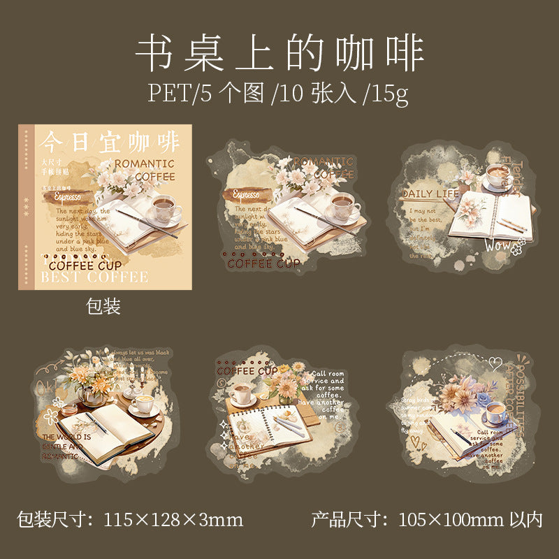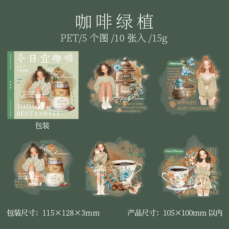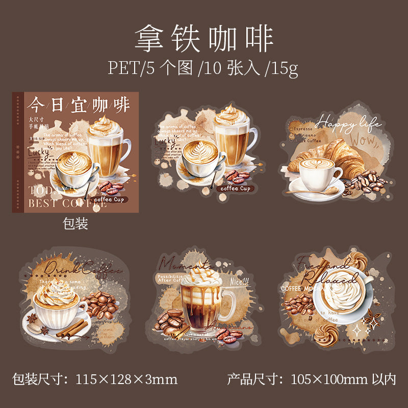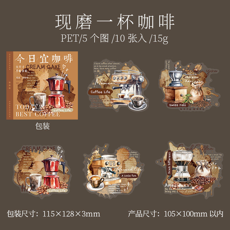 10 Pcs Coffee Themed PET Stickers JRYKF