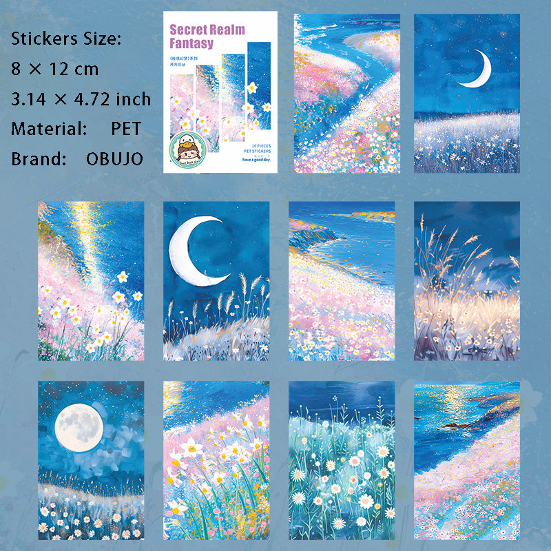 10 Pcs Fantasy Landscape PET Stickers MJHM