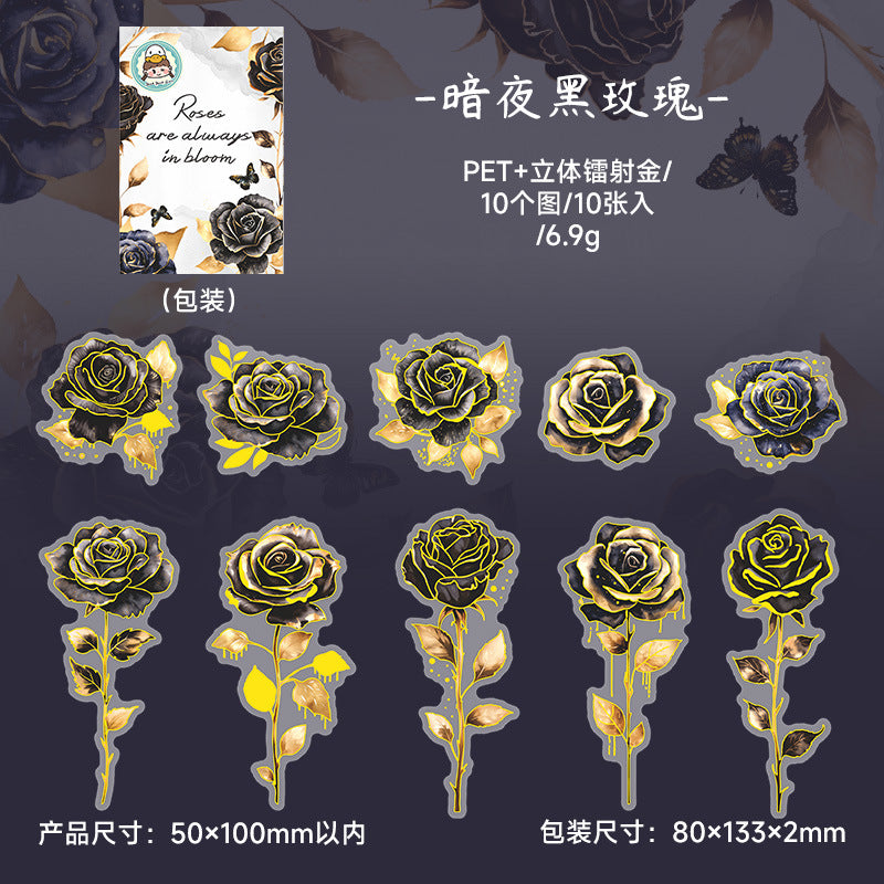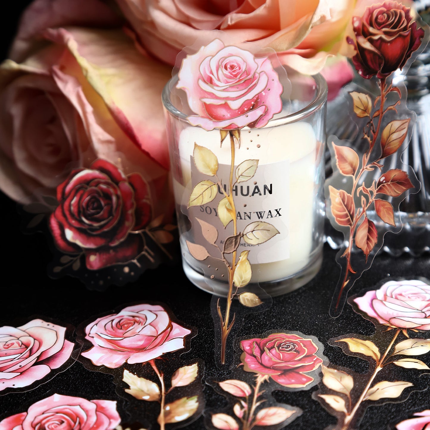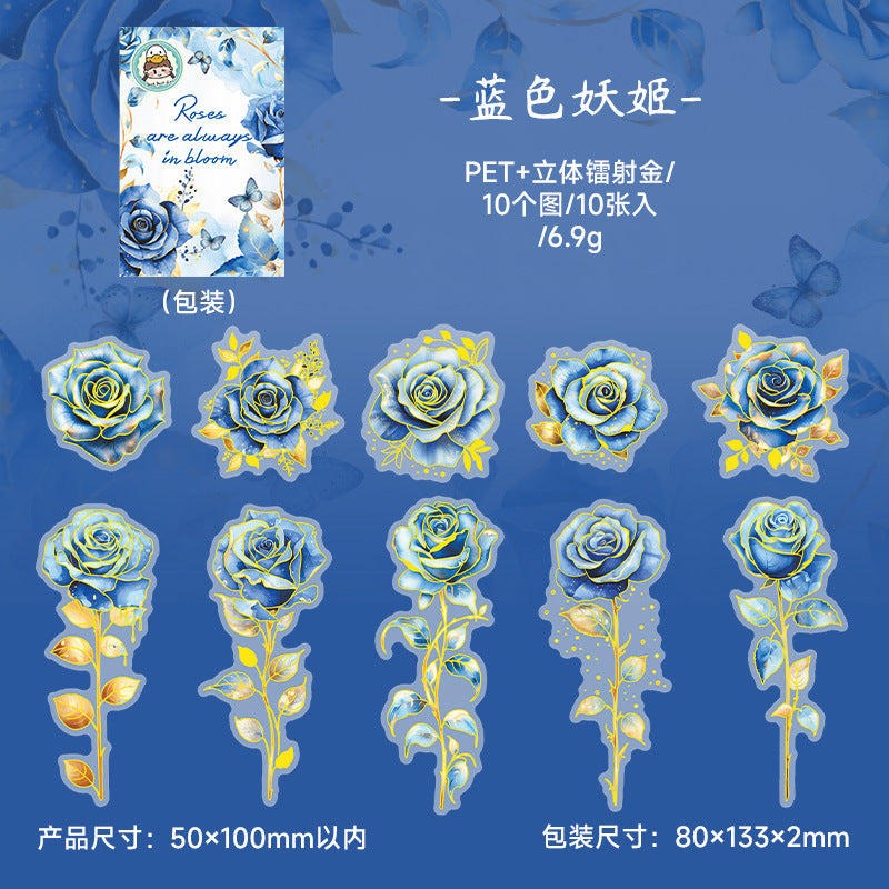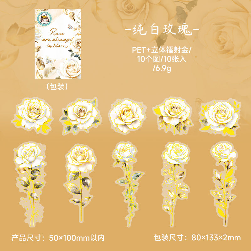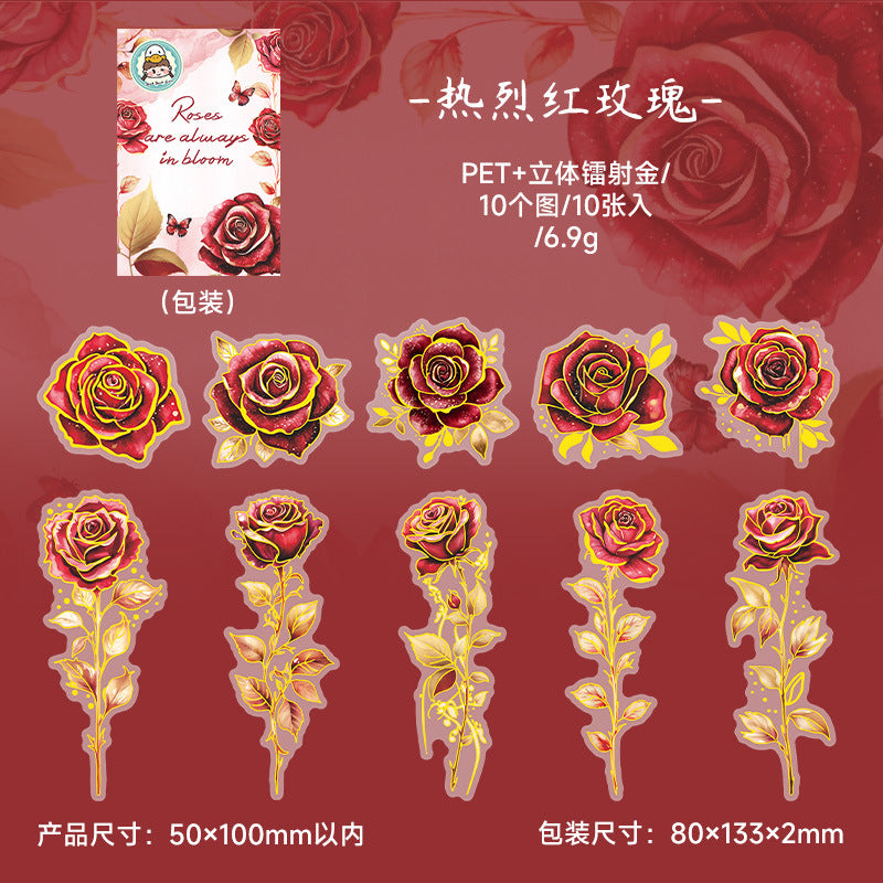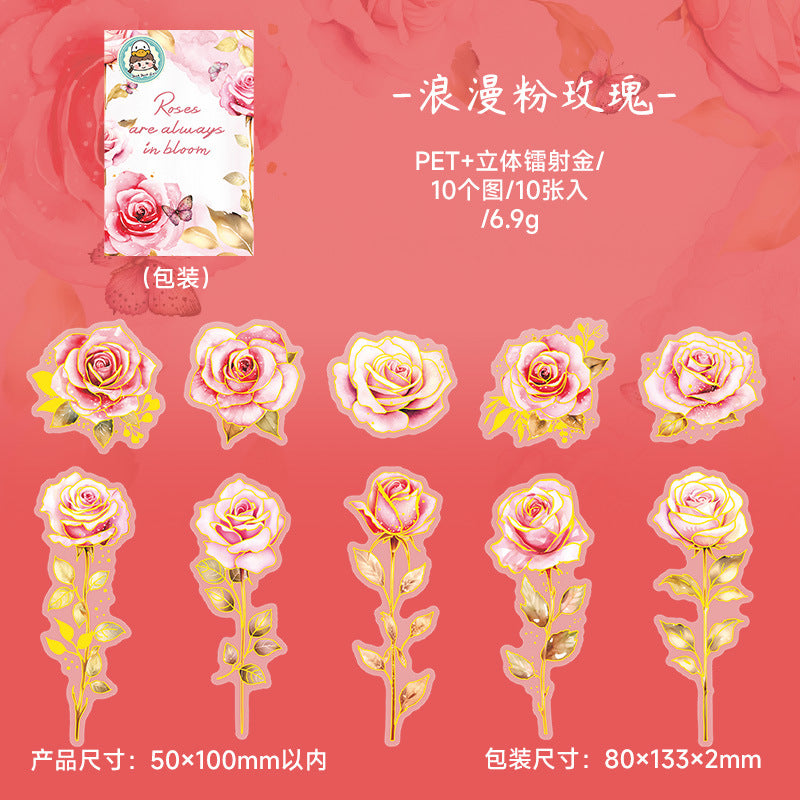 10 Pcs Glitter PET Rose Stickers MGZZHQ