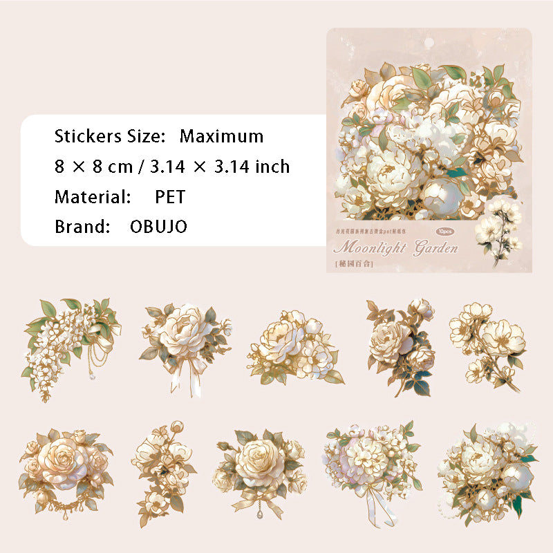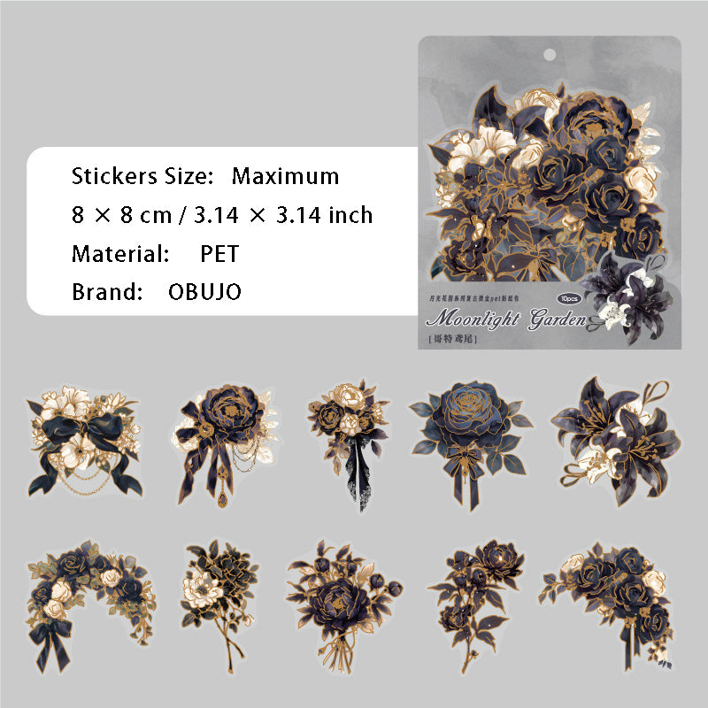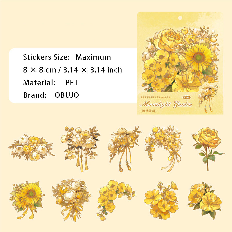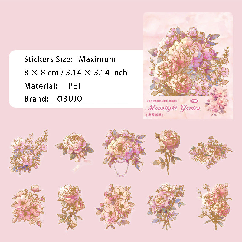 10 Pcs Gold Foil Flower PET Stickers YGHY