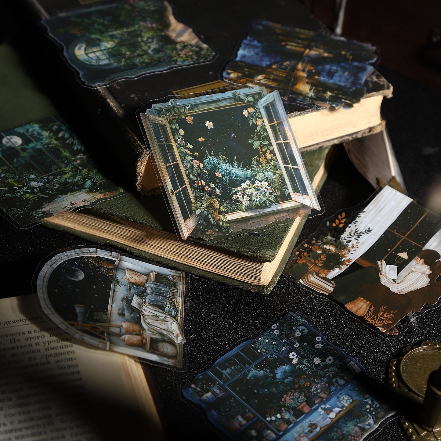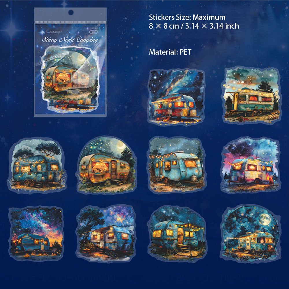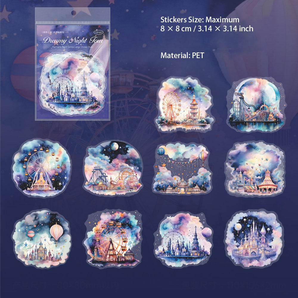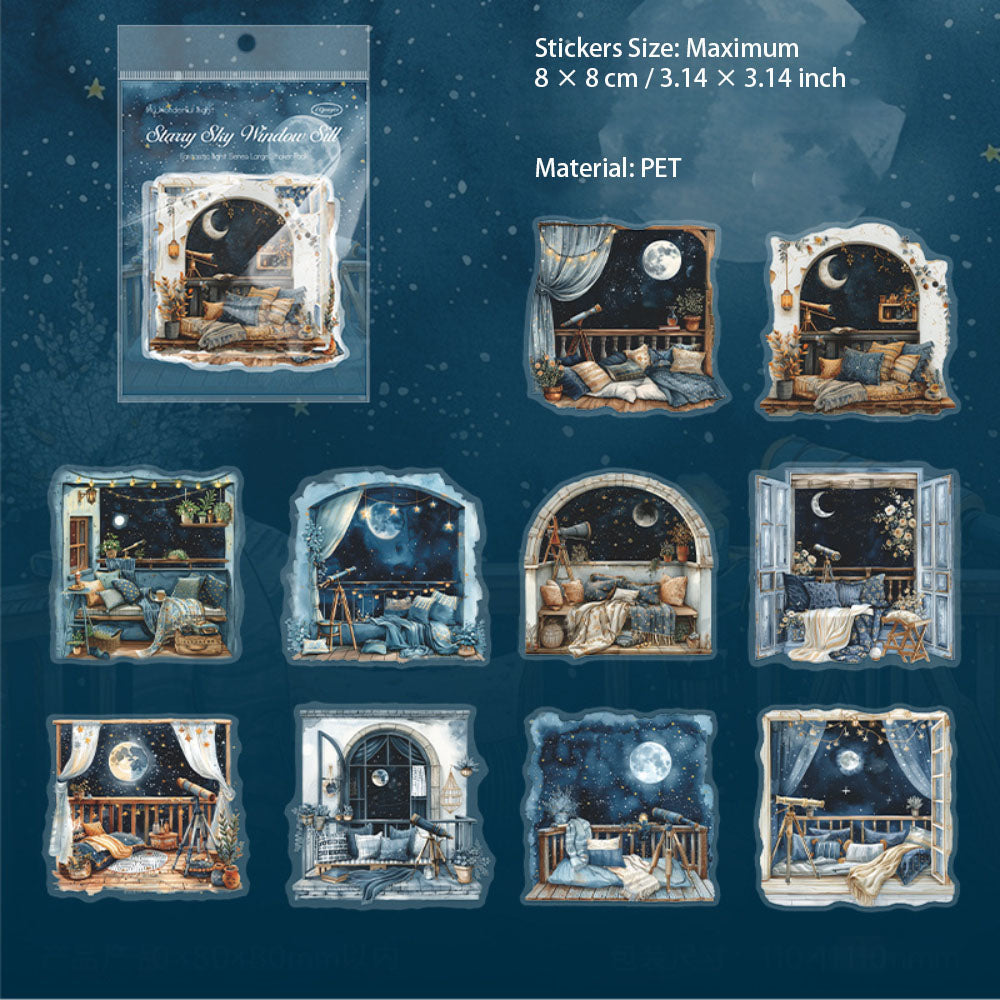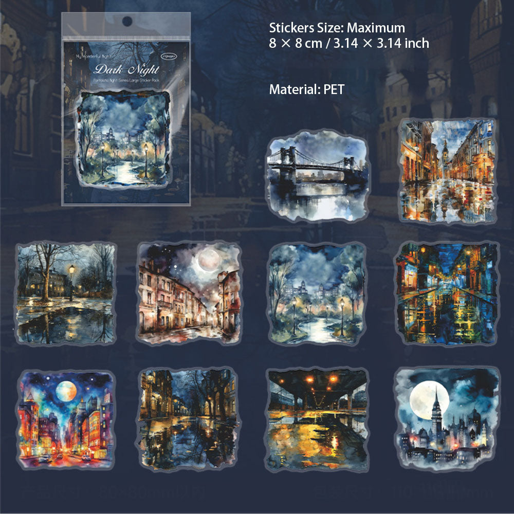 10 Pcs Night Landscape PET Stickers QMZY