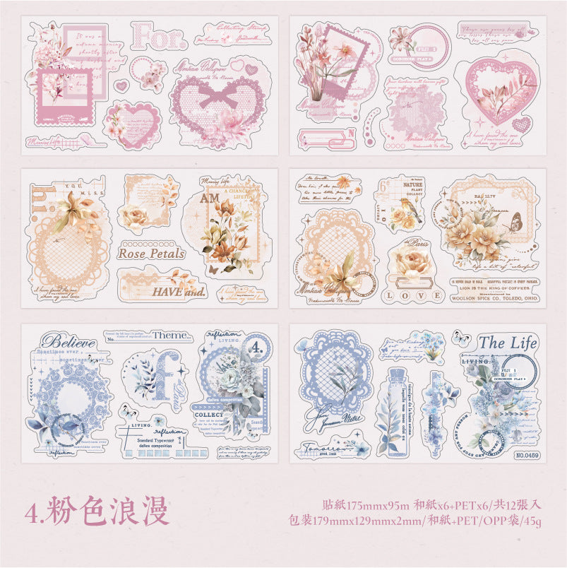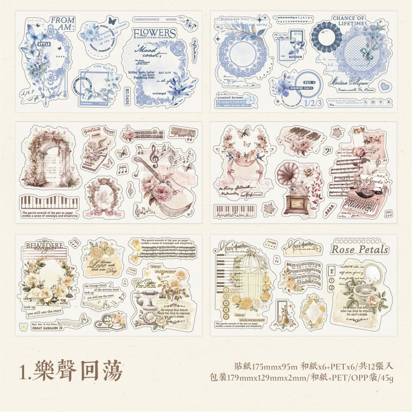 12 Sheets Die-cut Washi and PET Stickers Book XRJZQ