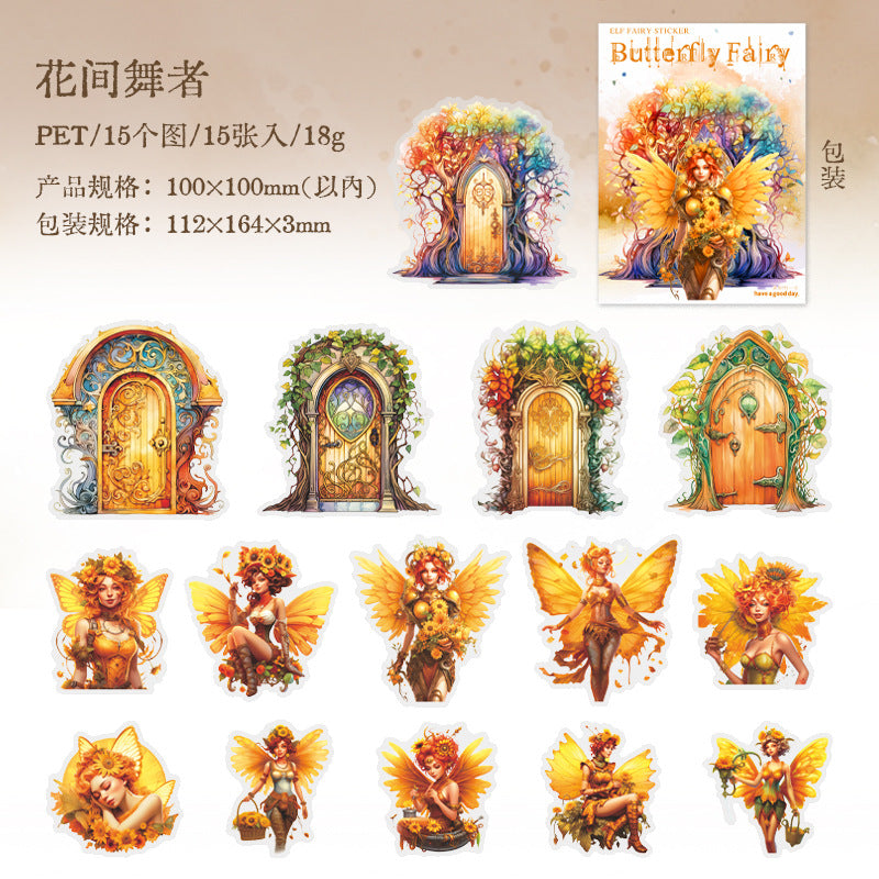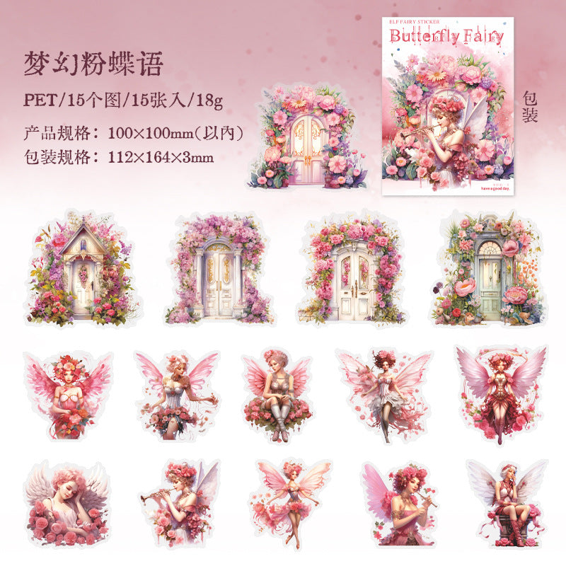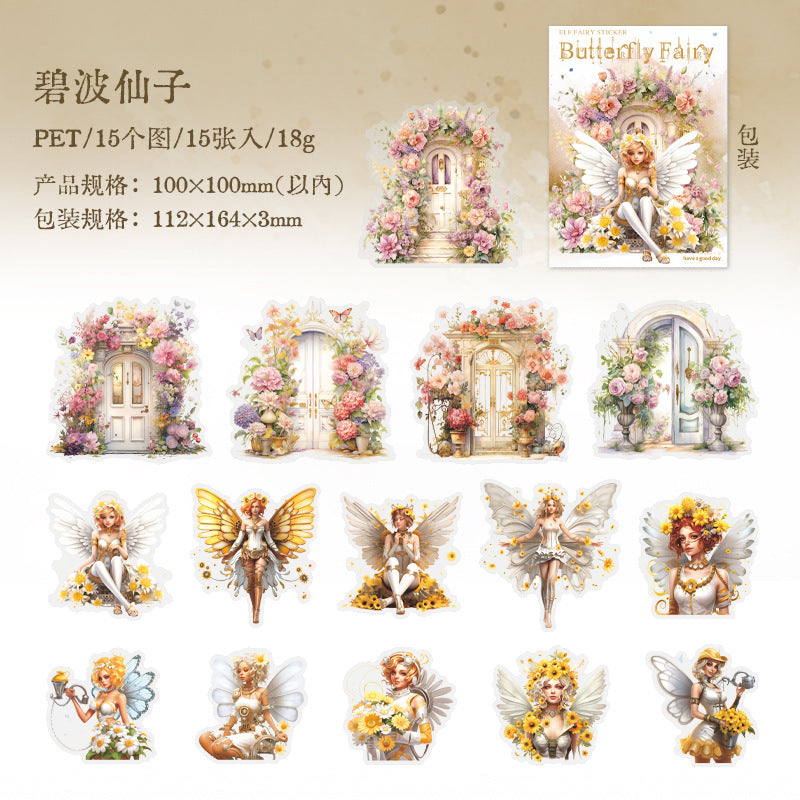 15 Pcs Butterfly Fairy PET Stickers HDXZ