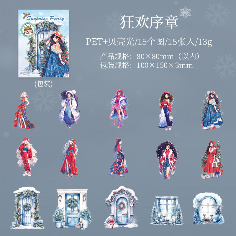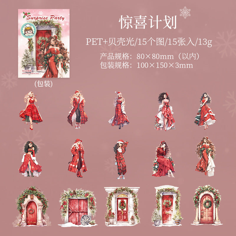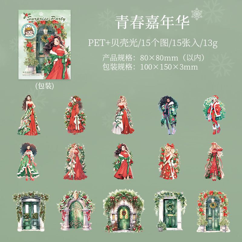 15 Pcs Christmas Party Themed PET Stickers JXPD