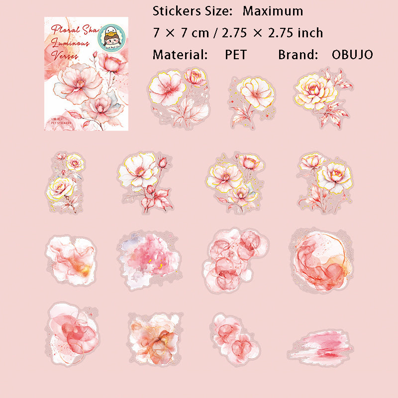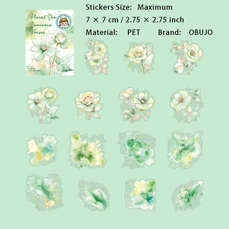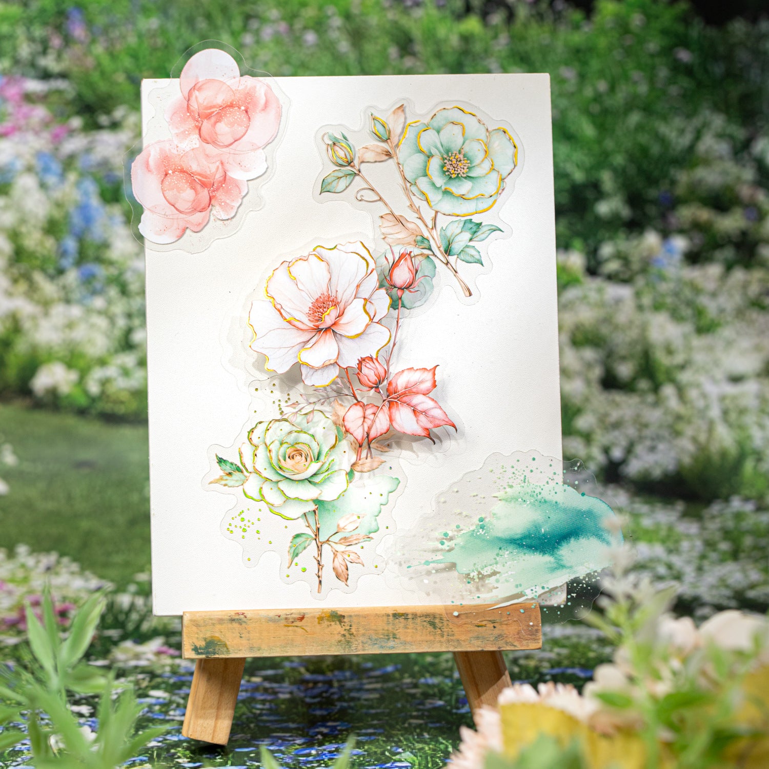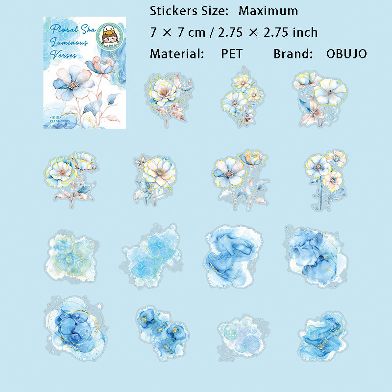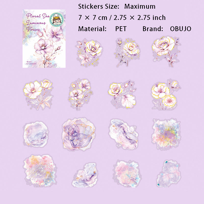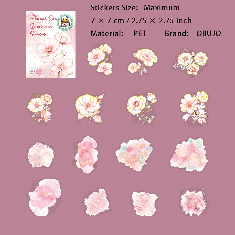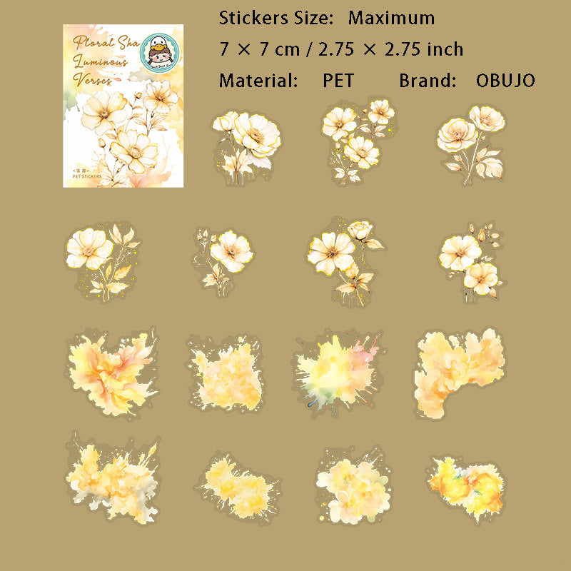 15 Pcs Glitter Watercolor Flower PET Stickers HYHZ