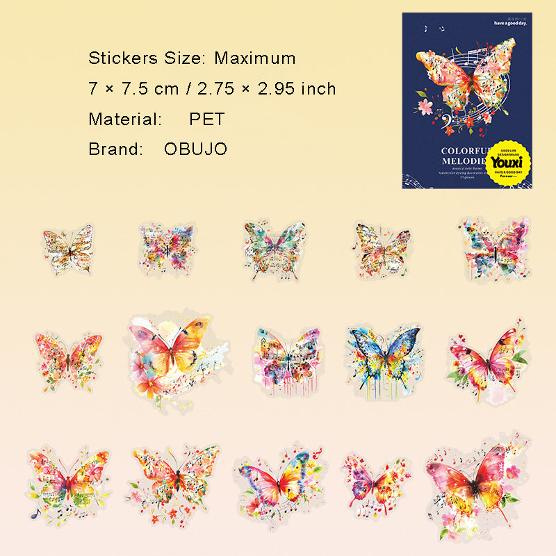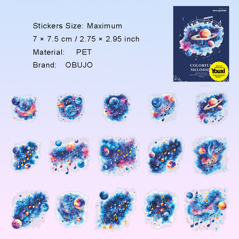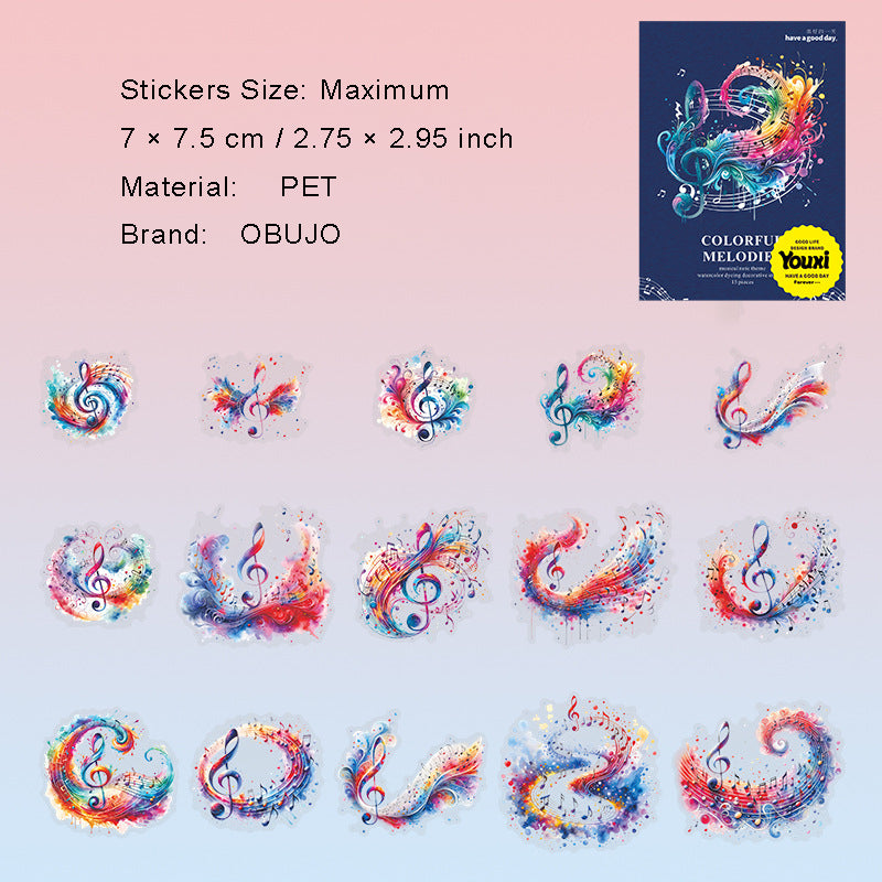 15 Pcs Watercolor Musical Notes PET Stickers CSXL