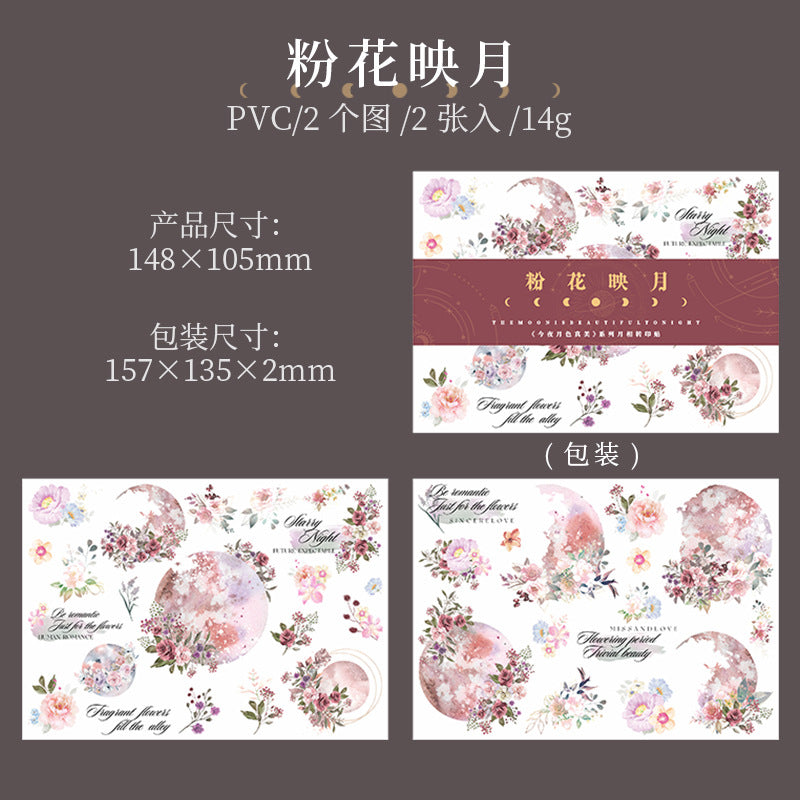 2 Sheets Moon and Flower Transfer Stickers YSZM