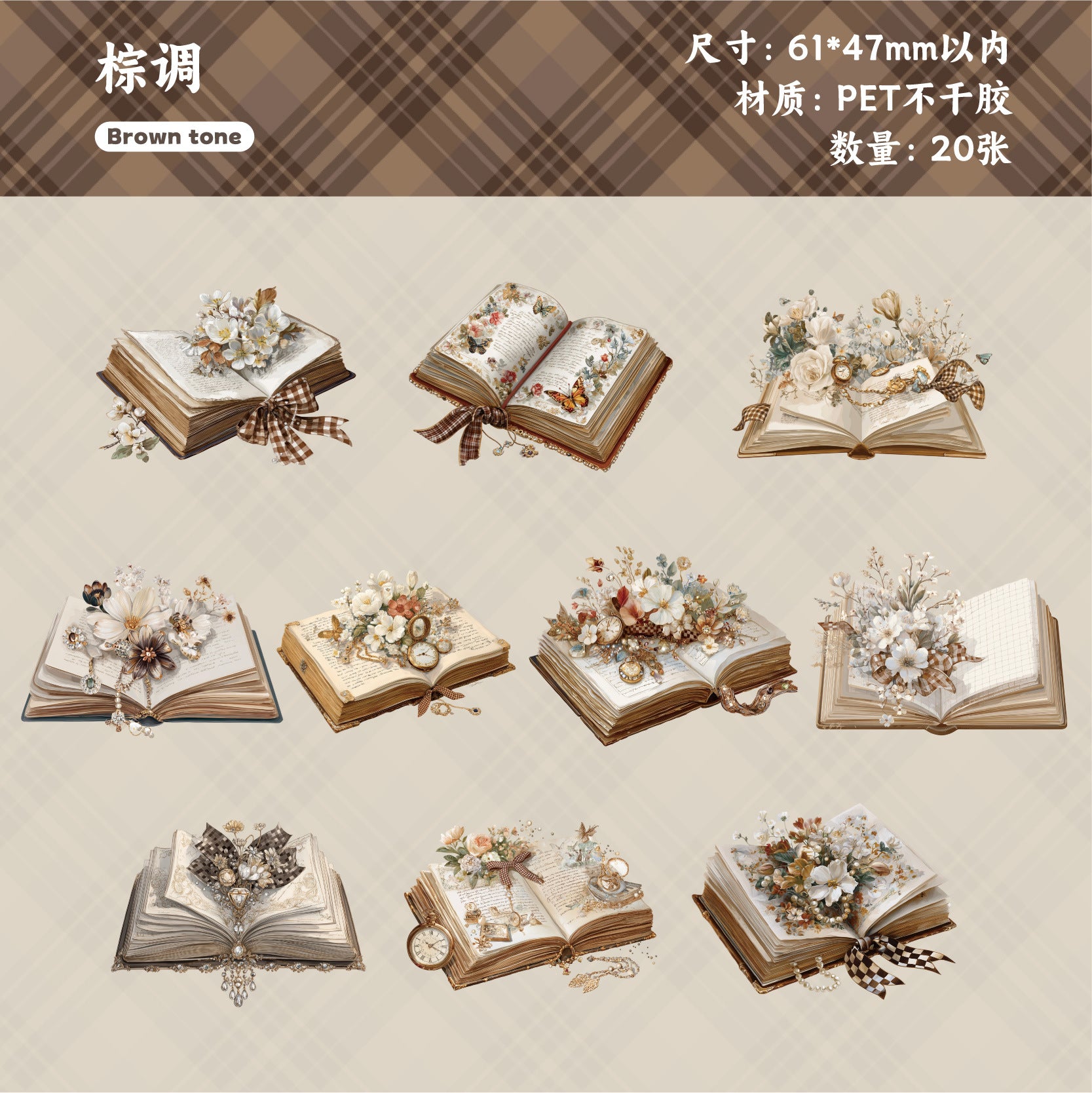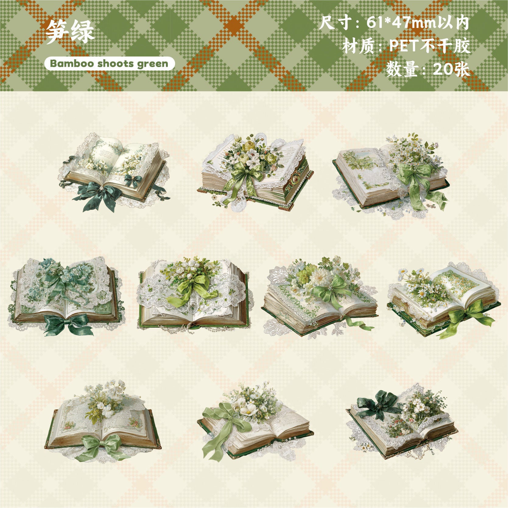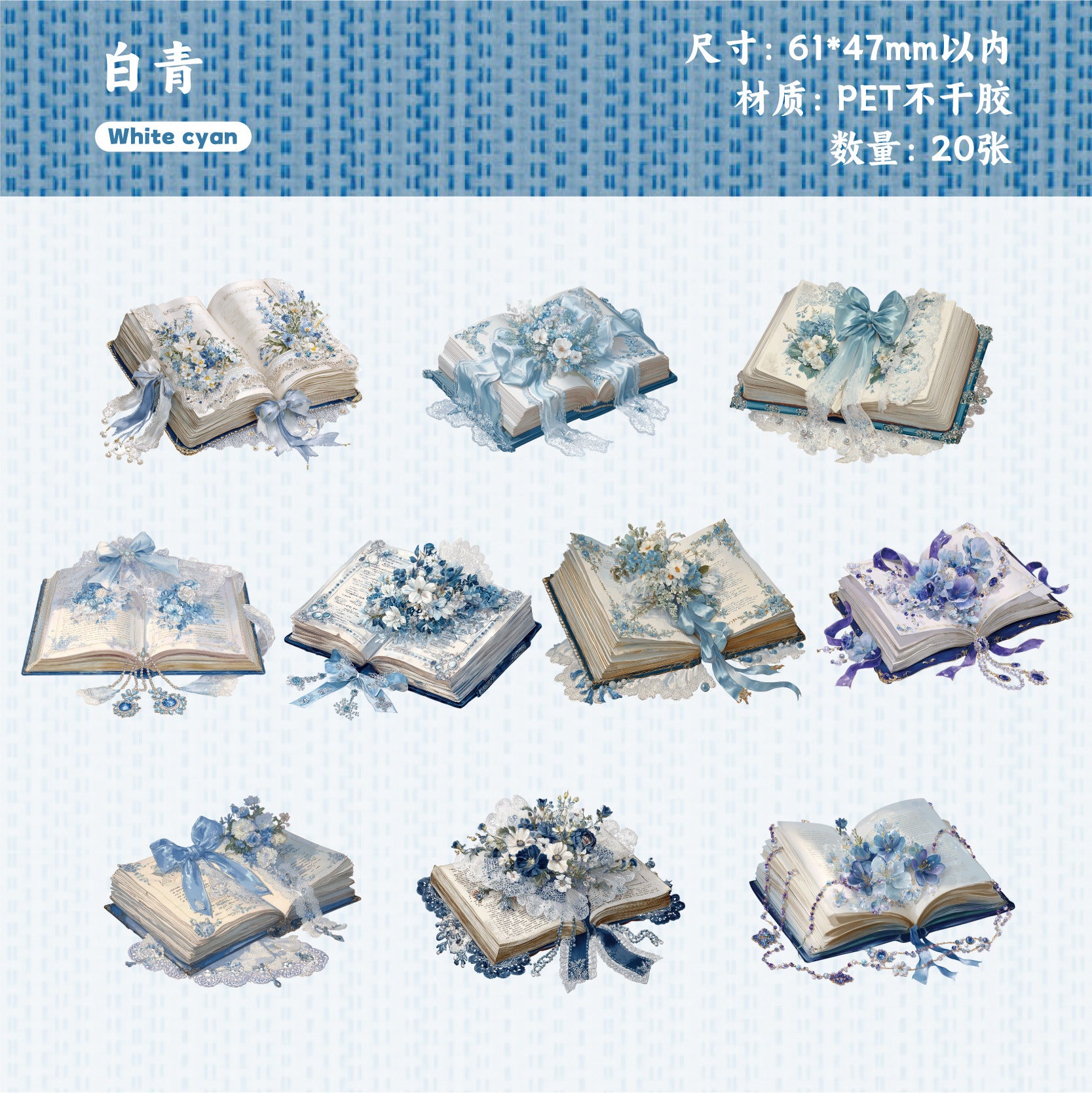 20 Pcs Book Reading PET Stickers SXXL