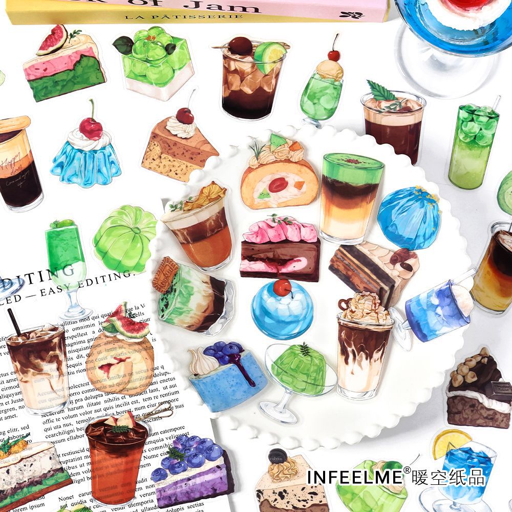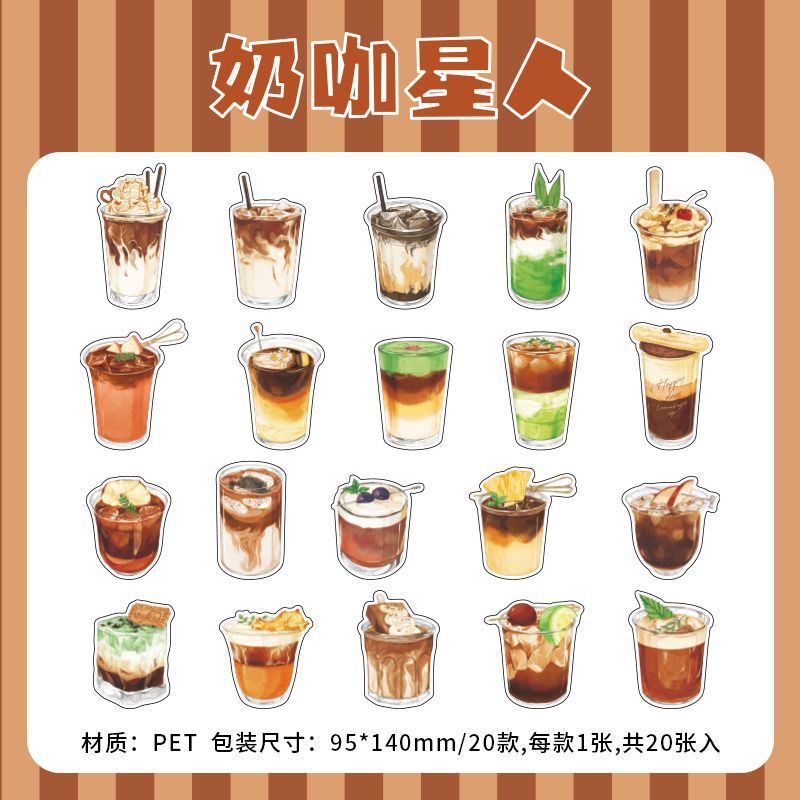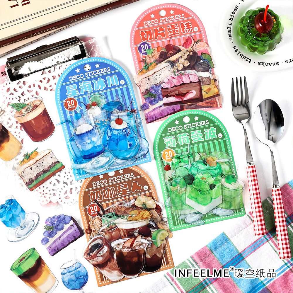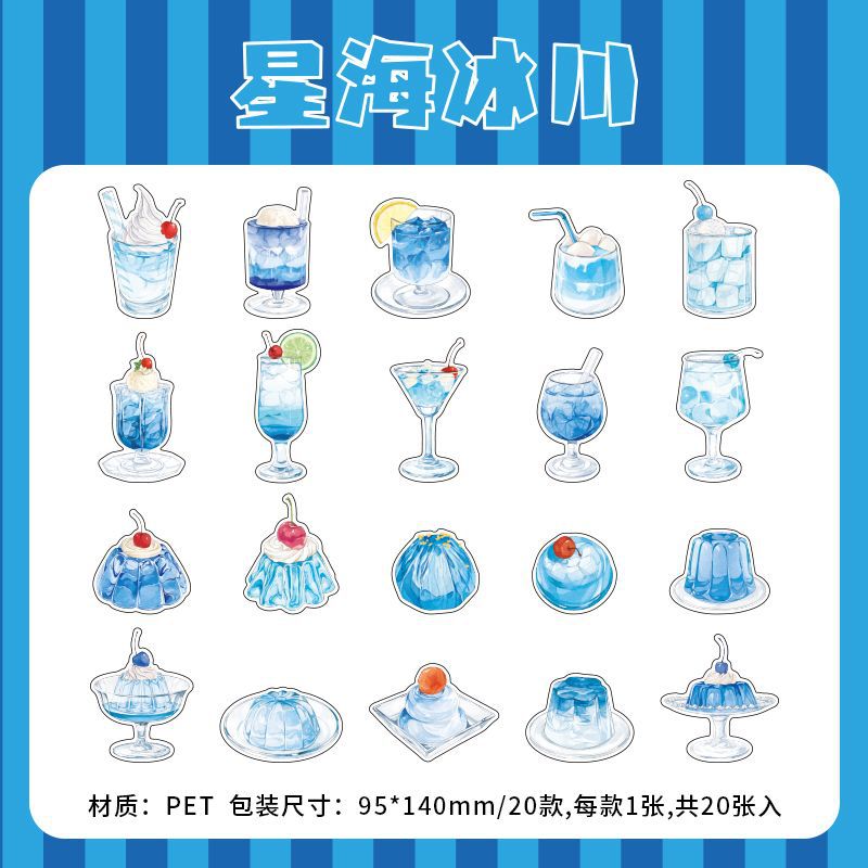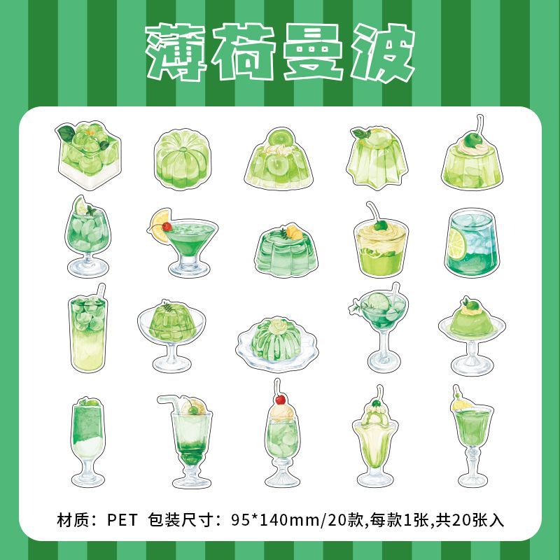 20 Pcs PET Drin and Dessert Stickers QCWX