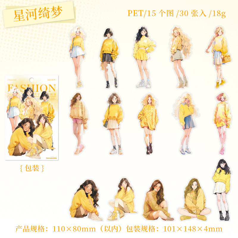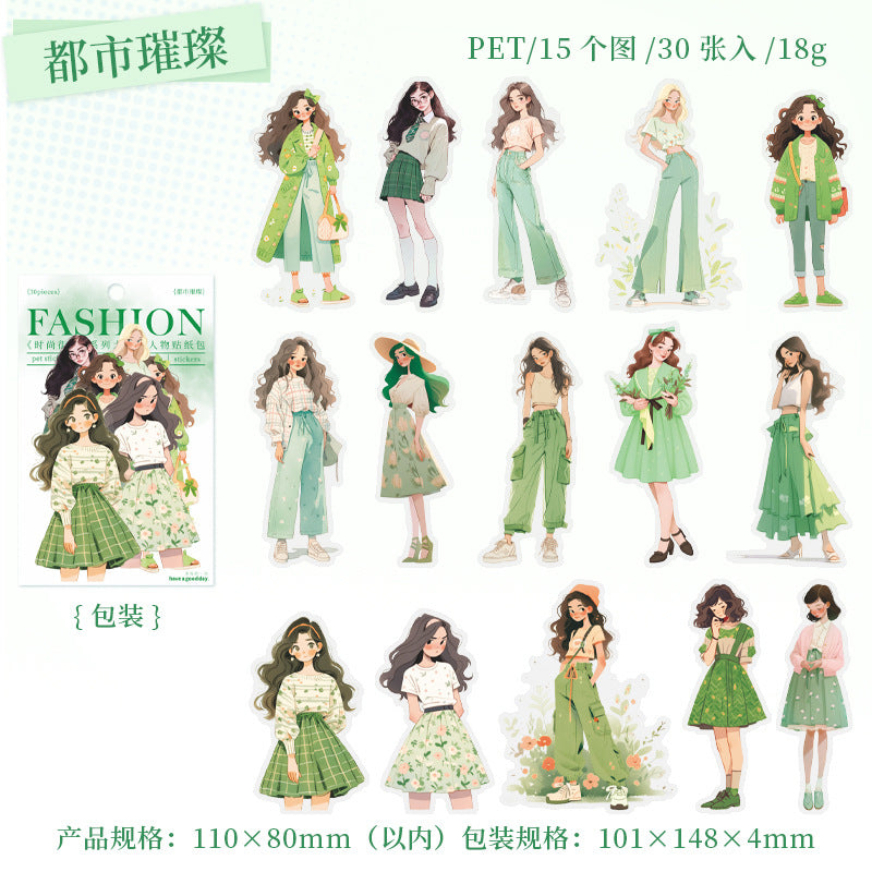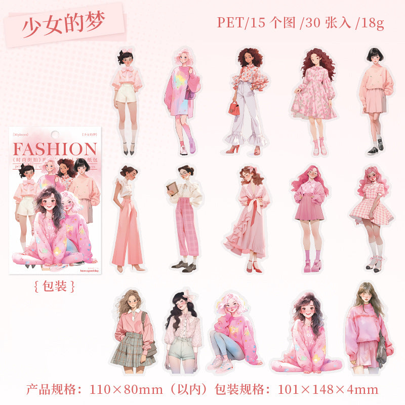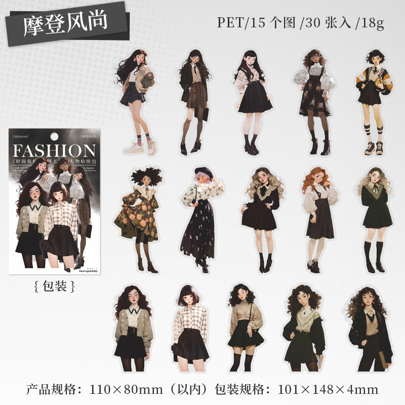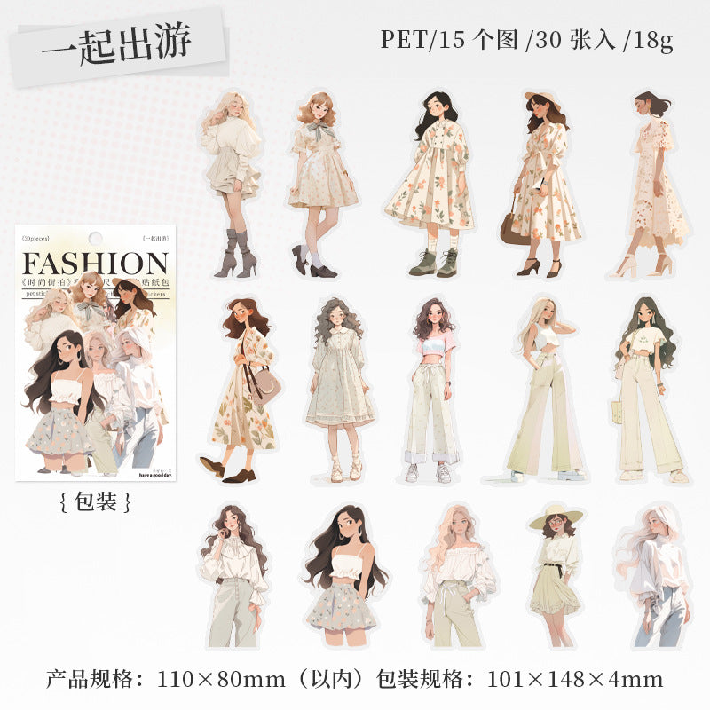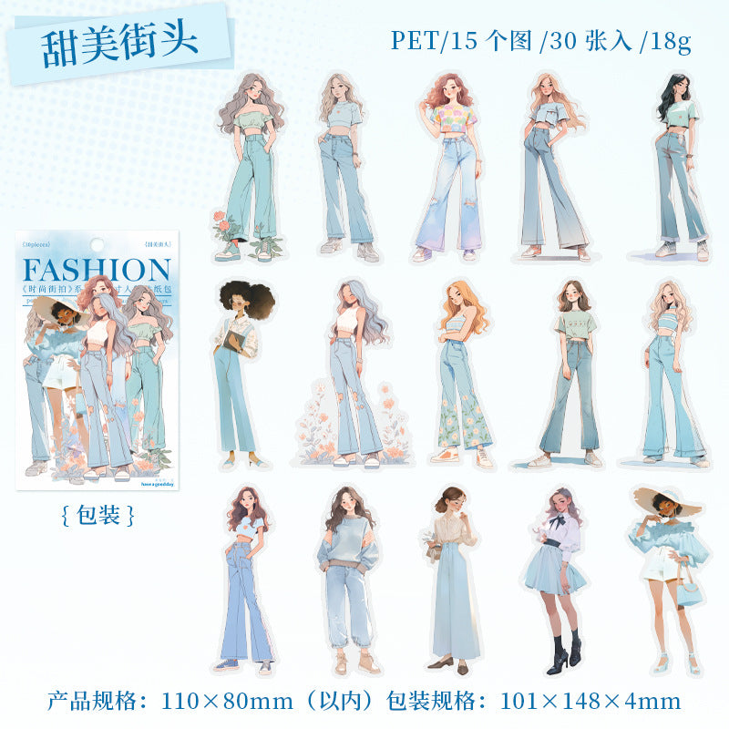 30 Pcs Fashion Girl Street Photography PET Stickers SHJP