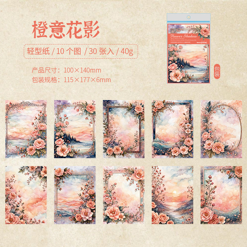30 Pcs Flower Themed Scrapbook Paper HYRK