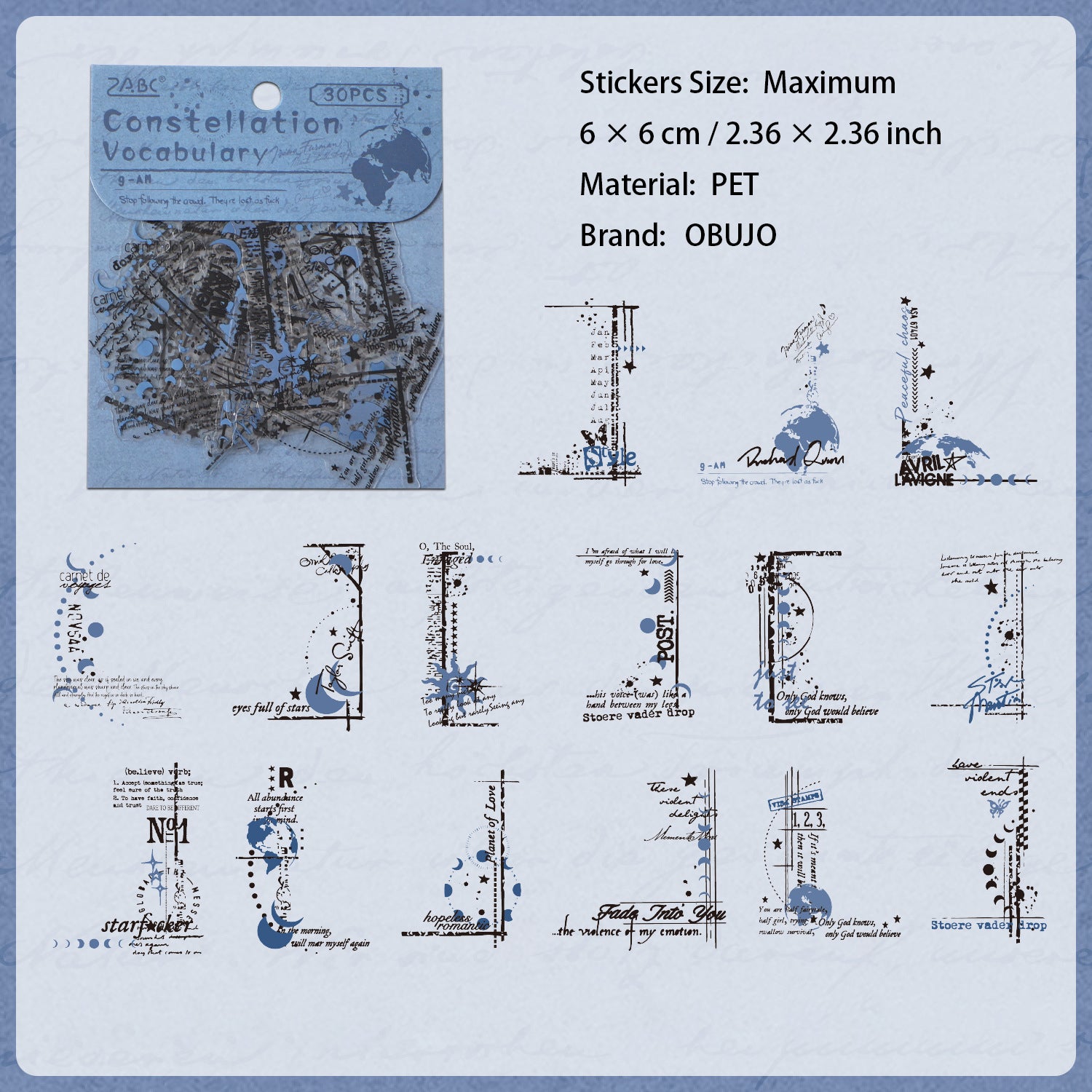 Stickers Size: Maximum 6 × 6 cm / 2.36 × 2.36 inch