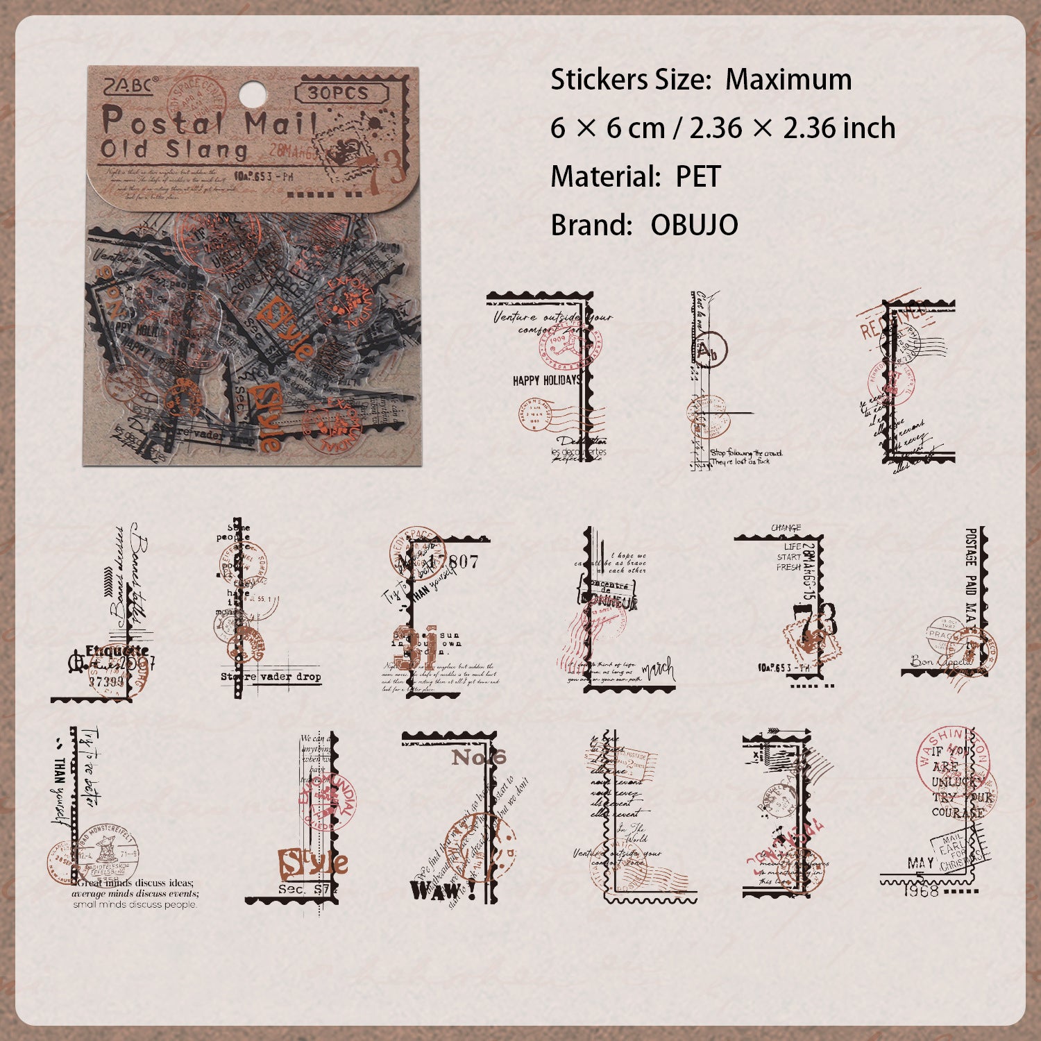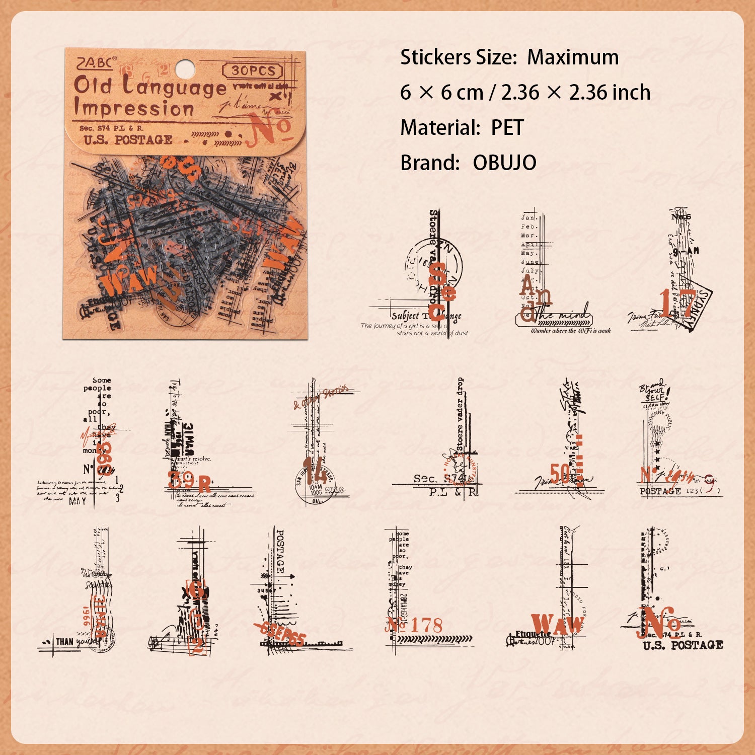 30 Pcs Vintage Collage PET Stickers BYWY