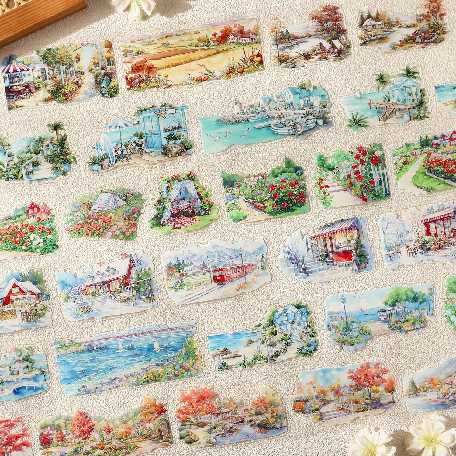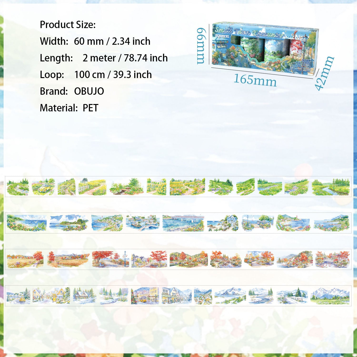 4 Rolls Town Country Landscape PET Stickers Tapes Set XZRZ