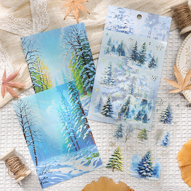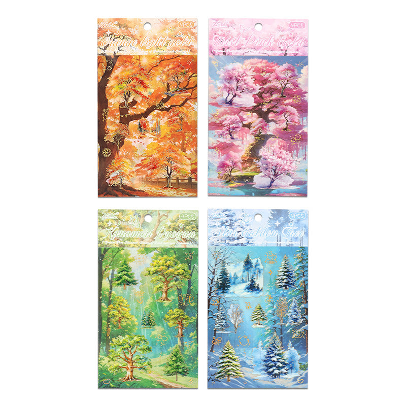4 Sheets Seasonal Tree PET Stickers SYLJ