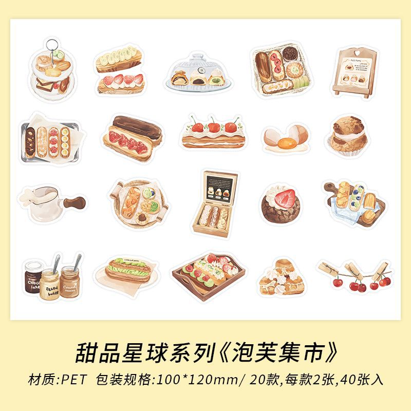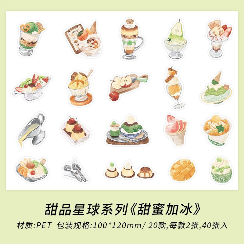 40 Pcs Dessert and Drink PET Stickers TPXQ