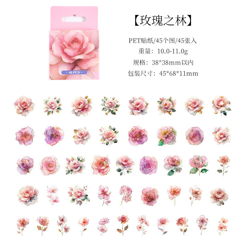 45 Pcs Pink Flower Stickers FSHJ