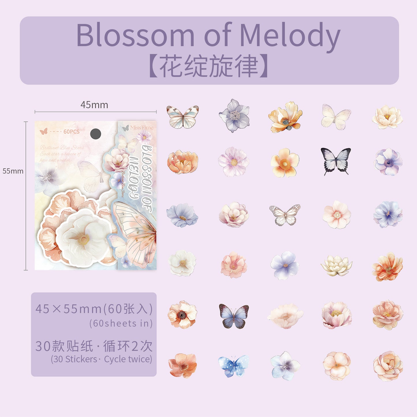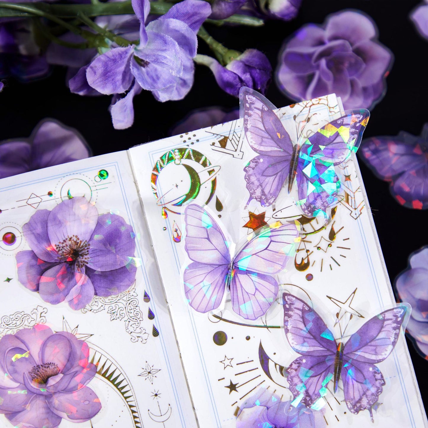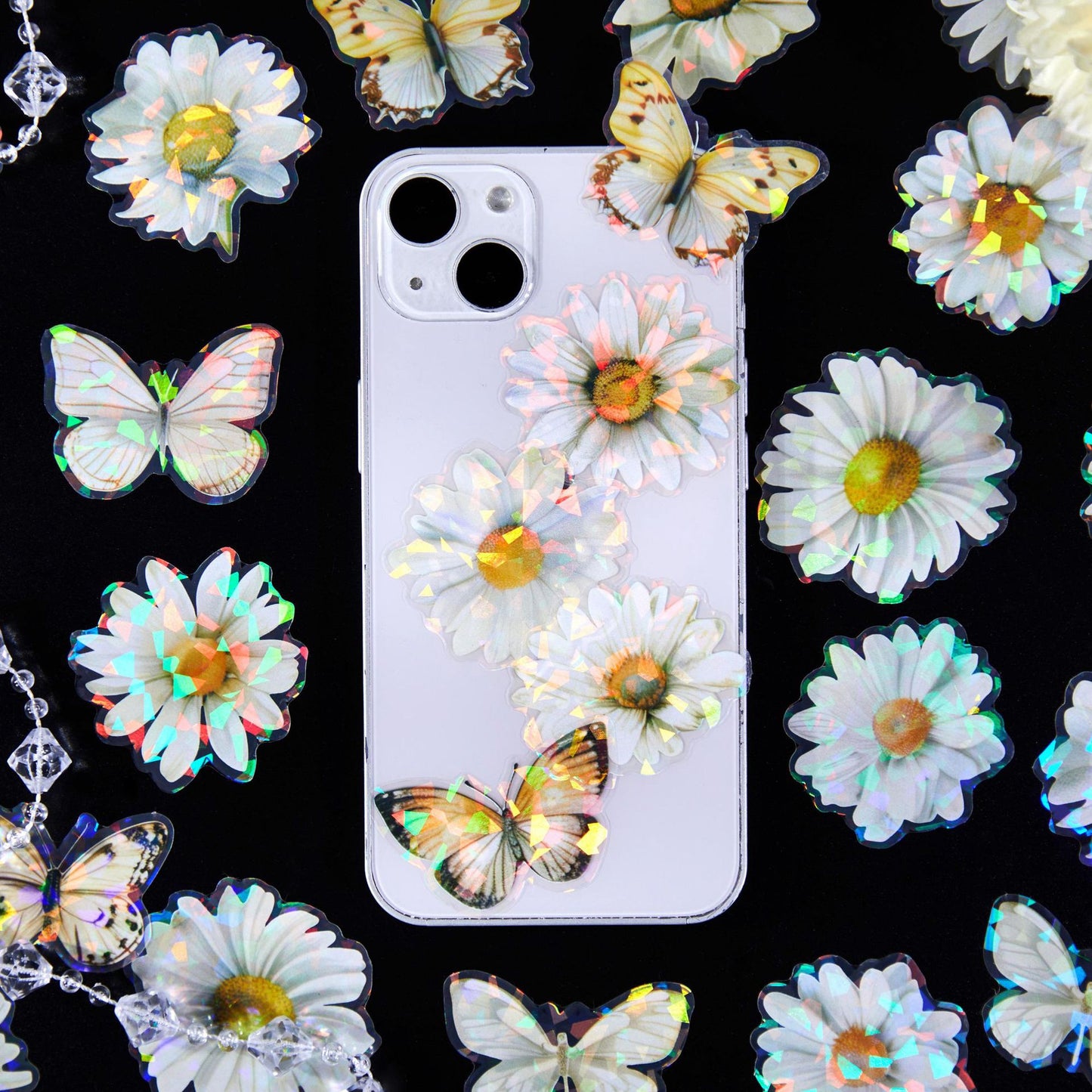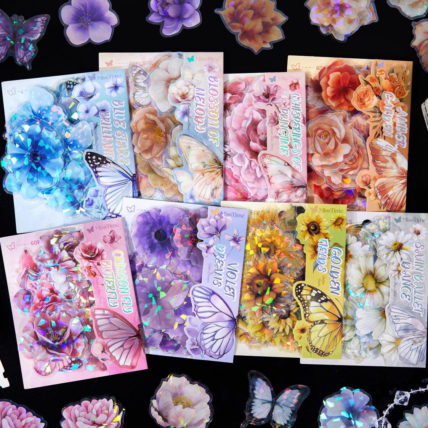 60 Pcs Holographic Flower Stickers LLXC