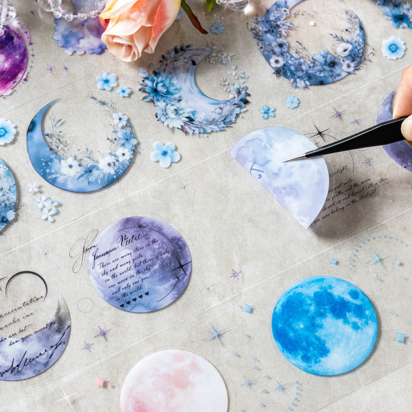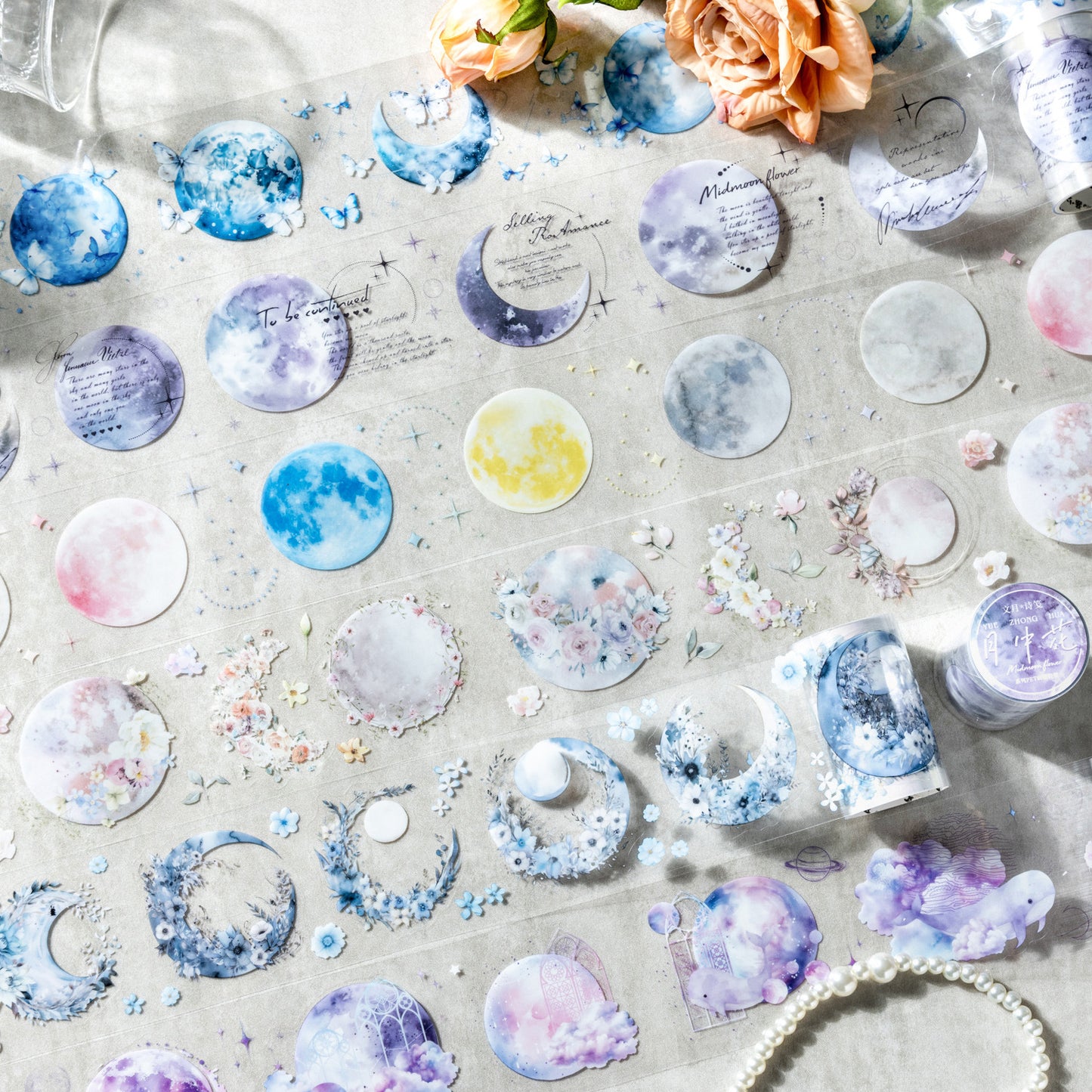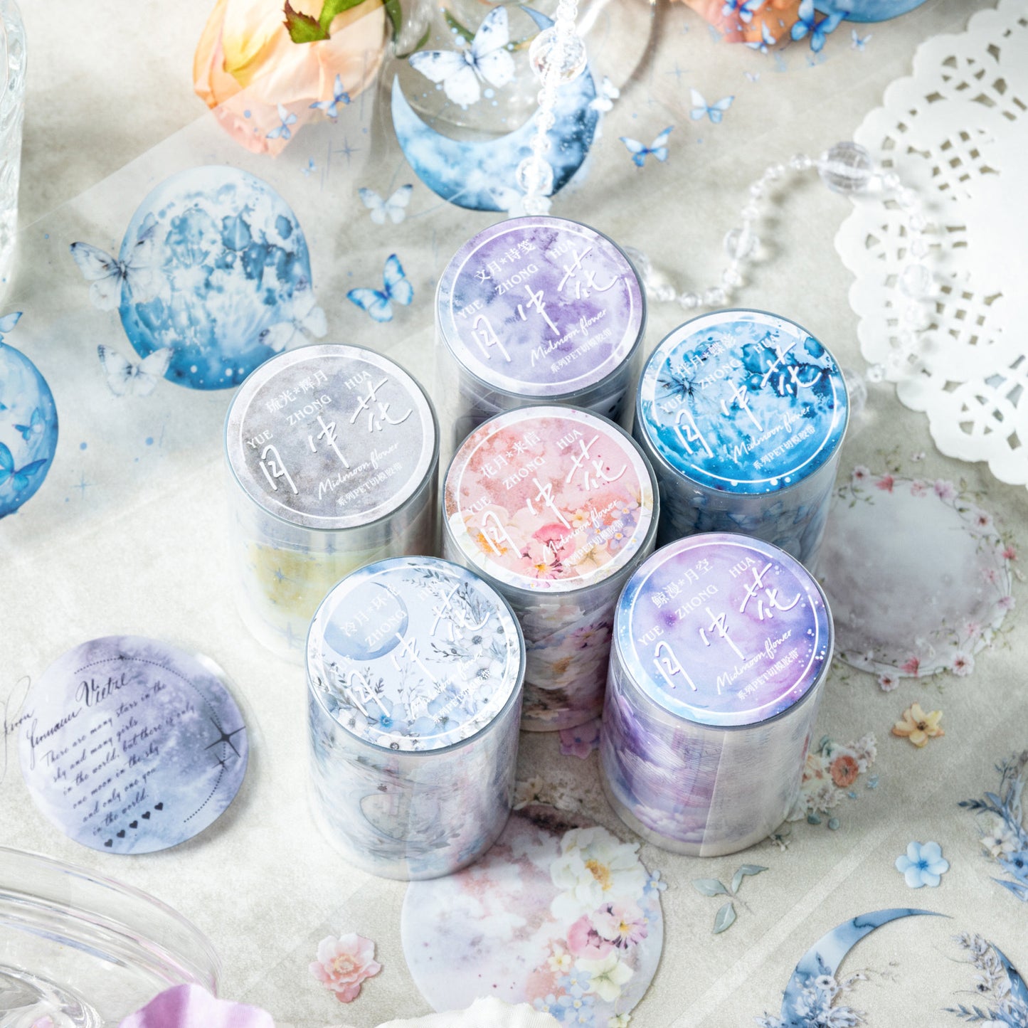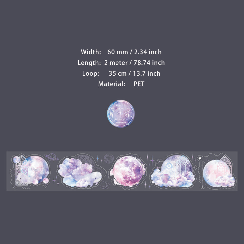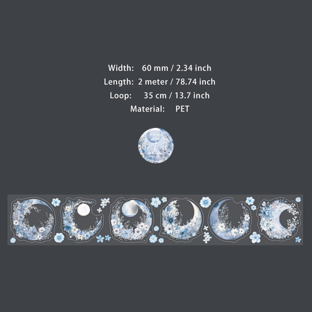 1 Roll Die-cut Moon Flower PET Stickers Tape YZHX