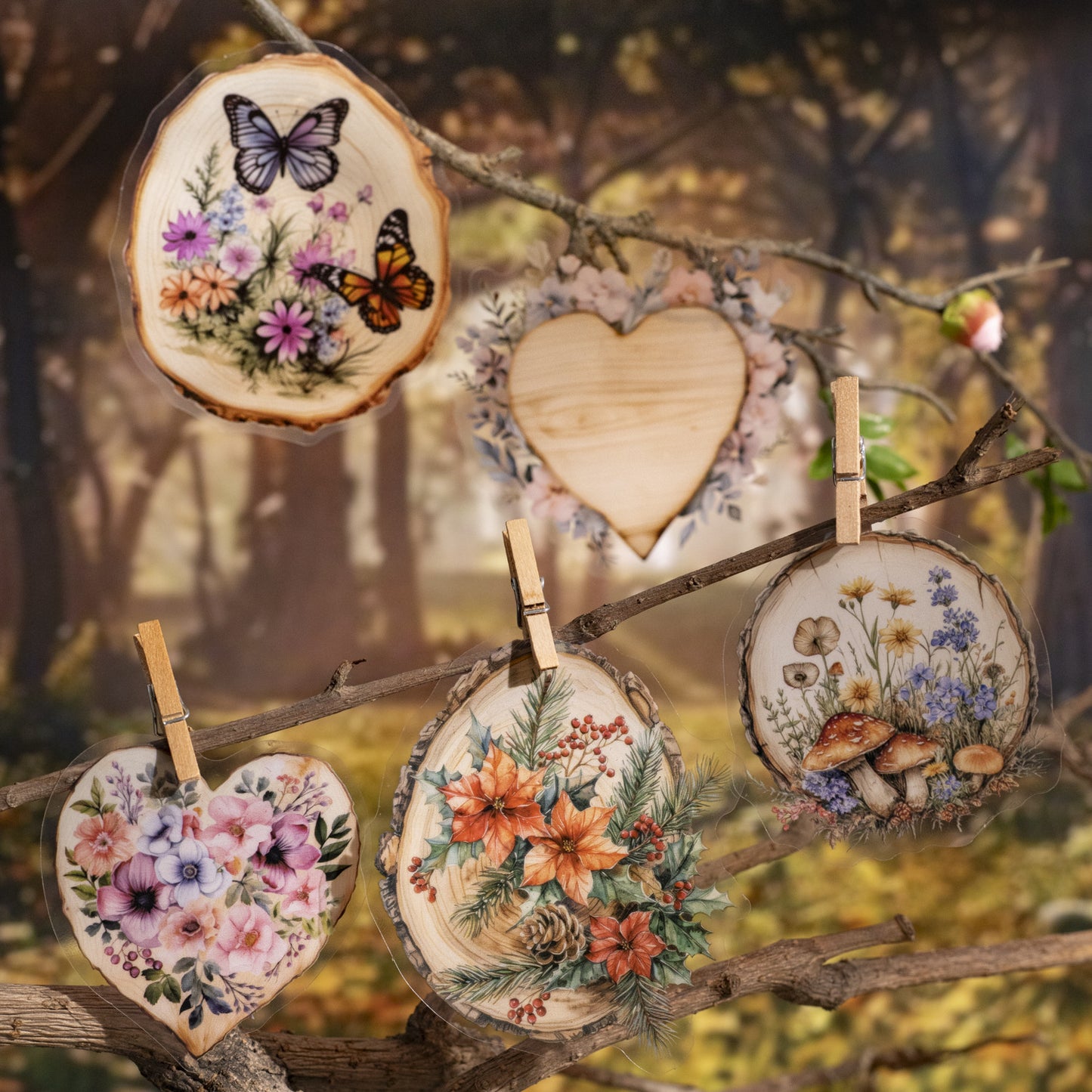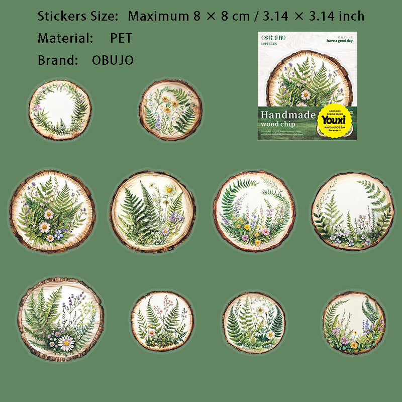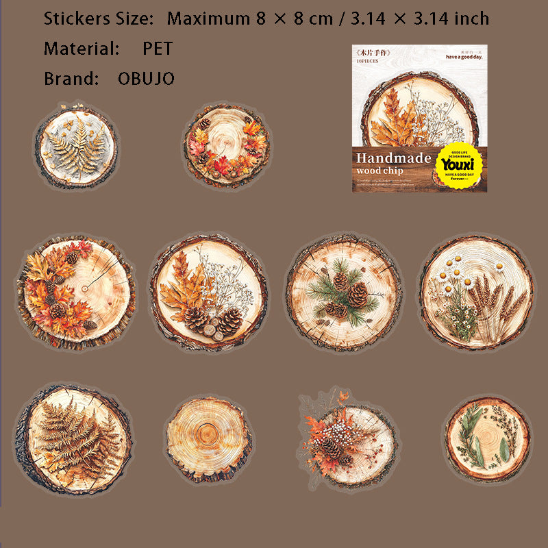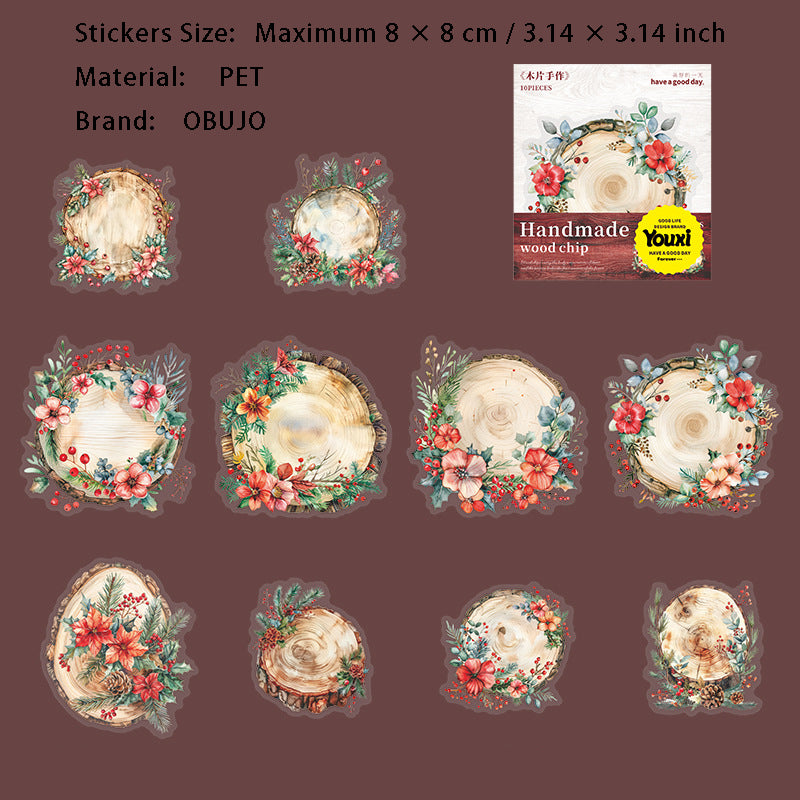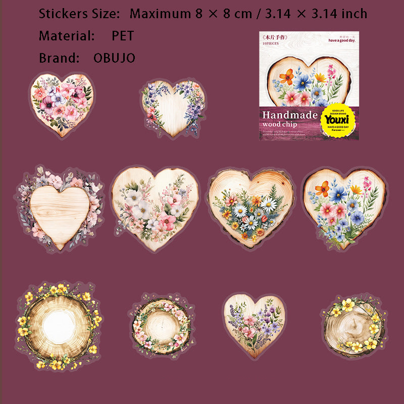 10 Pcs Wooden Art PET Stickers MPSZ