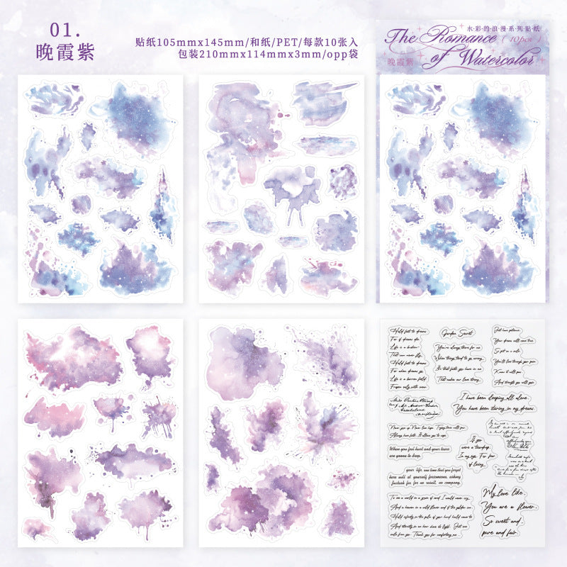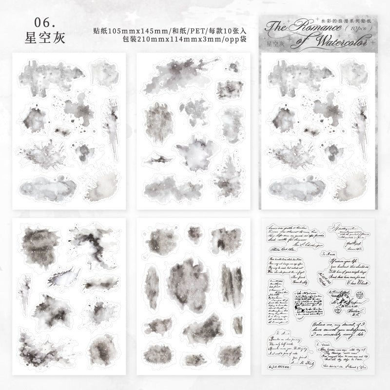 10 Sheets Watercolor PET and Washi Stickers SCLM