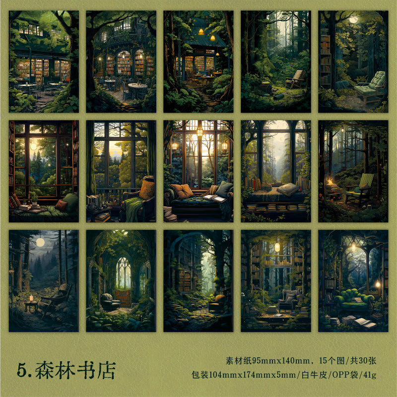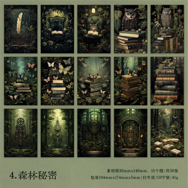 30 Pcs Dark Forest Scrapbook Paper SQSL