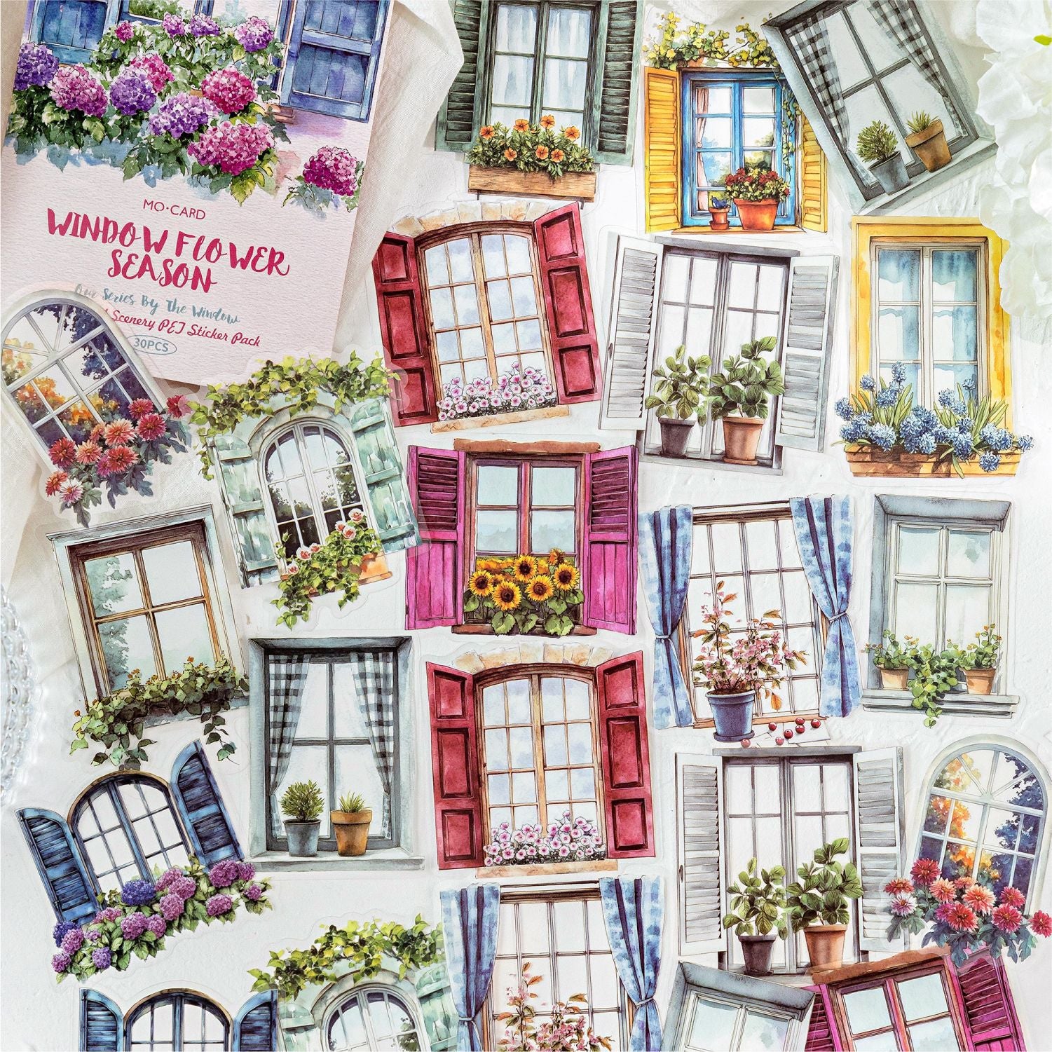 30 Pcs Windows Landscape PET Stickers CBDWM
