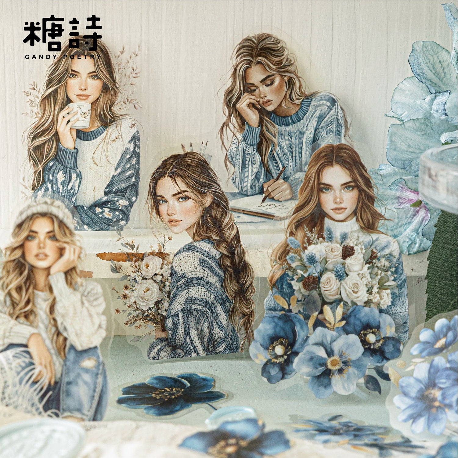 40 Pcs Cozy Girl and Flower PET Stickers FHXH