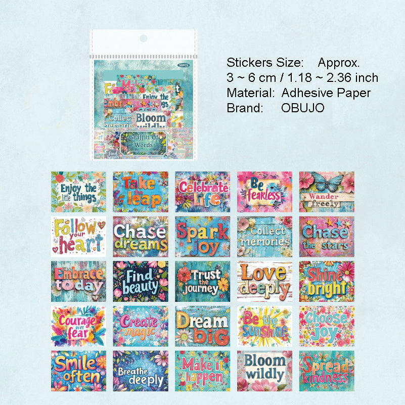 50 Pcs Vitnage Quote Words Stickers HYZS