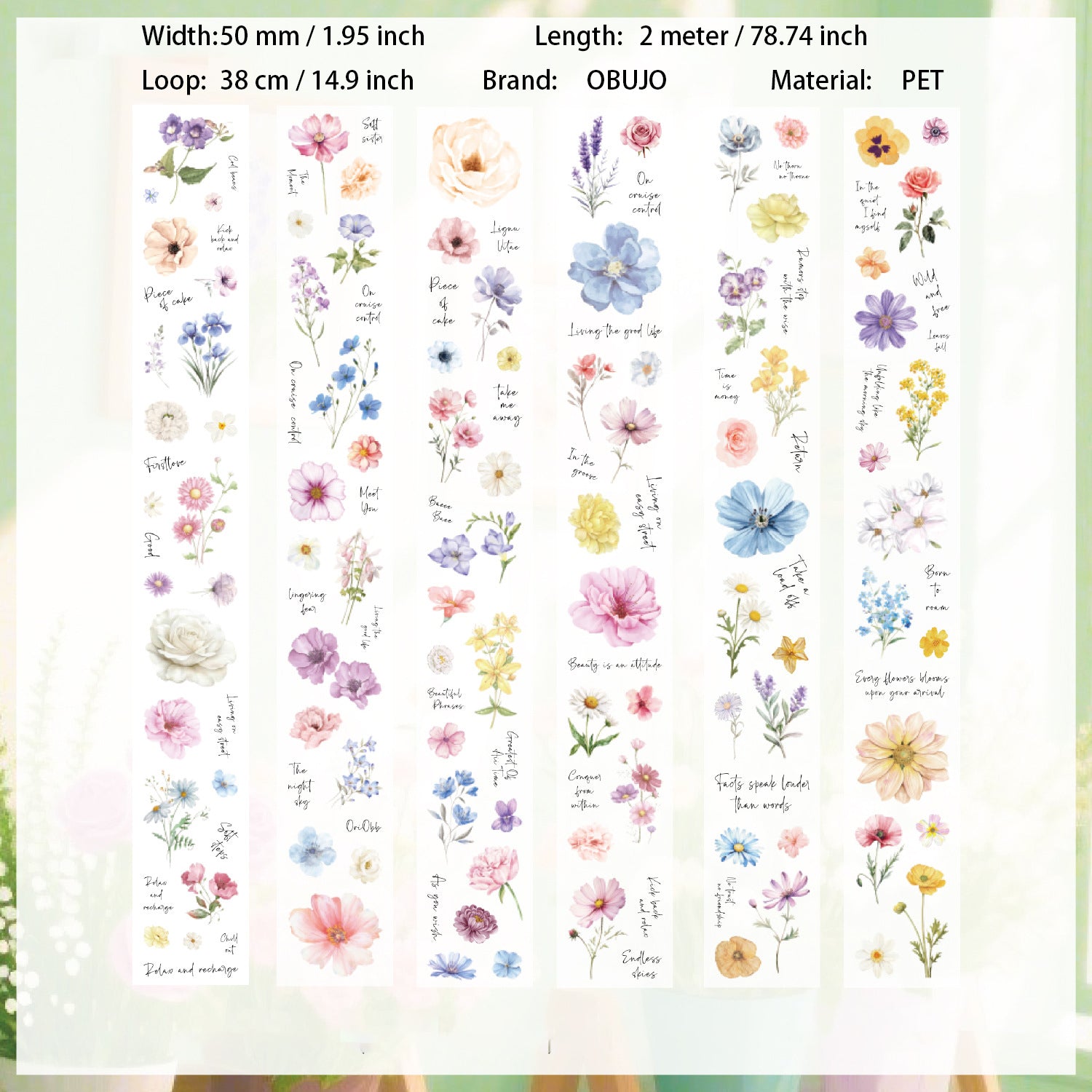 6 Rolls Wildflower PET Stickers Tapes Set FFXS