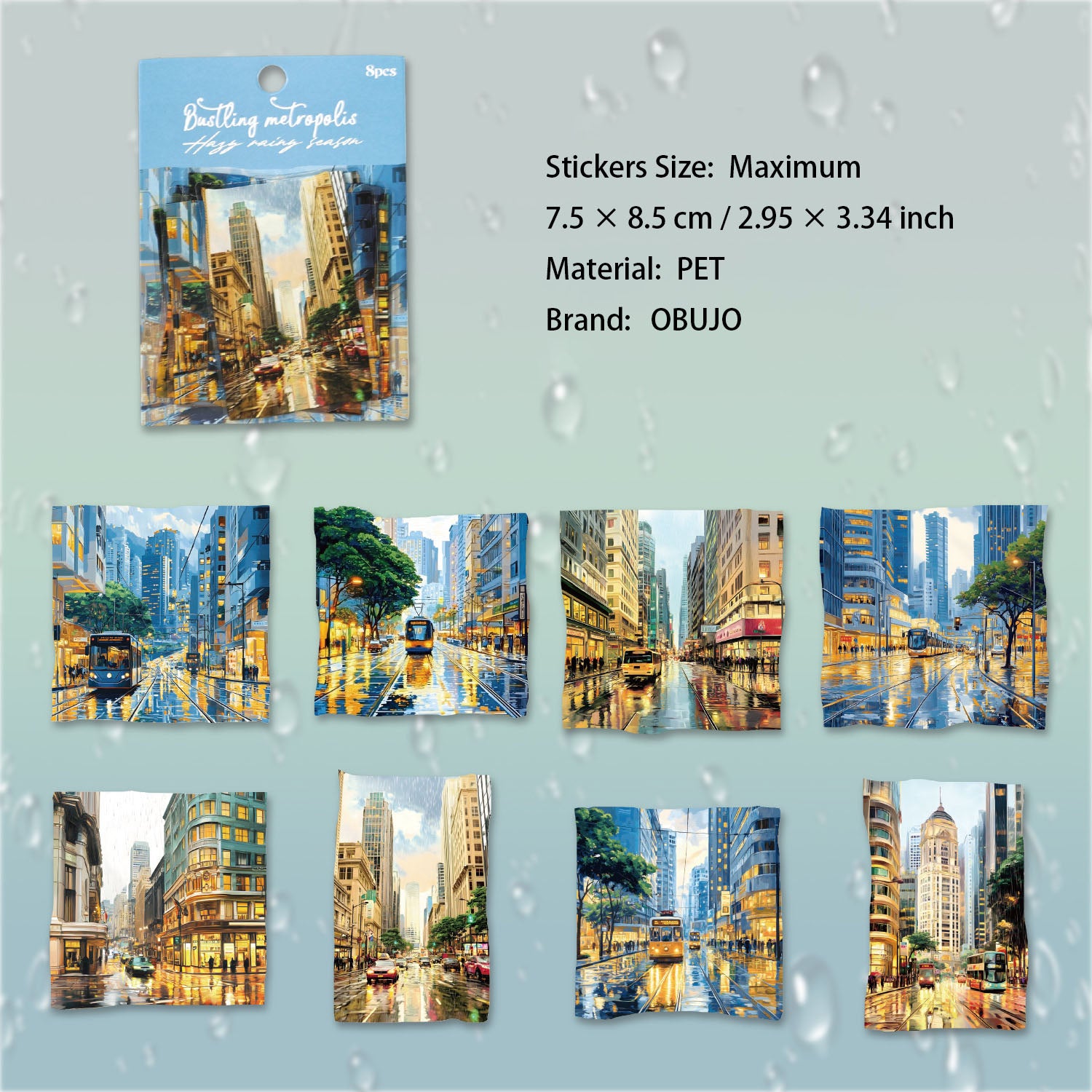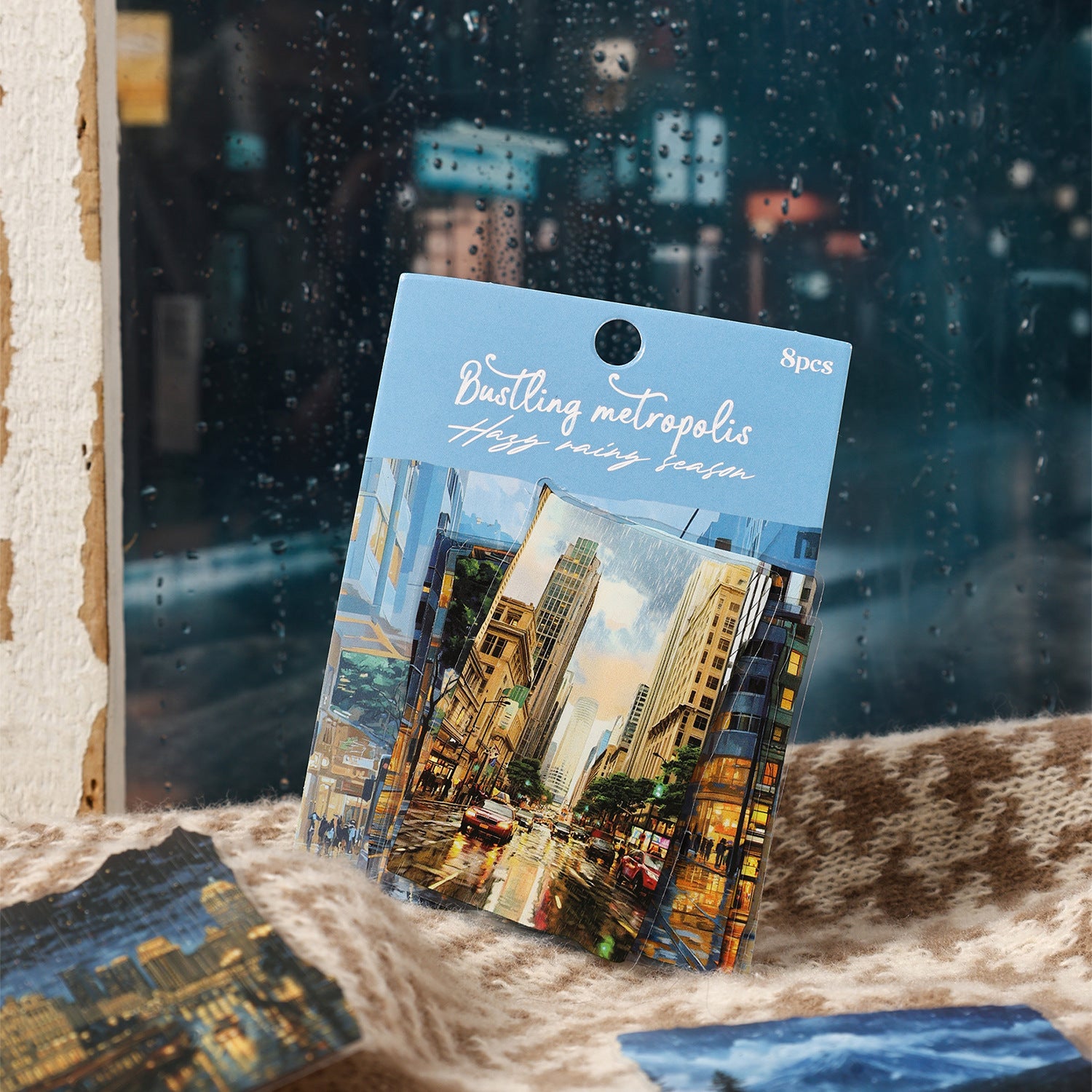 8 Pcs Rainy Season Landscape PET Stickers MLYJ