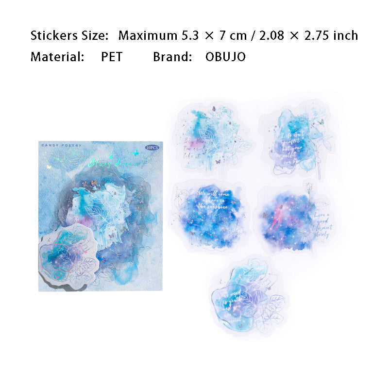 10 Pcs Watercolor Flower PET Stickers LGHP