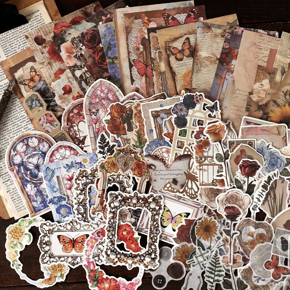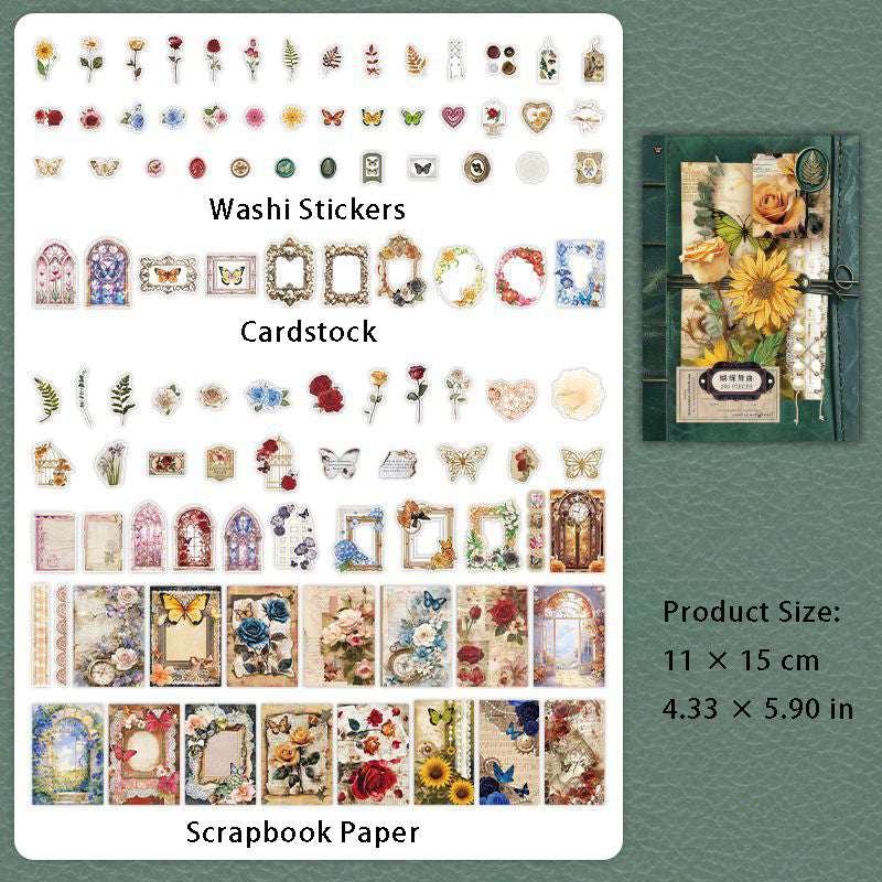 200 Pcs Junk Journal Paper and Stickers Kit BBJY