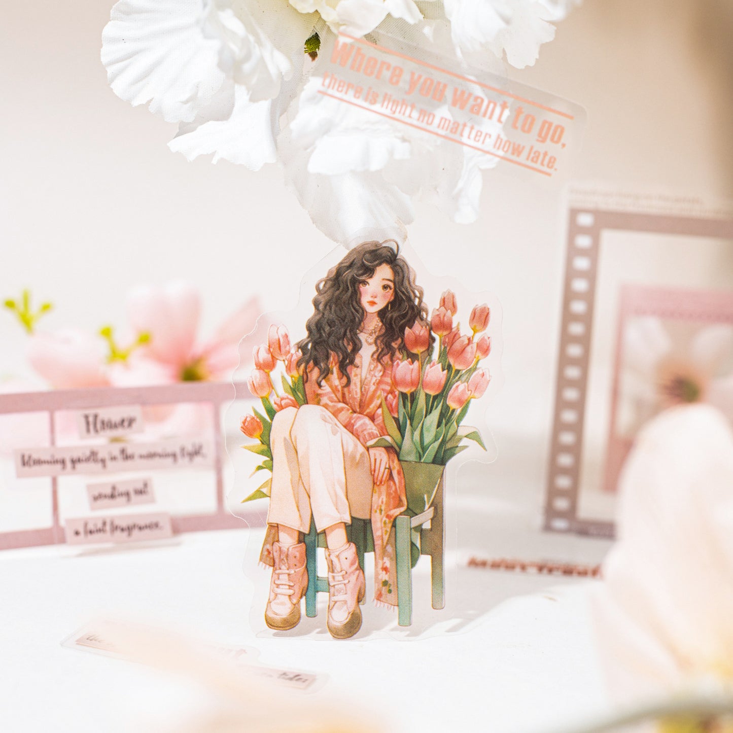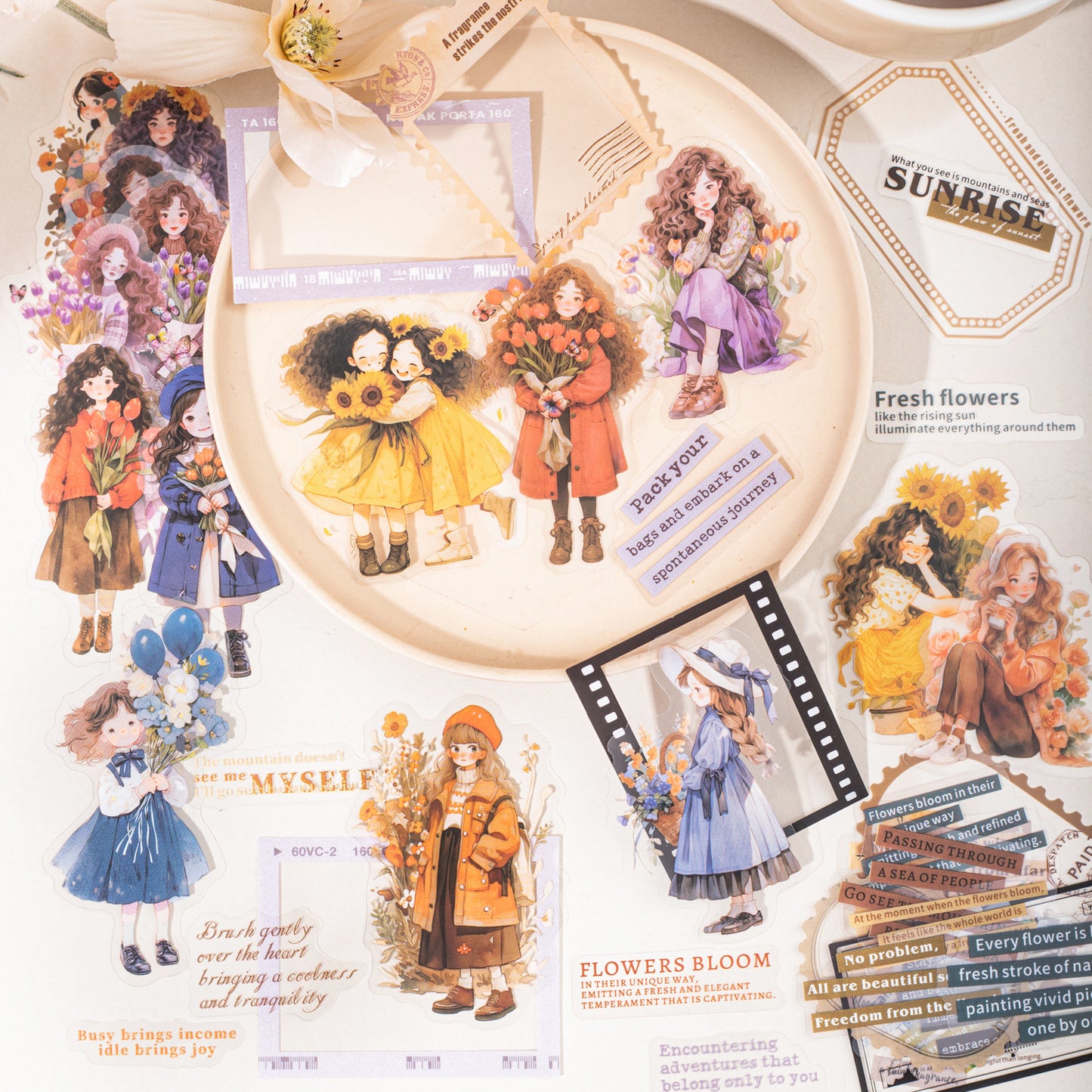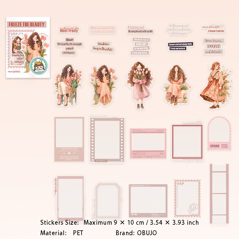 25 Pcs Girl Frame Words PET Stickers DGMH