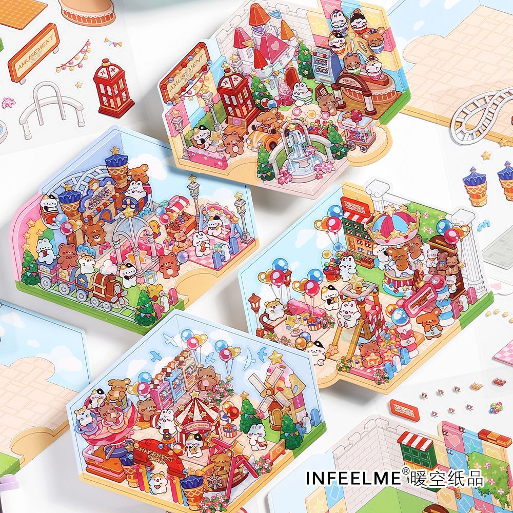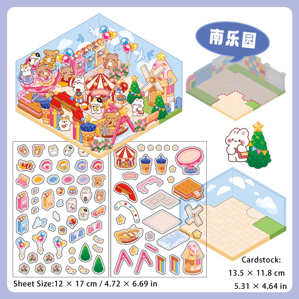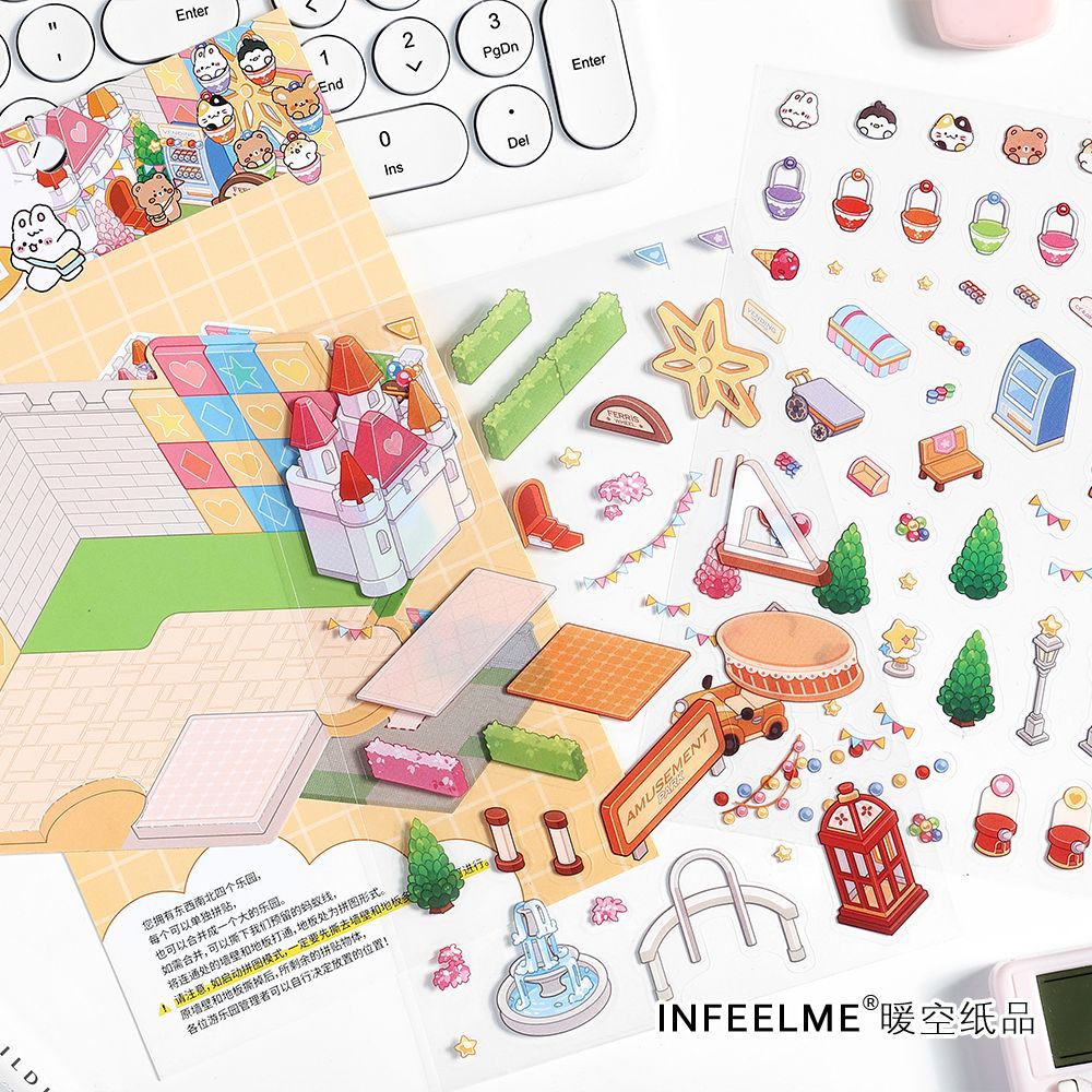 3 Sheets Creative 3D Effect Amusement Park PET Stickers CHYLY
