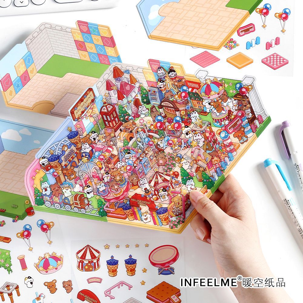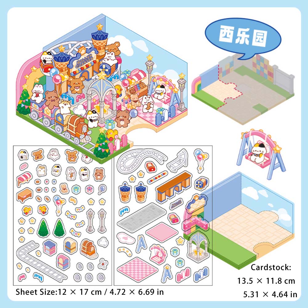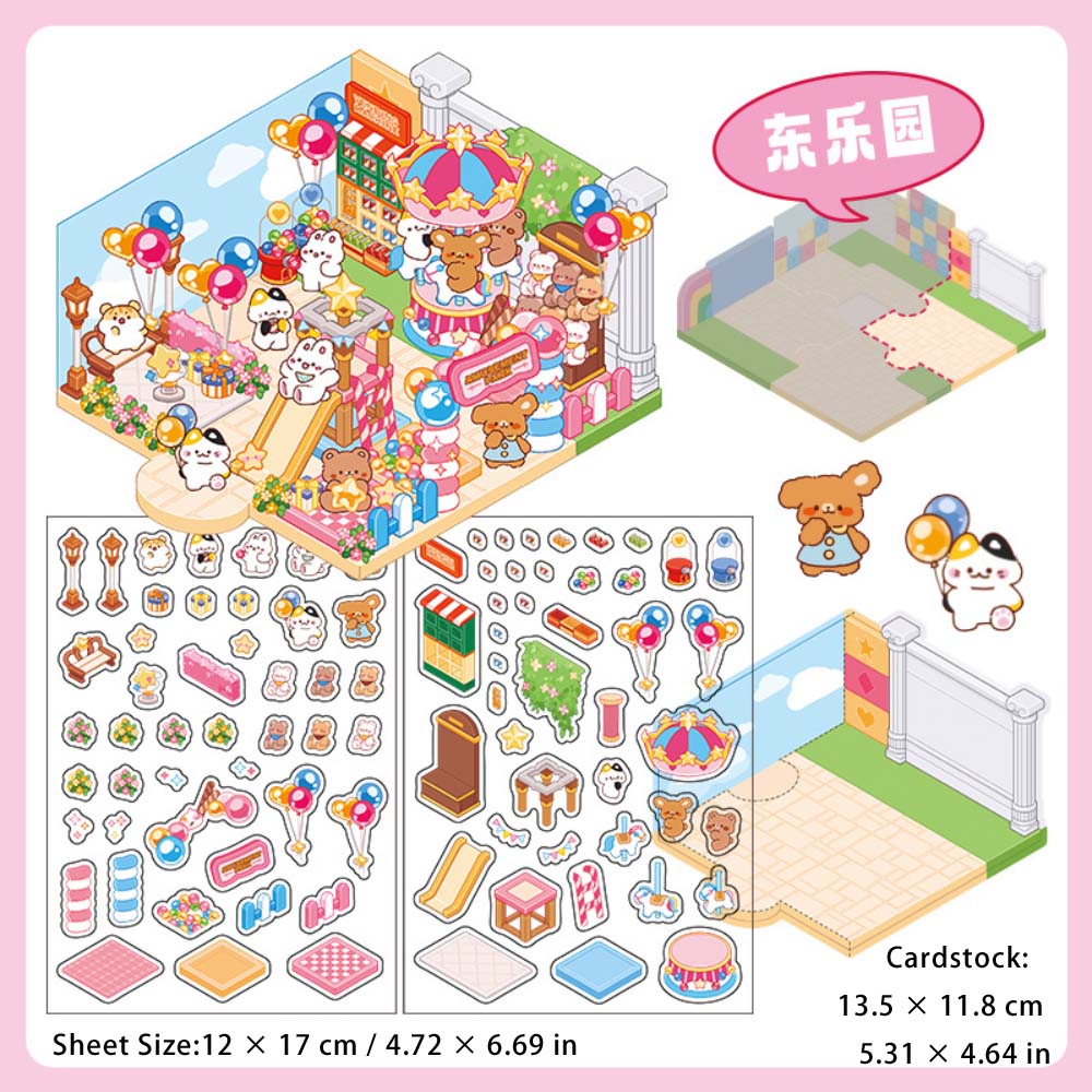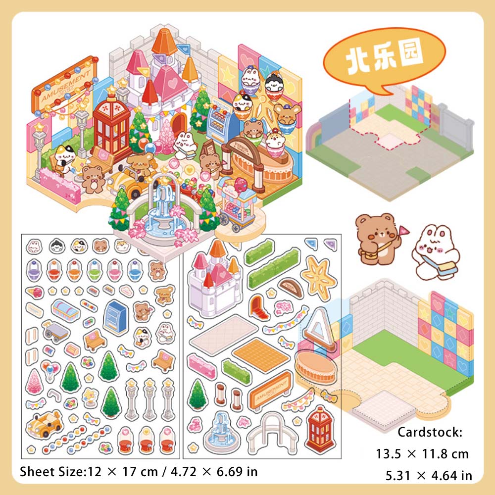 3 Sheets Creative 3D Effect Amusement Park PET Stickers CHYLY