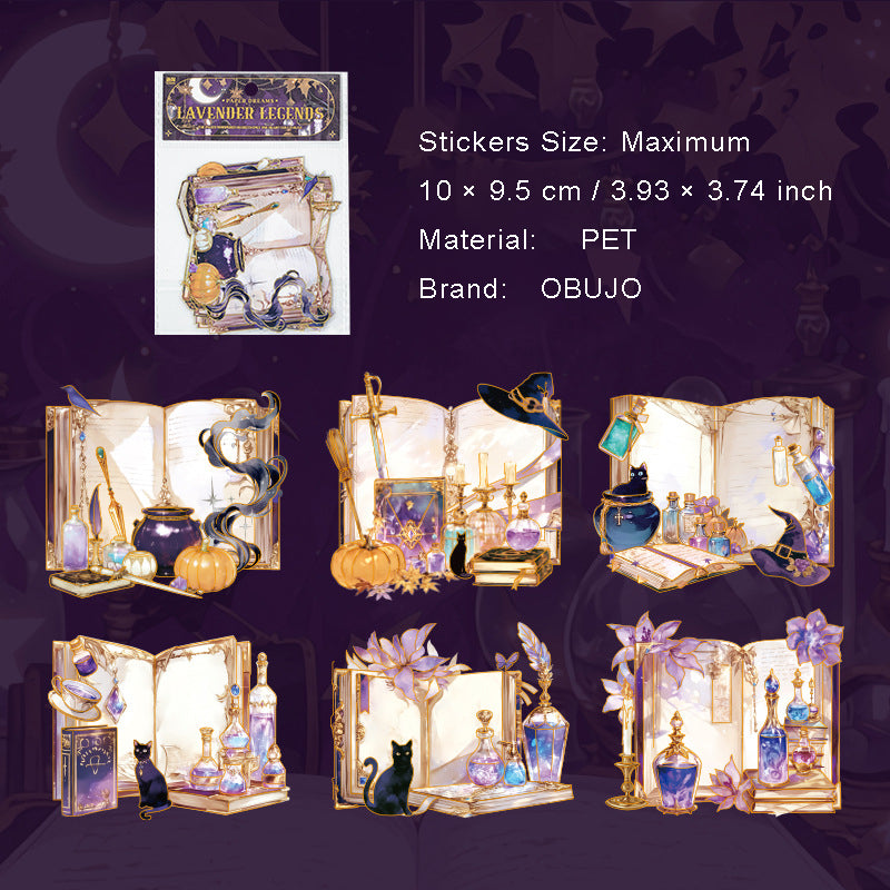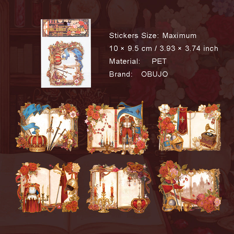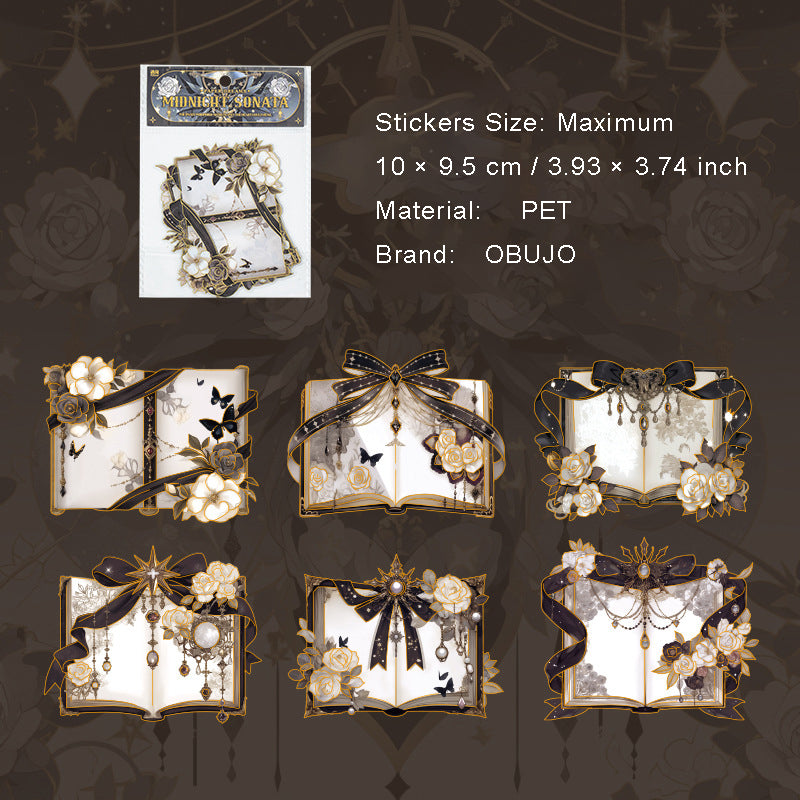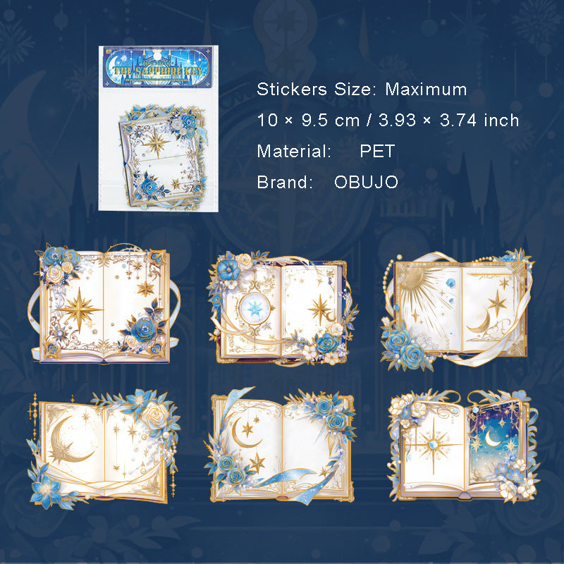 6 Pcs Glitter Bookish PET Stickers ZMYS