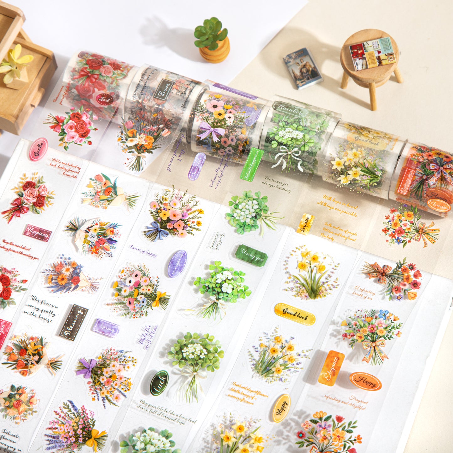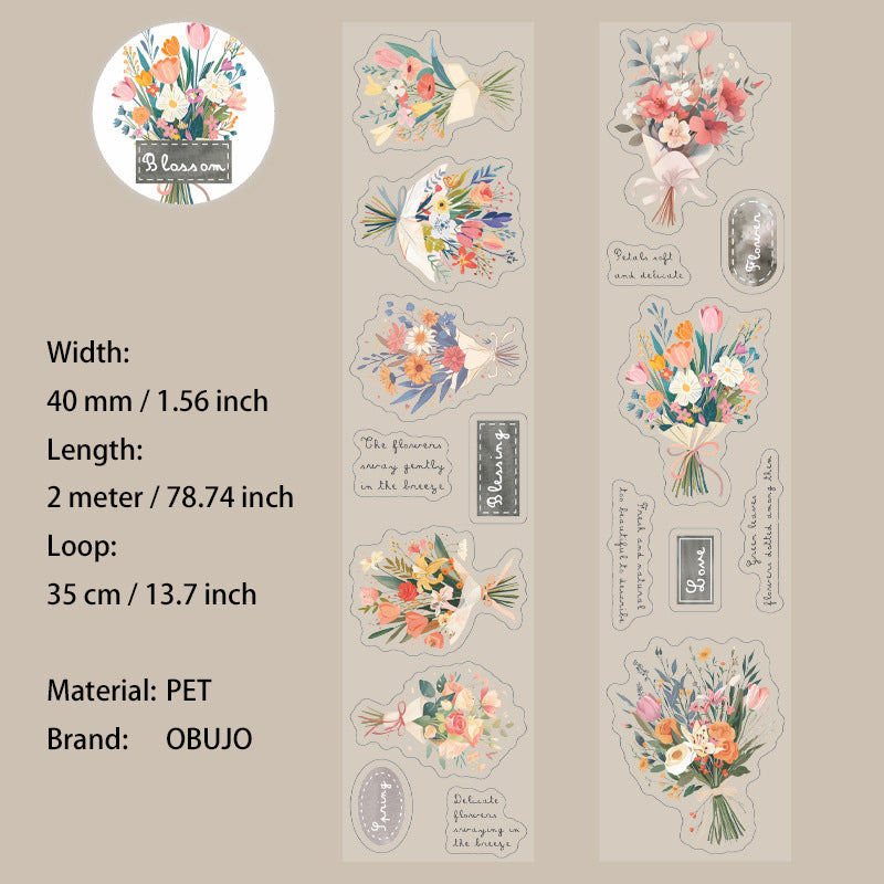 1 Roll Bouquet Flower PET Stickers Tape HYSK