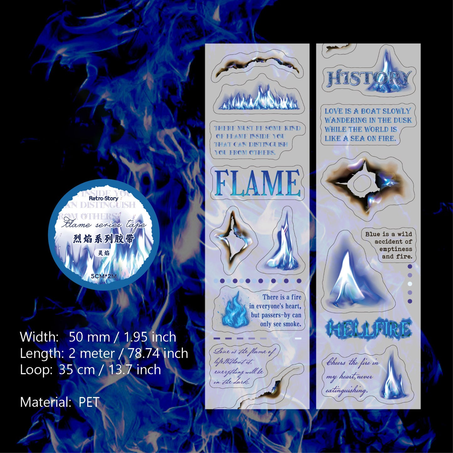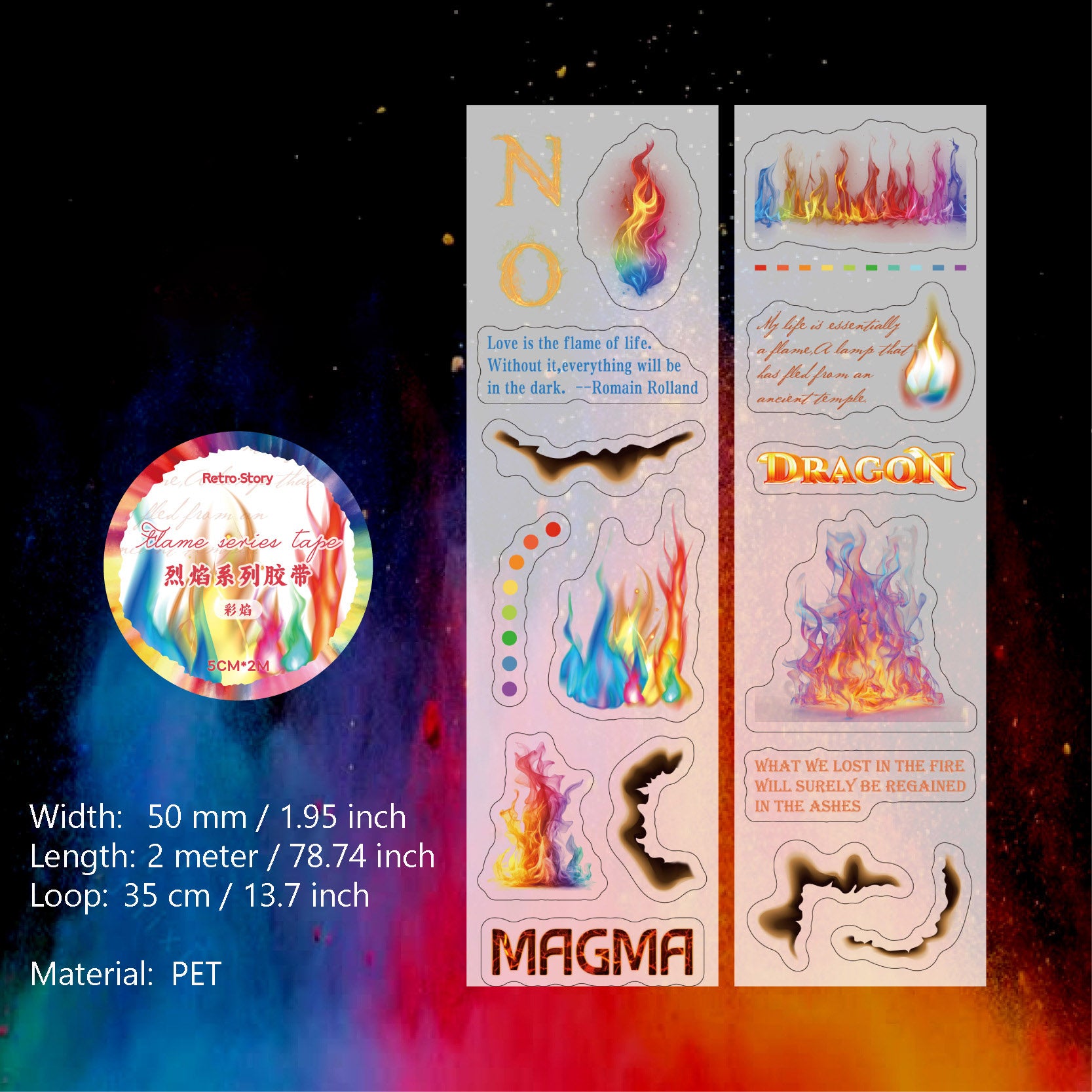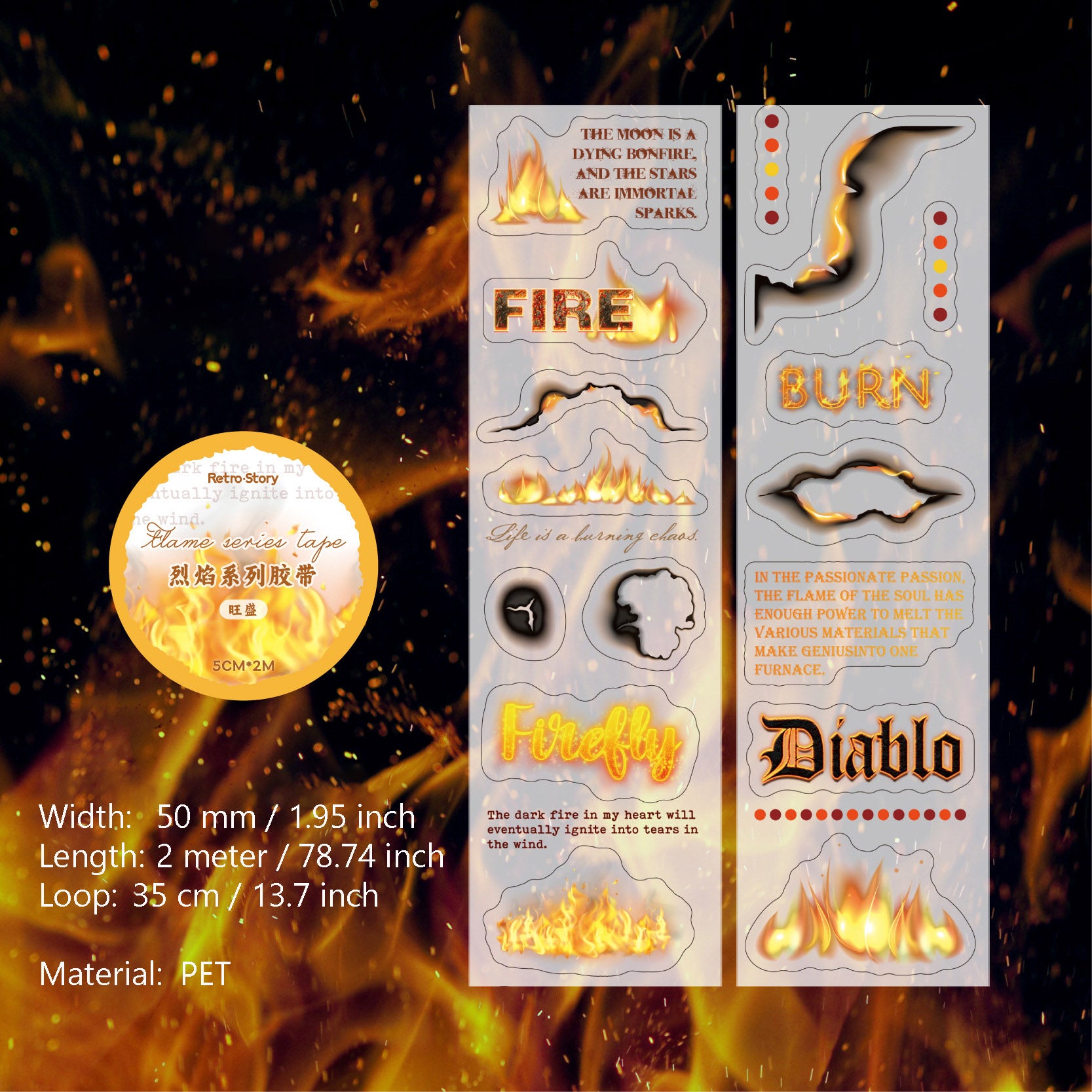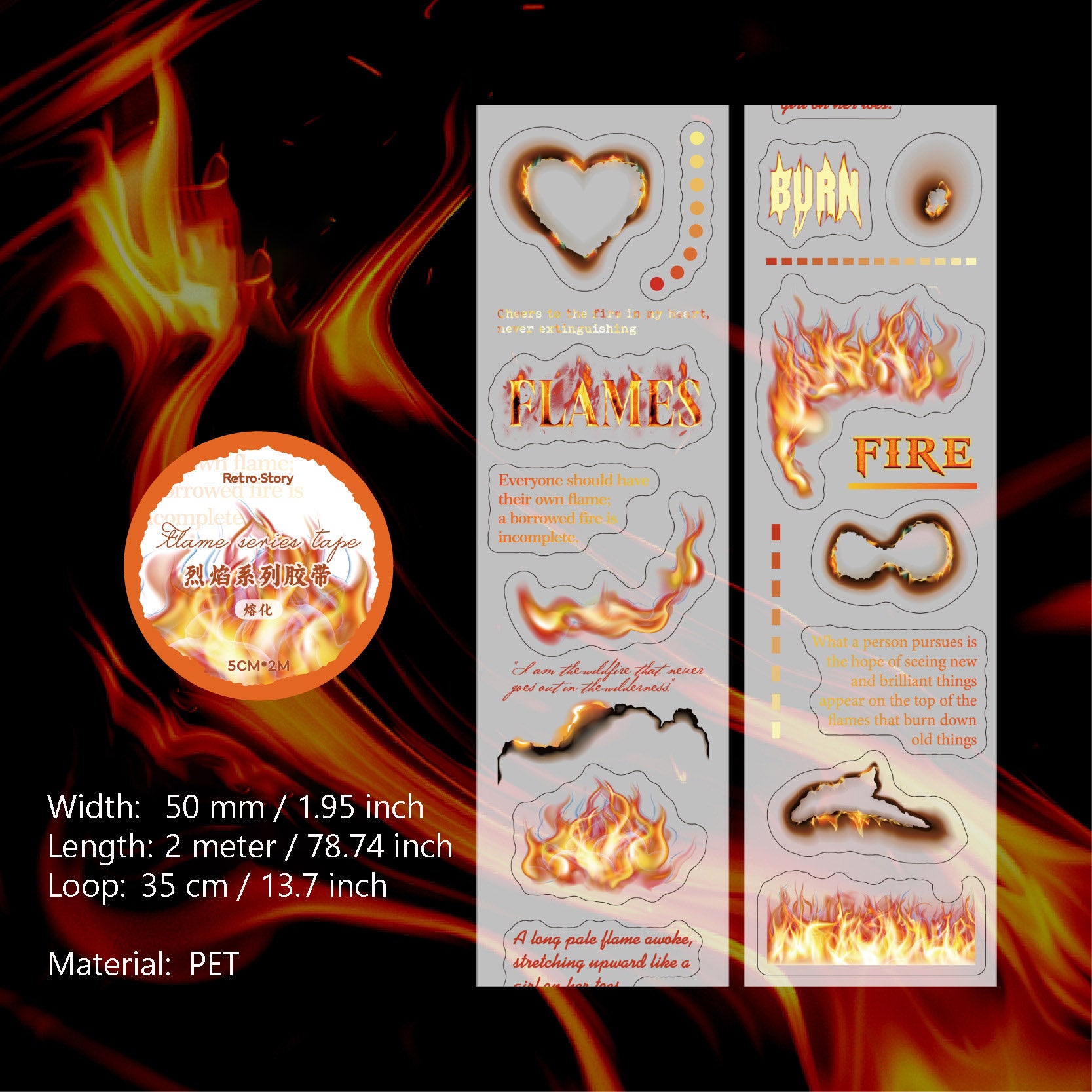 1 Roll Fire Theme PET Sticker Tape LYXL