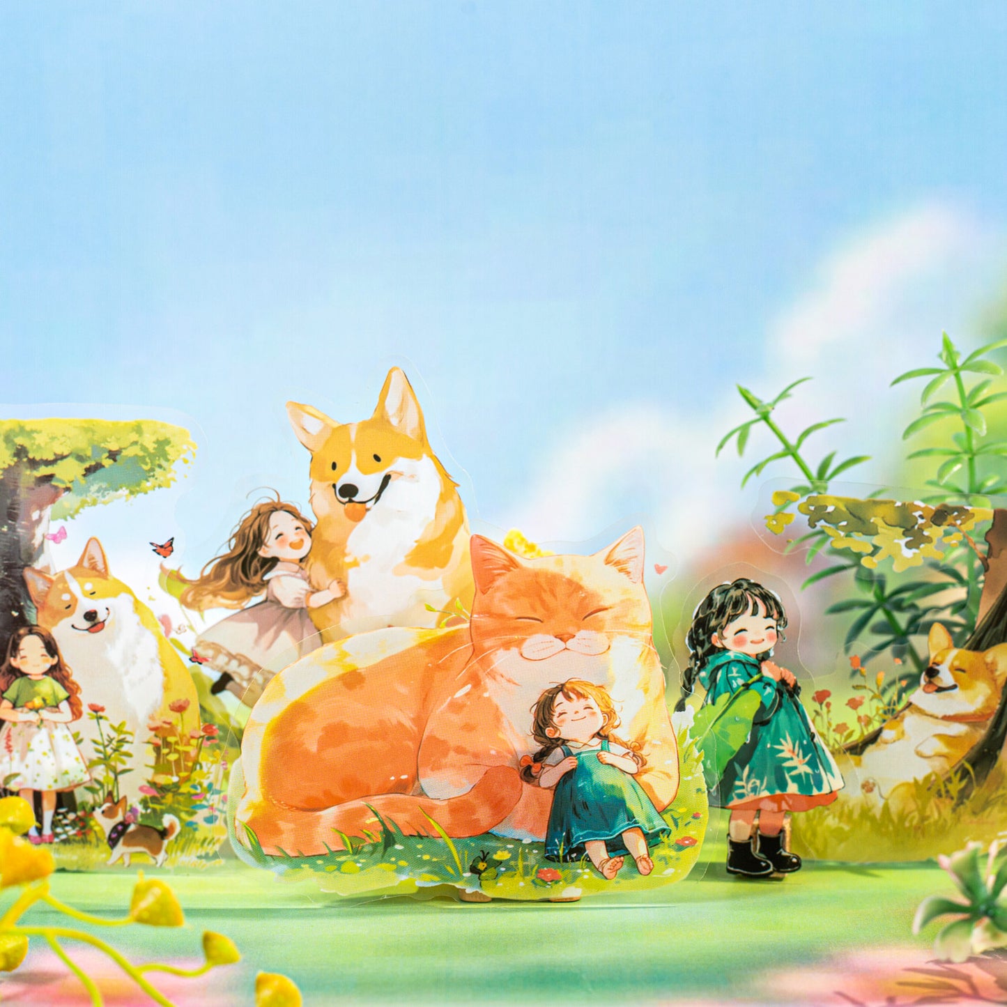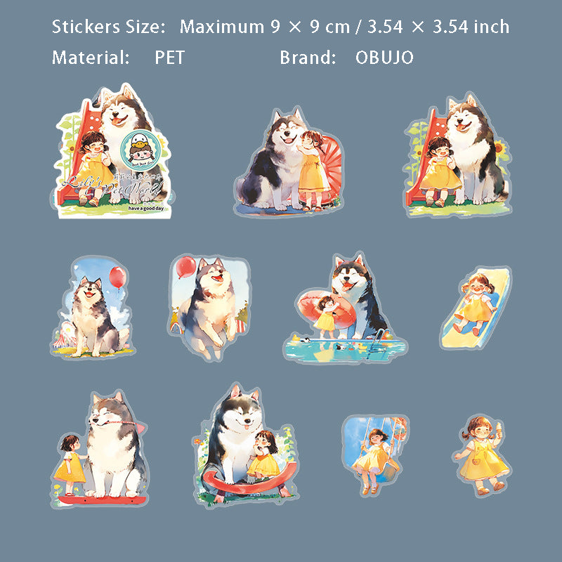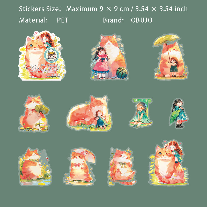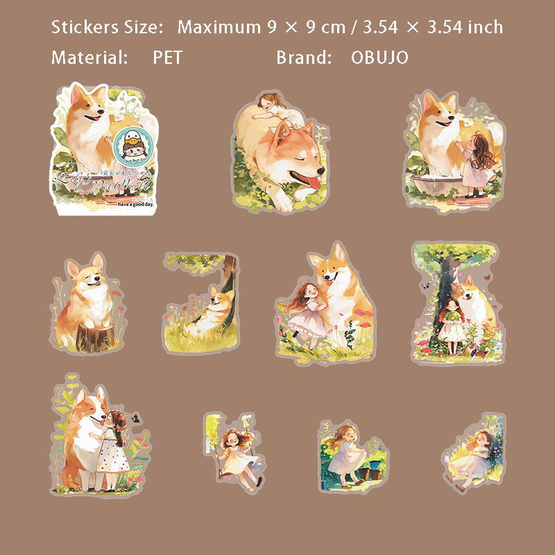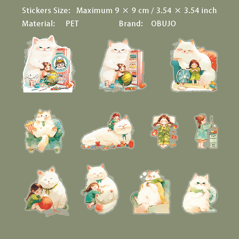 10 Pcs Cartoon Pet and Litterle Girl PET Stickers ACDSJ