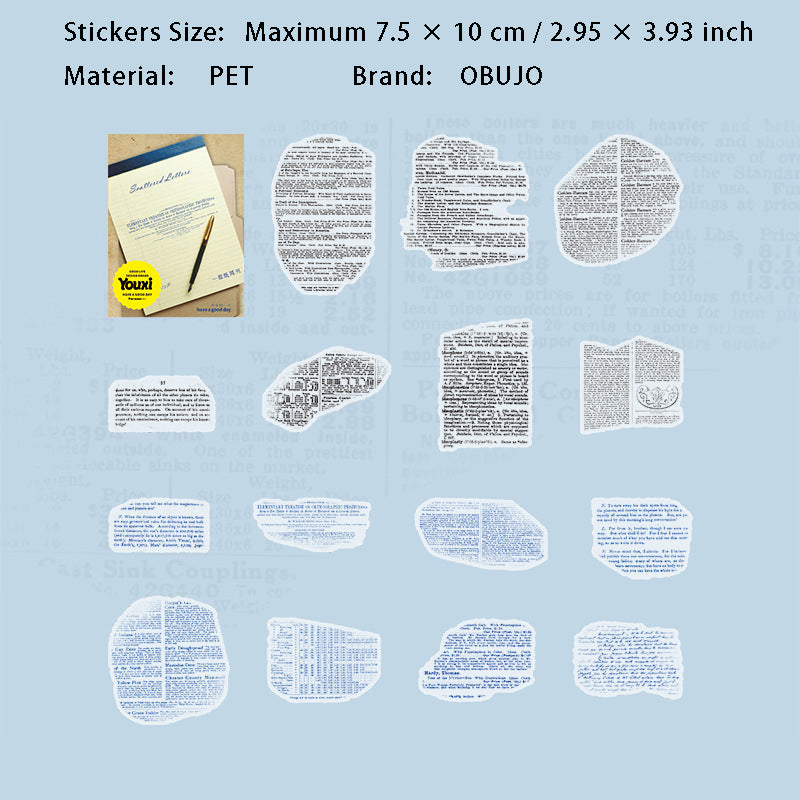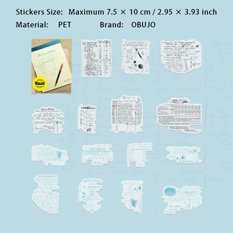 15 Pcs Vintage Letter PET Stickers BBXJ