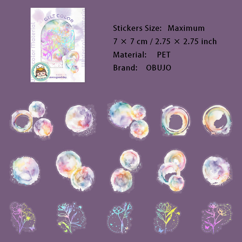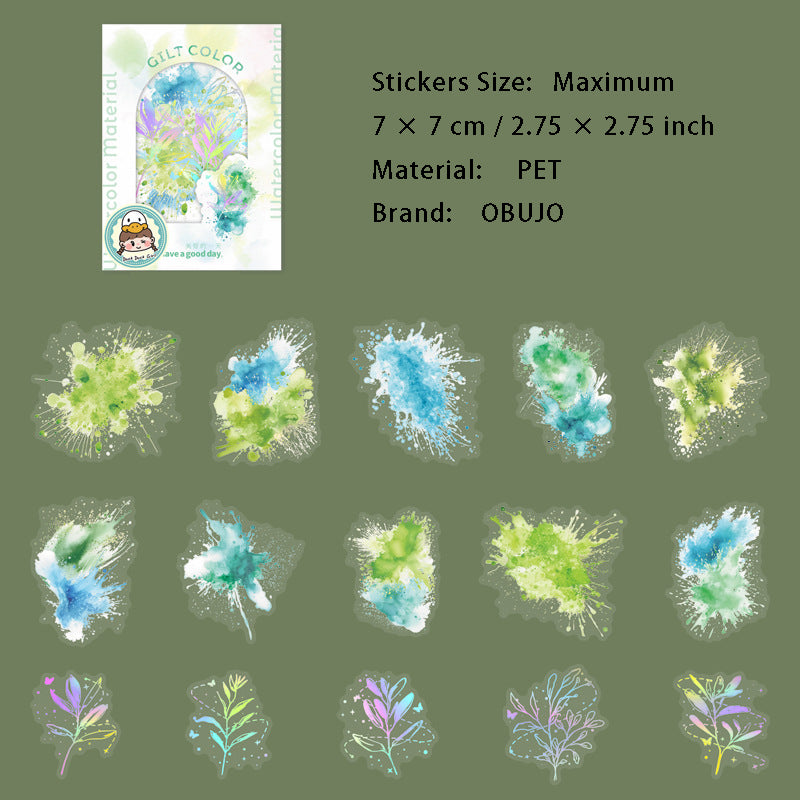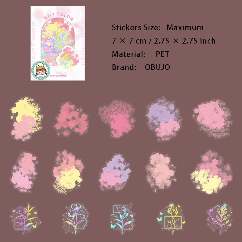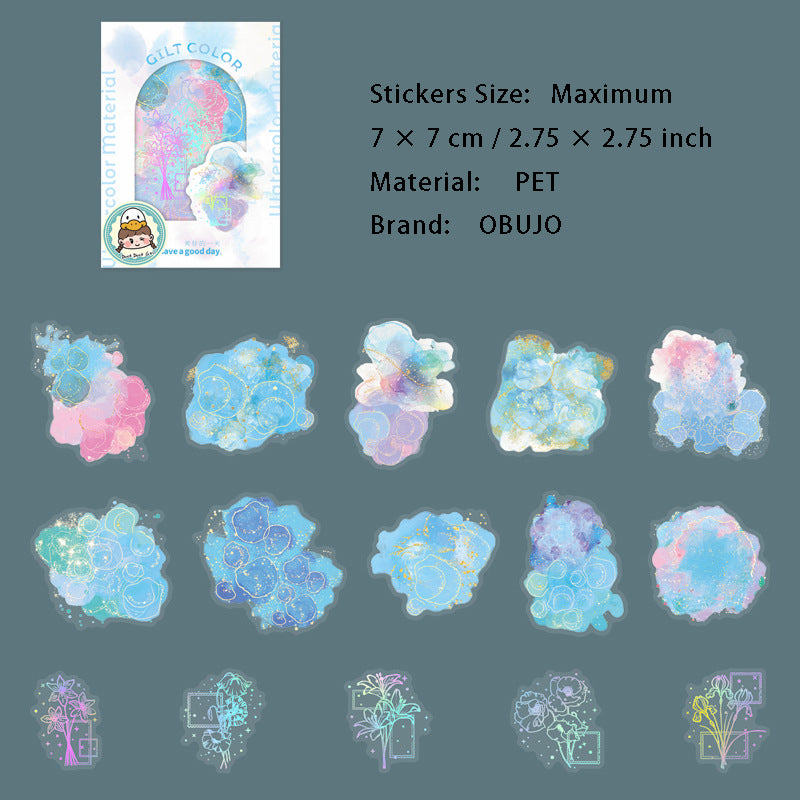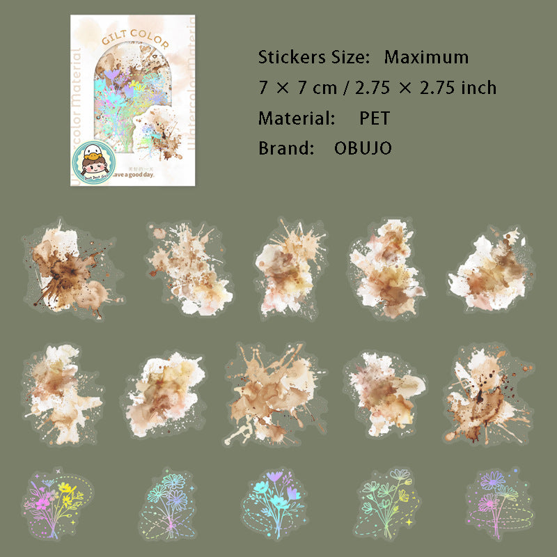 15 Pcs Watercolor Blooming PET Stickers LJXL