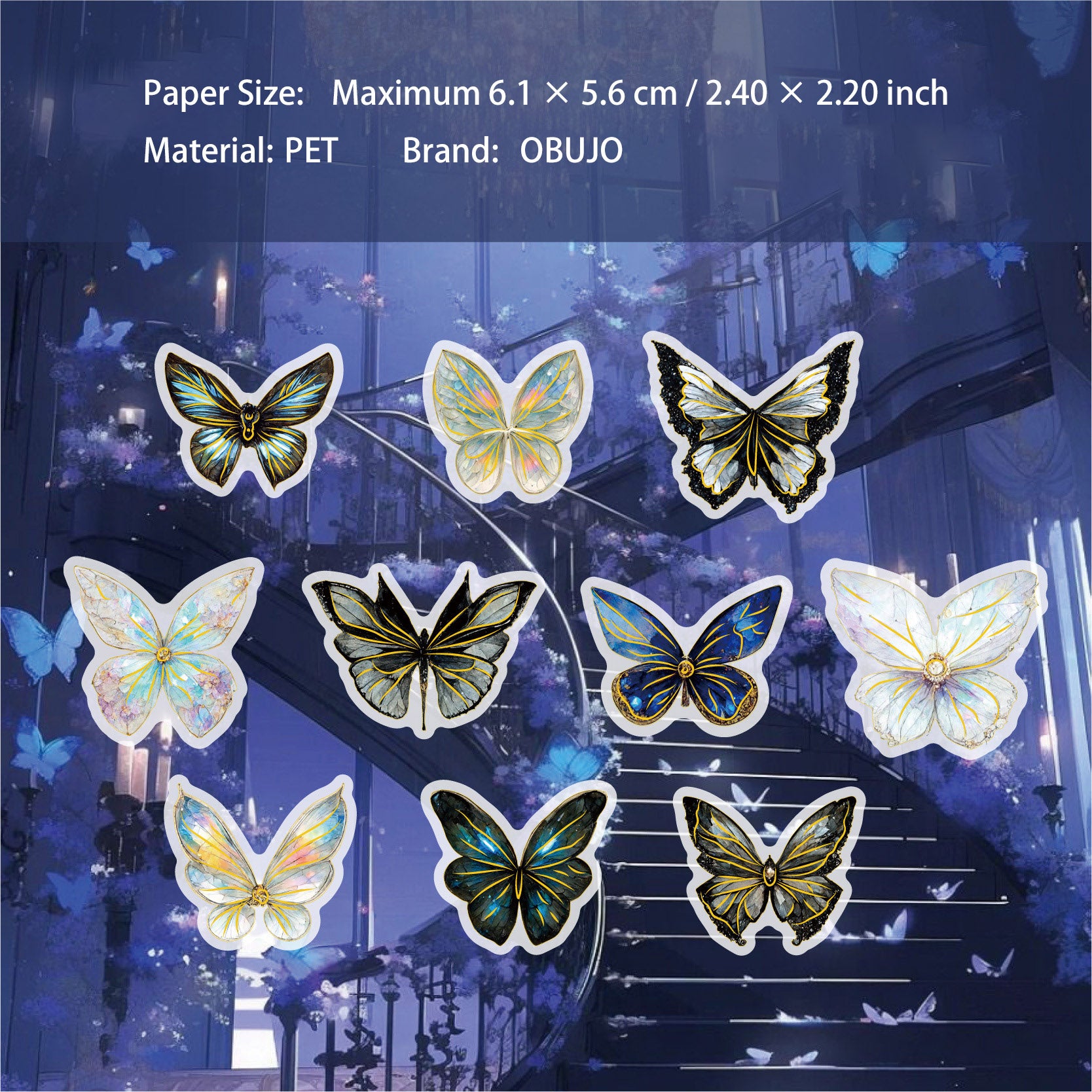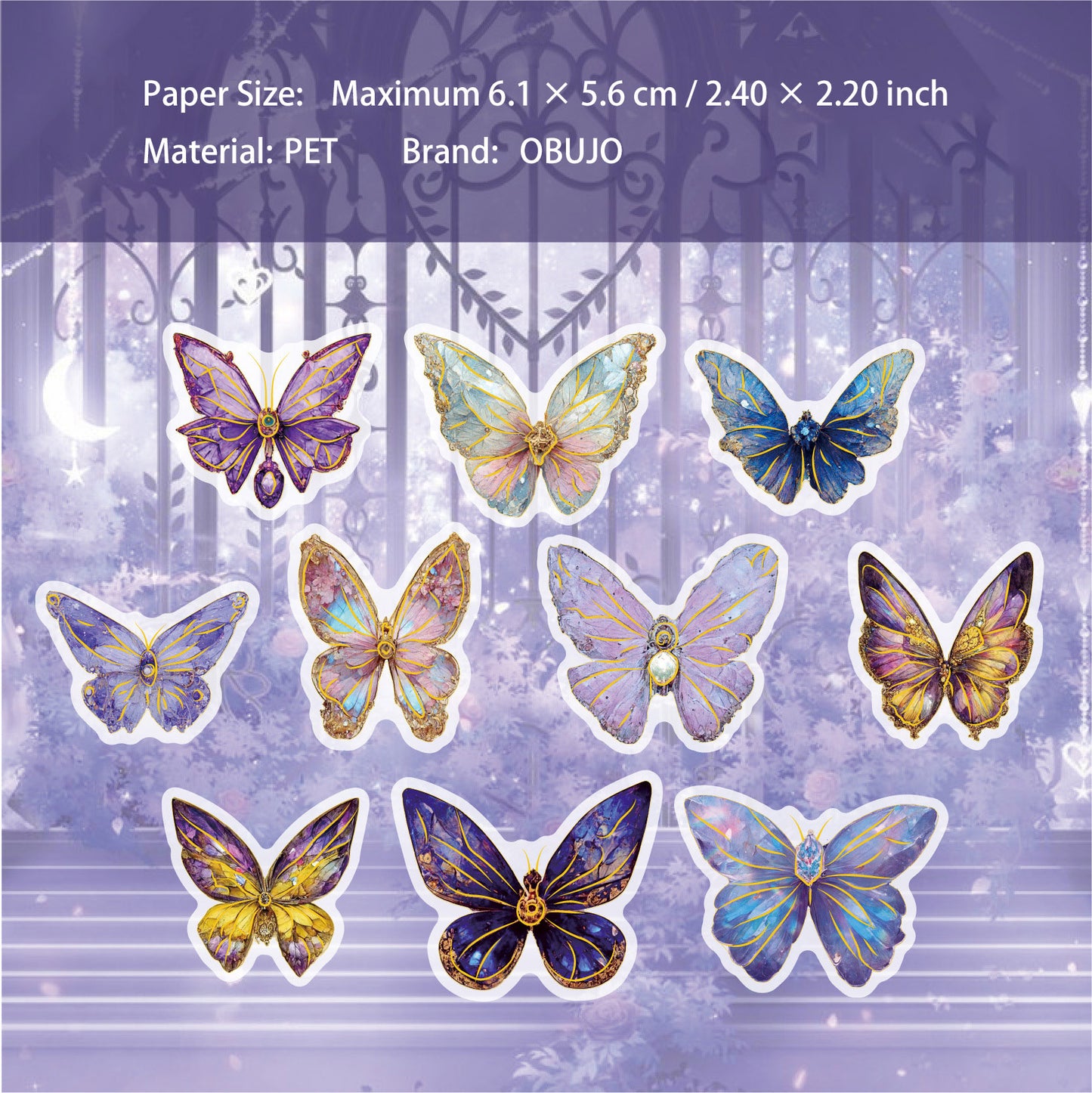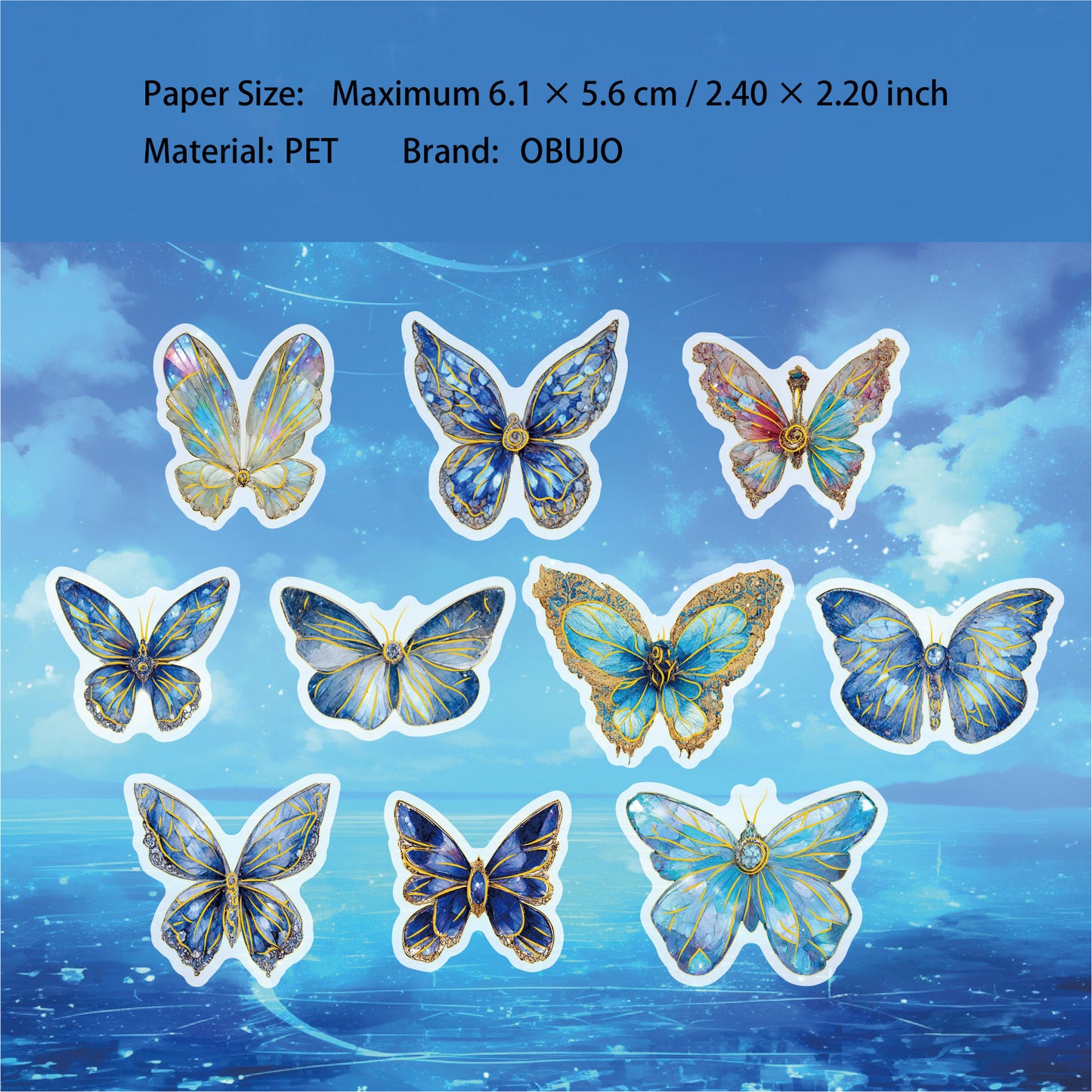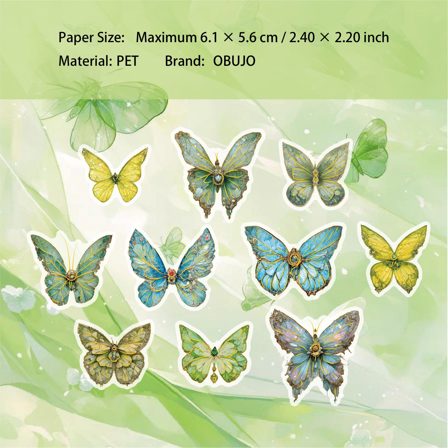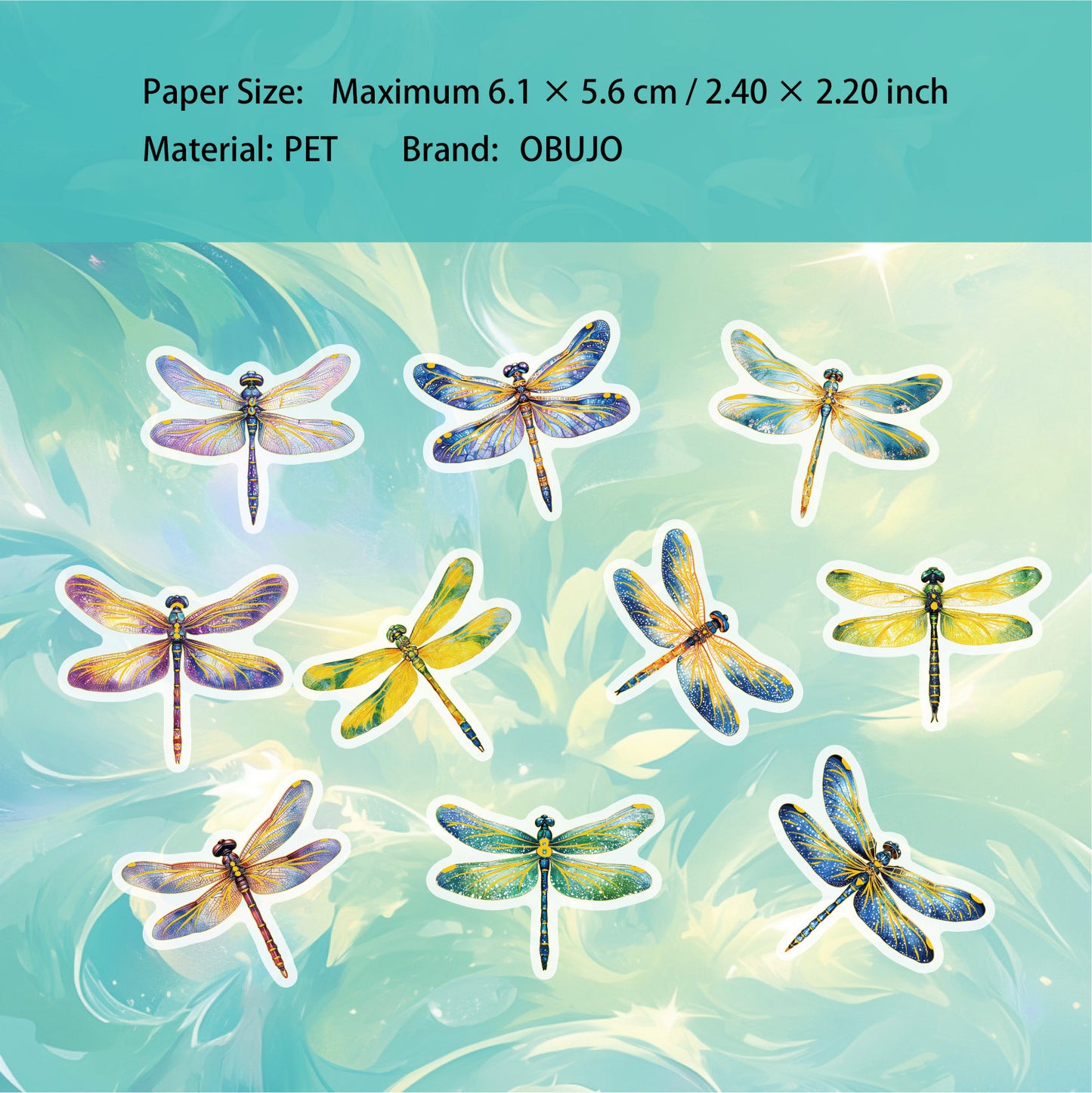 20 Pcs Glitter Butterfly Dragonfly PET Stickers KYXL