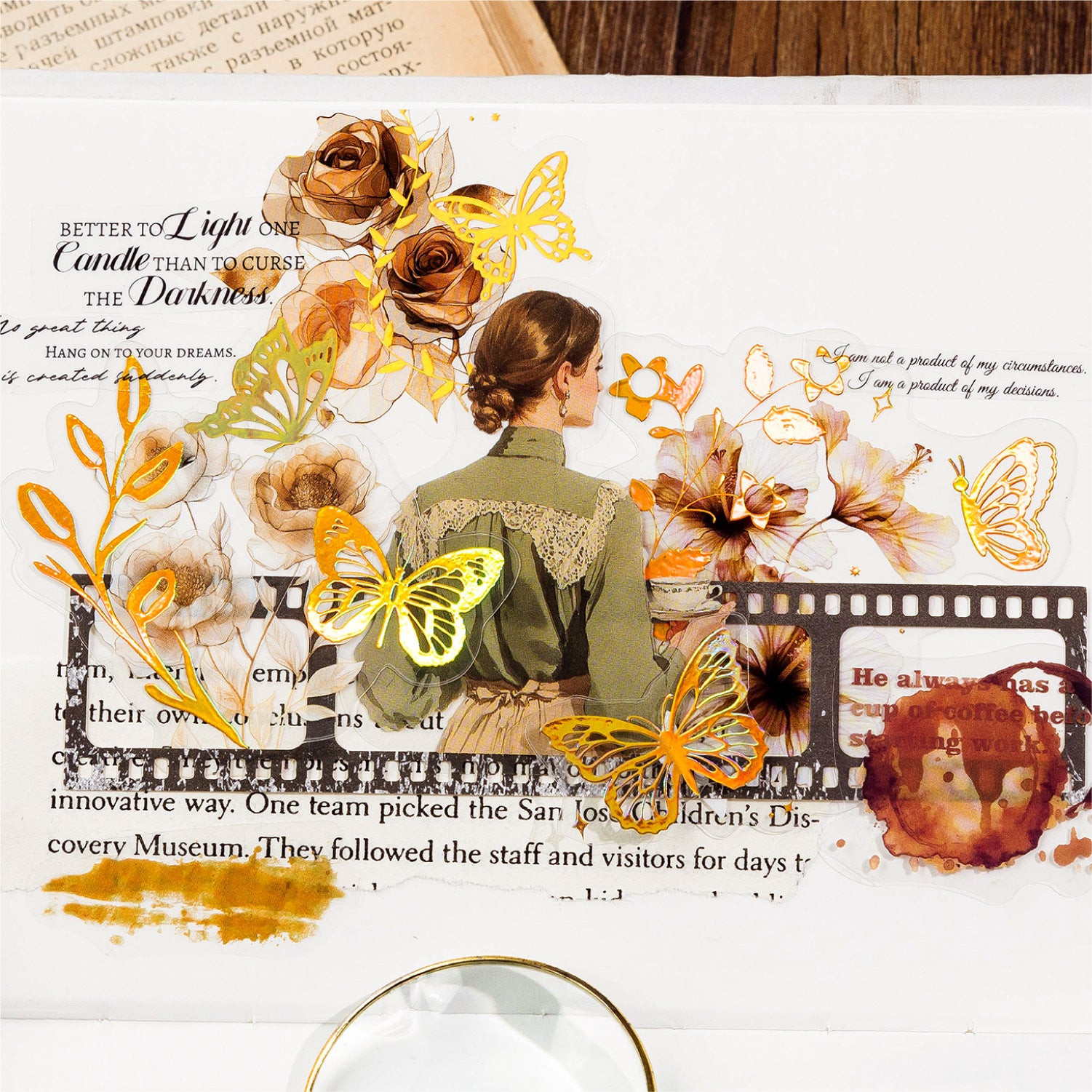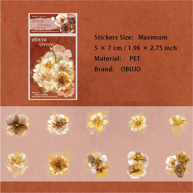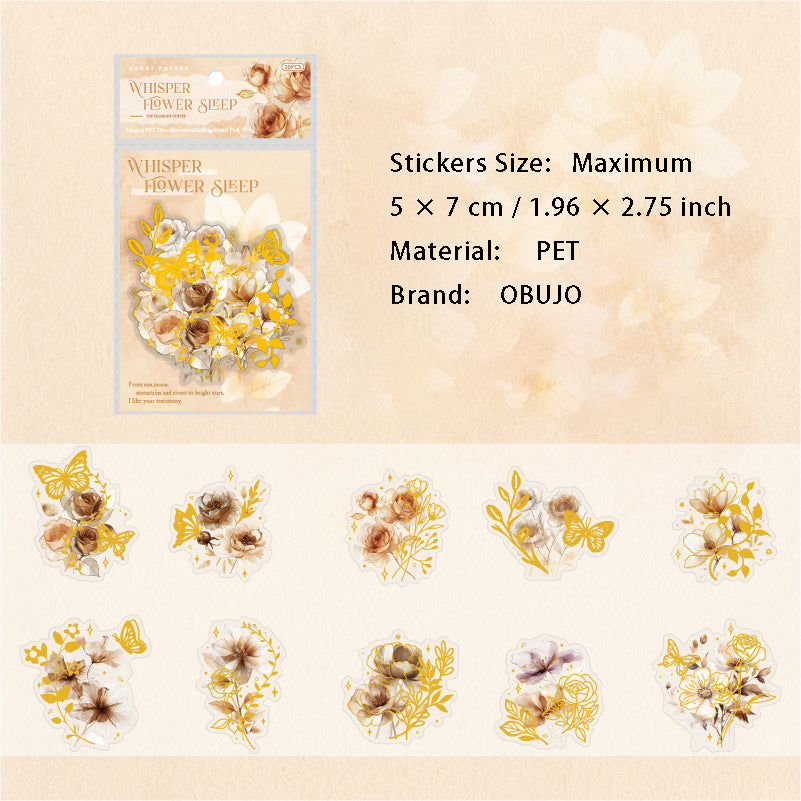 20 Pcs Gold Foil Flower PET Stickers KXFY