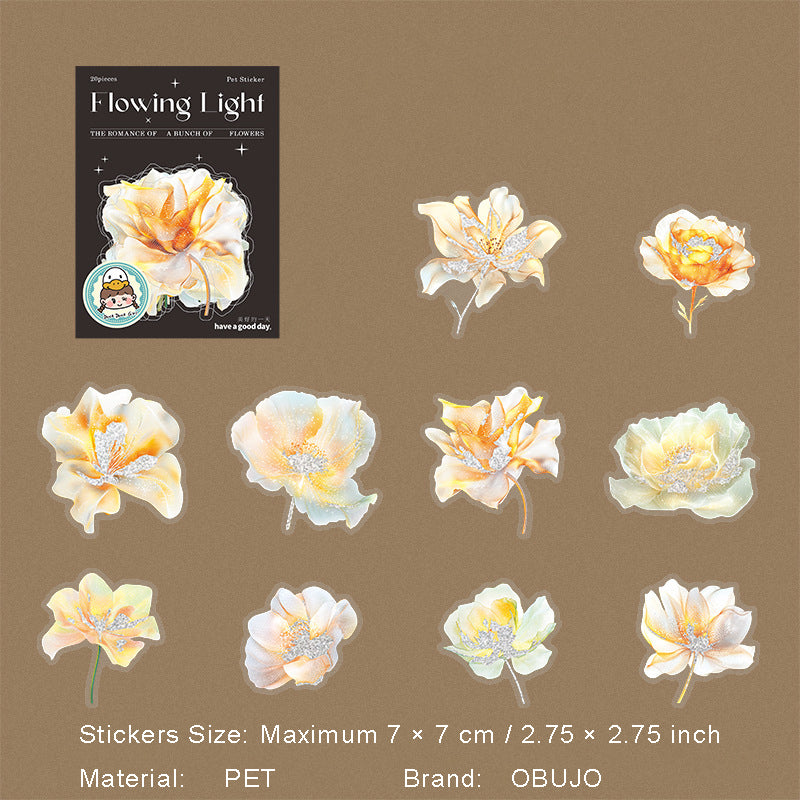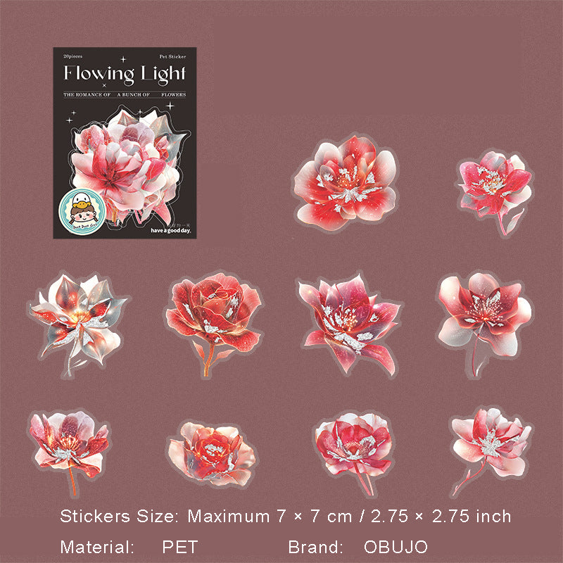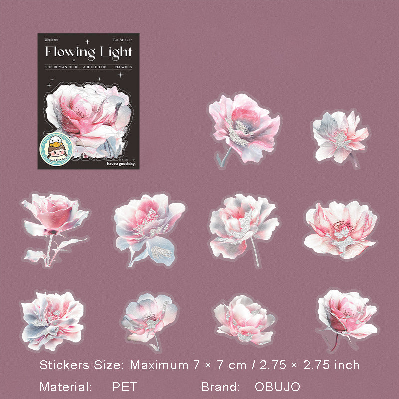 20 Pcs Silver Foil Flower PET Stickers LGHF