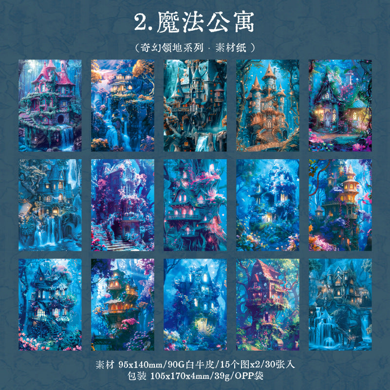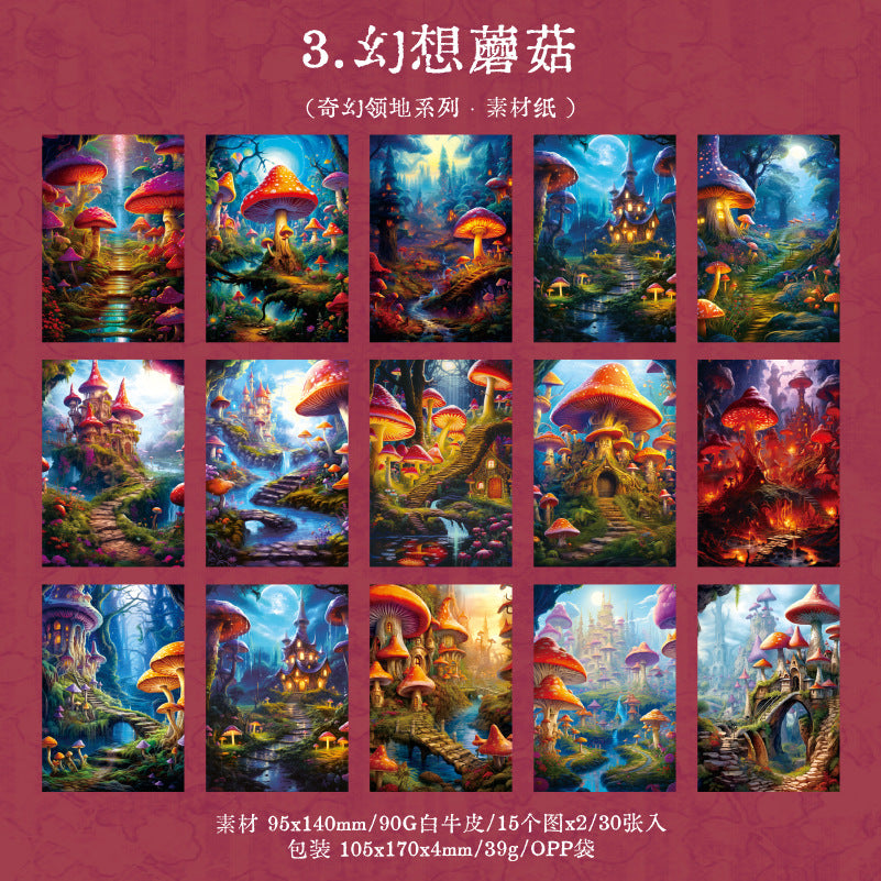 30 Pcs Fantasy Forest Junk Journal Paper QHLD