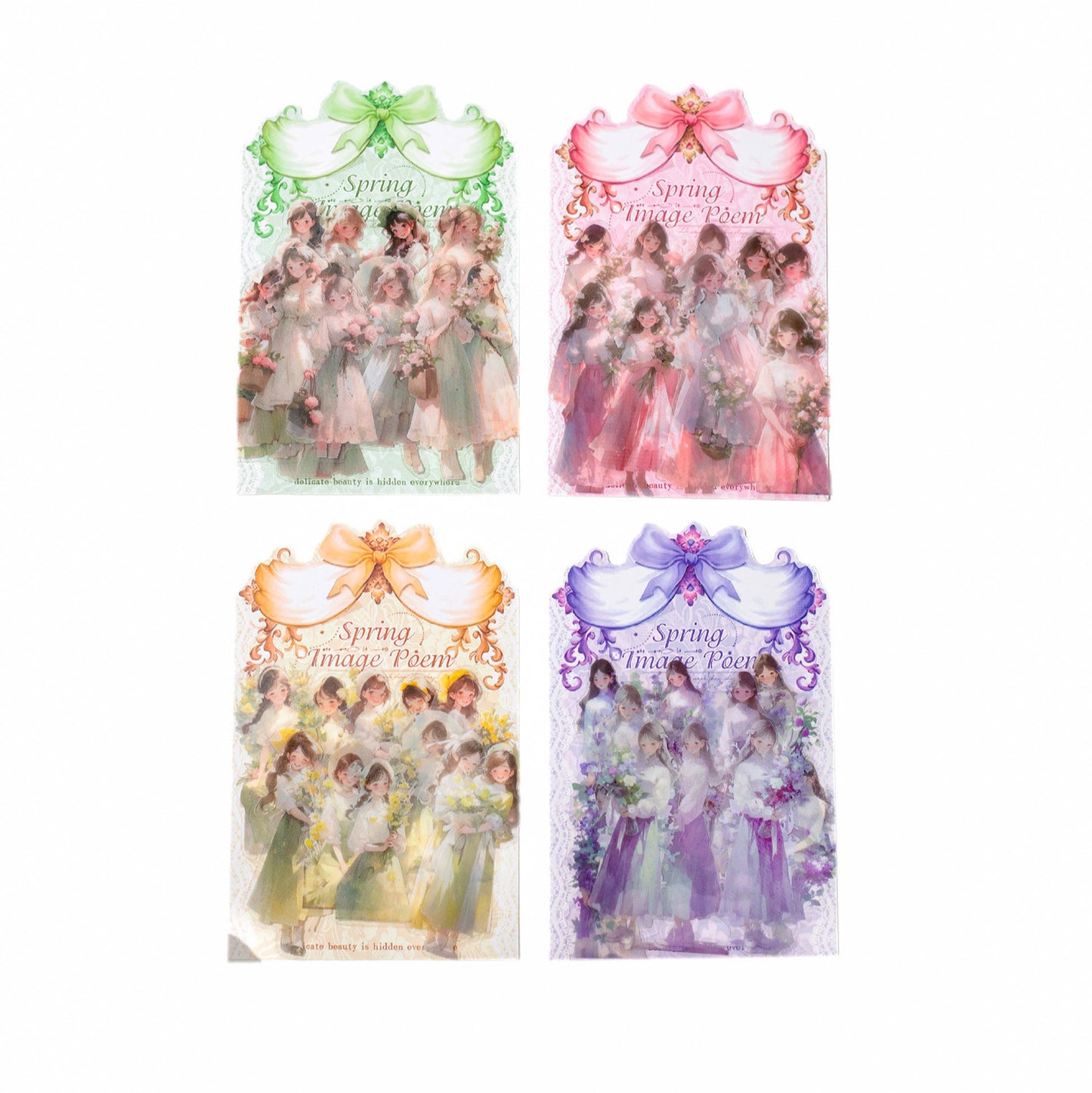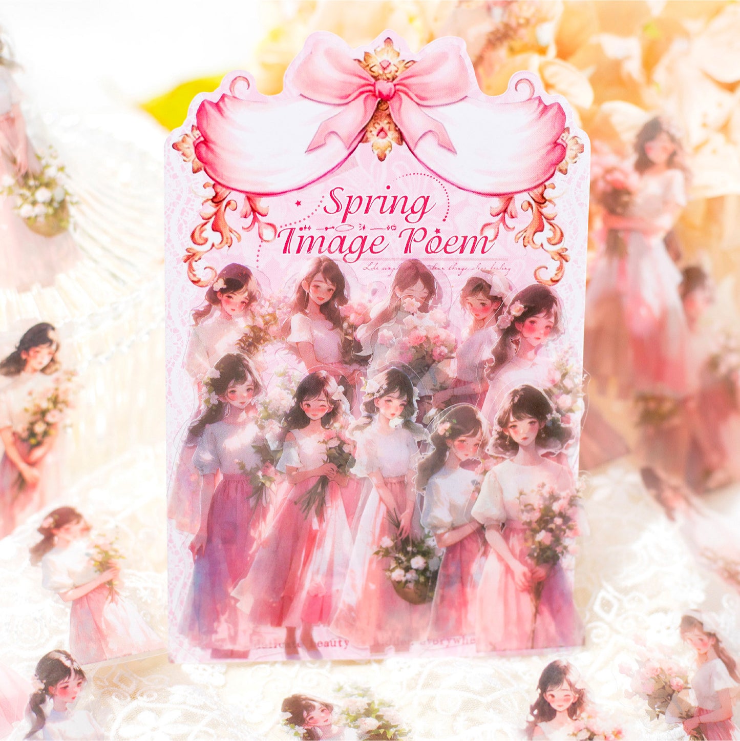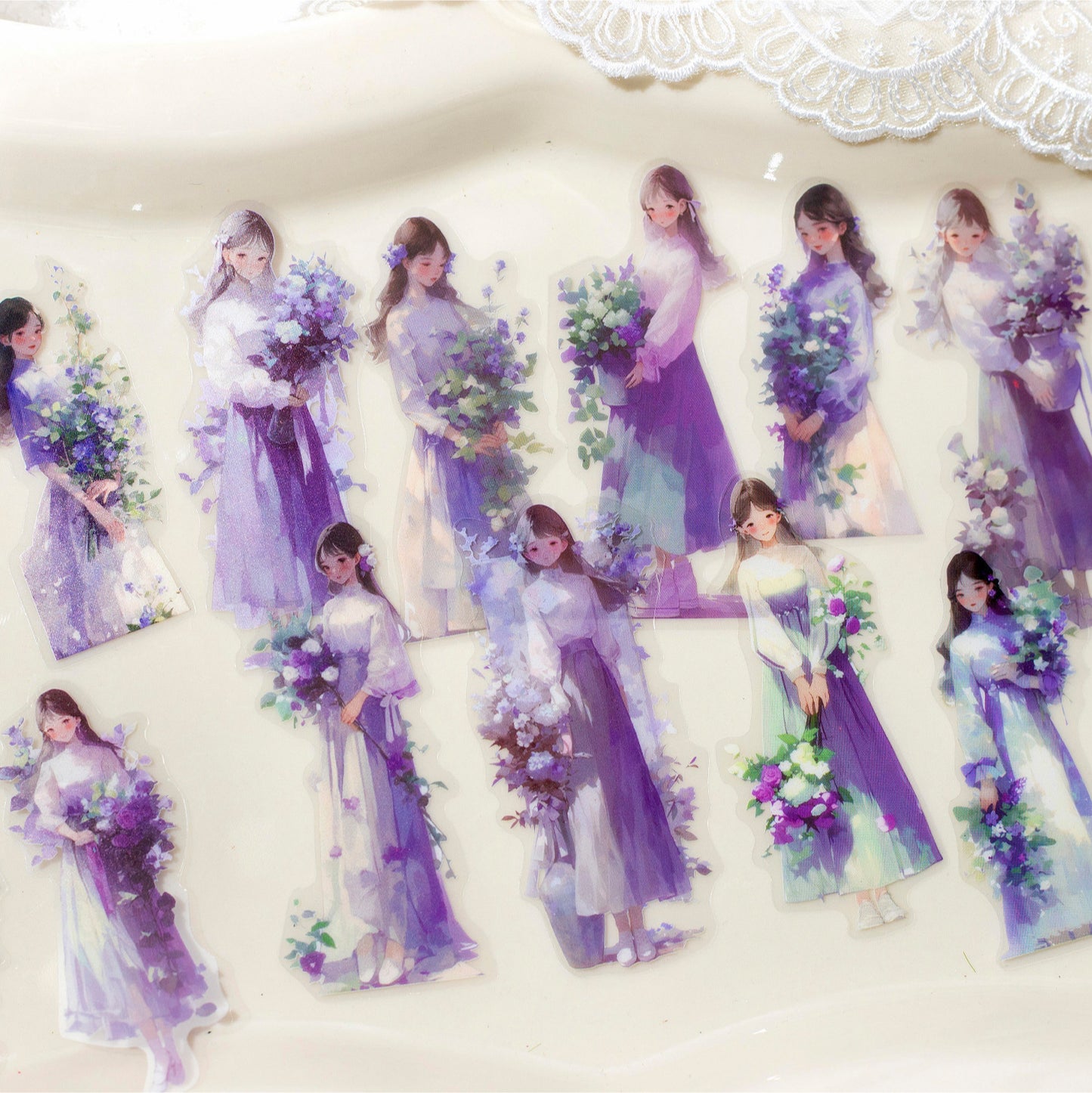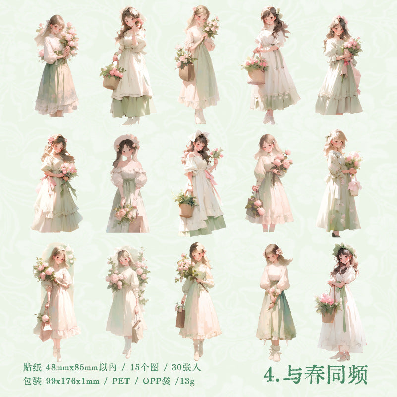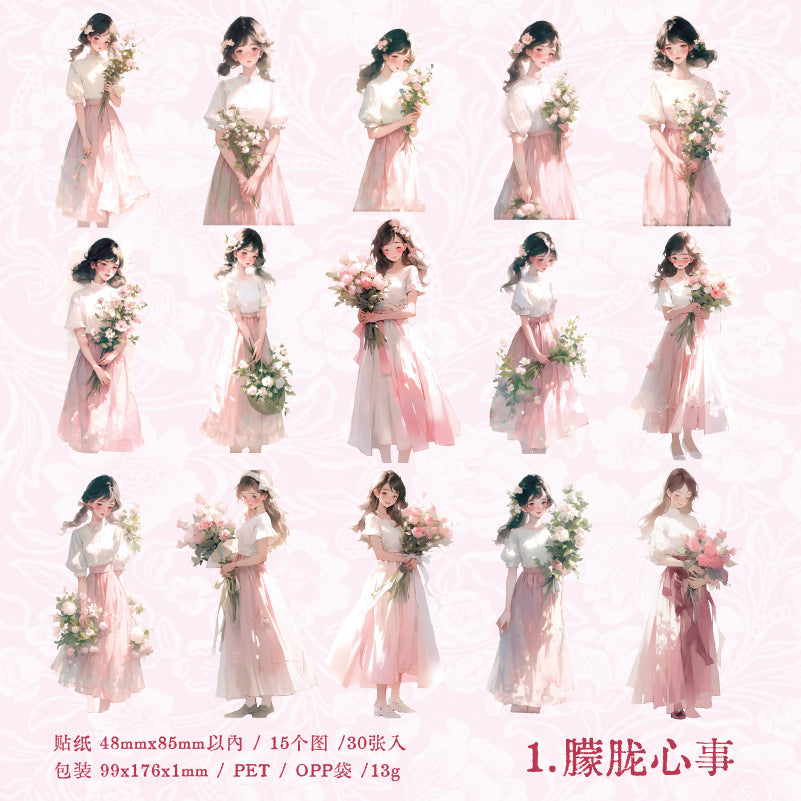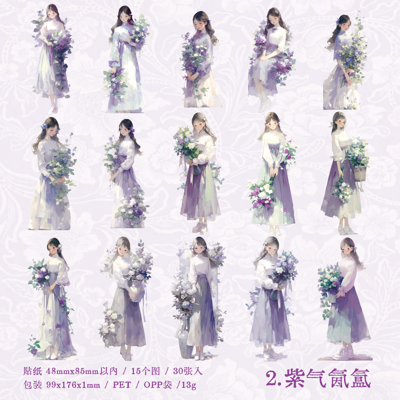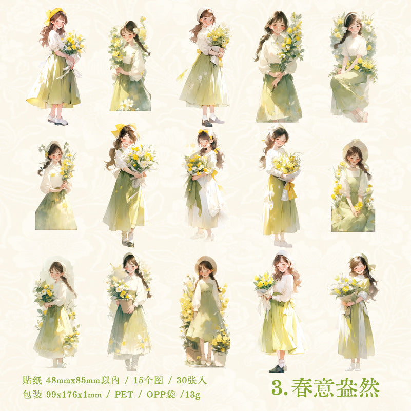 30 Pcs Holding Flowers Girl PET Stickers PHDNH