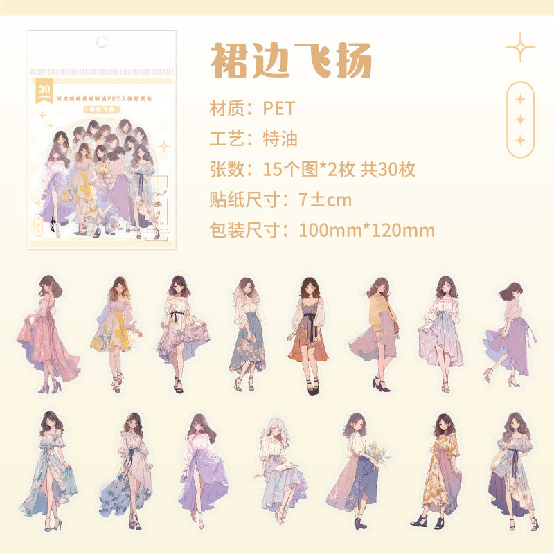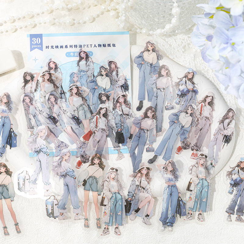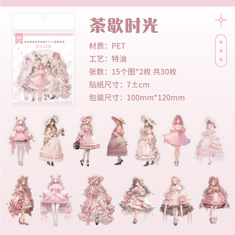 30 Pcs PET Cartoon Girl Stickers SGYH